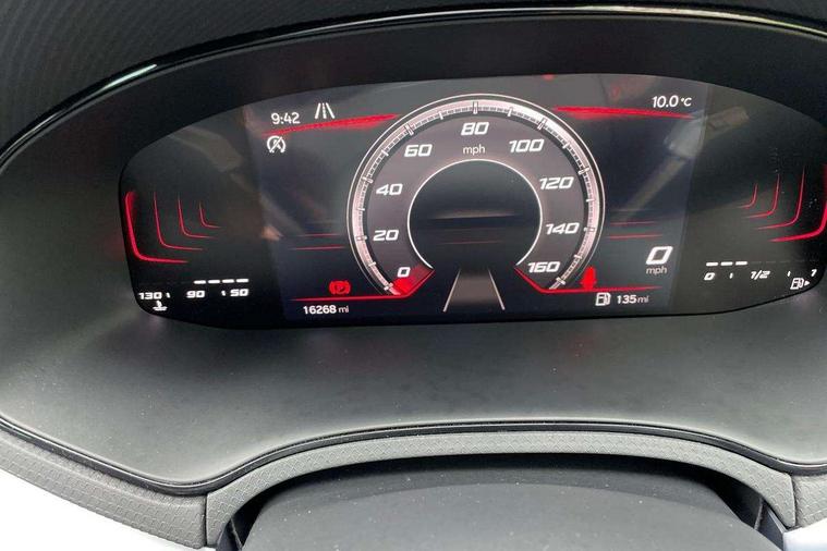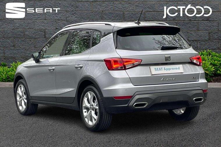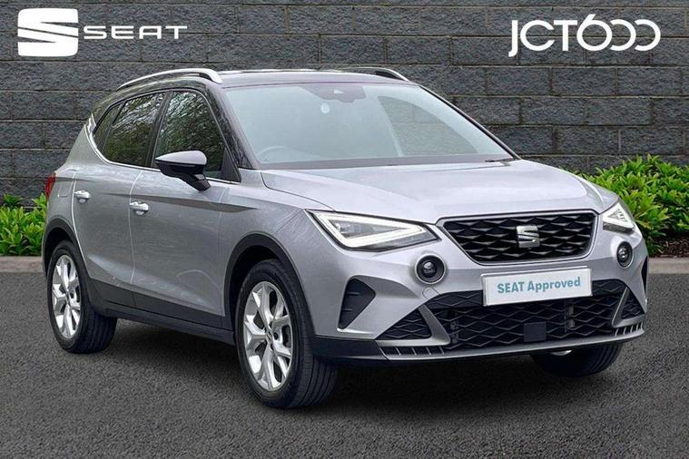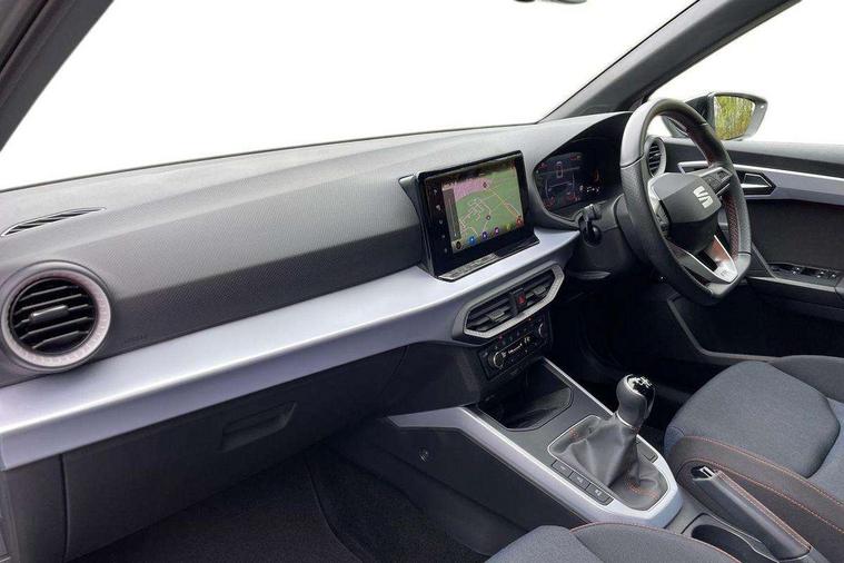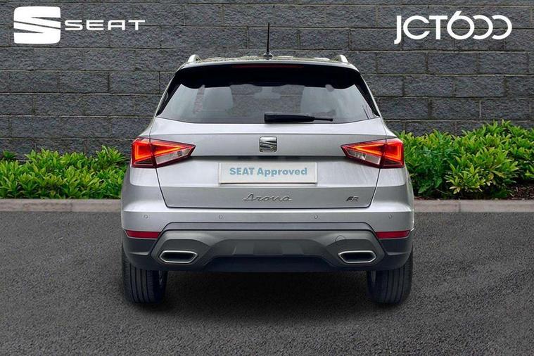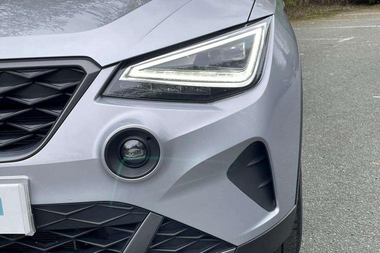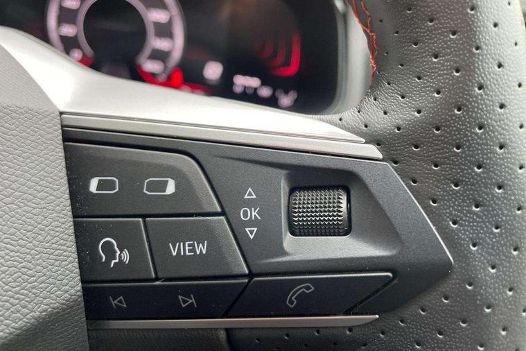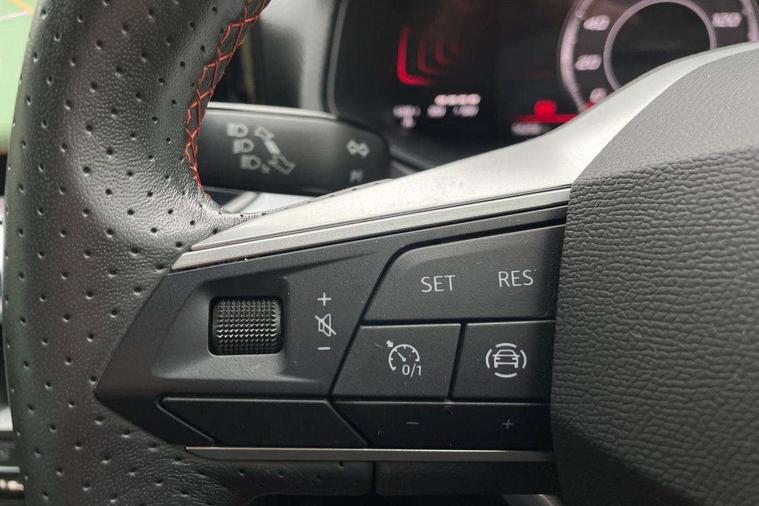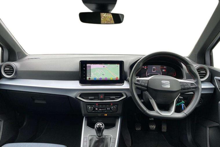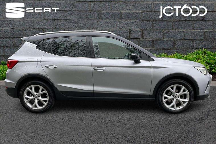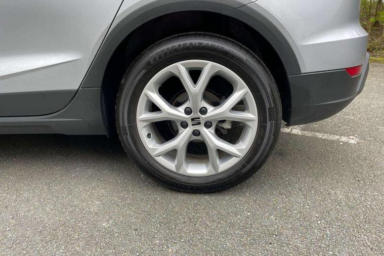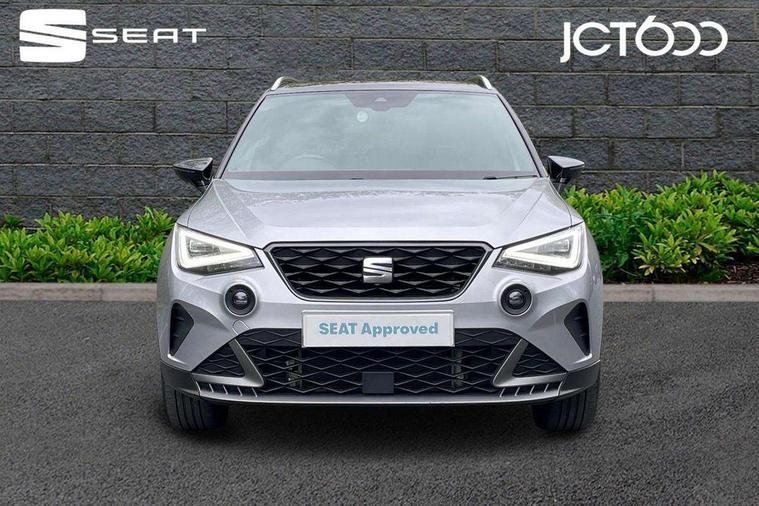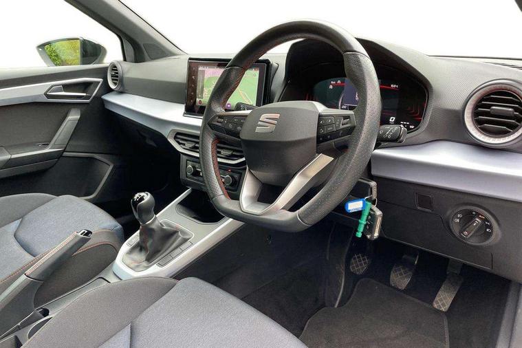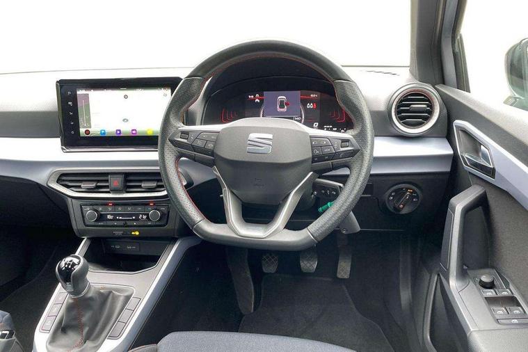 'Lights On' Reminder warning buzzer, 8" Digital cockpit, Digital clock, E-call, Electric speed sensitive power steering, Full Link Smartphone Integration with Mirror Link, Apple Car Play, Google Android Auto with USB Type C cable for Apple and Android compatibility, Lane keeping system, Low fuel warning light, Outside temperature display, Rear parking sensor, RPM counter, Seat connect with safety, service, remote and online, SEAT Drive profile - Four different models normal-sport-eco-individual, steering response, throttle response, Trip computer, Wireless phone charger, 9.2" colour touchscreen with navigation system, voice control and USB port (type c), Bluetooth interface for hands free and audio streaming, DAB digital radio and AM/FM radio, Steering wheel mounted audio controls, Anti theft roof antenna, Auto dimming interior rear view mirror, Automatic activation of hazard warning lights, Body coloured bumpers, Body coloured door handle inserts, Chrome roof rails and window surrounds, Dark tinted rear windows, Electric front/rear windows, Electrically adjustable, heated and folding door mirrors, Front fog lights with cornering function and rear fog light, FULL LED automatic headlights with dynamic headlight range control, coming and leaving home, LED daytime running lights, LED rear tail lights and licence plate lights, Protective side mouldings, Rain sensing wipers, Rear side wing doors, Rear spoiler, Rear window wash/wipe, Roof colour door mirrors, Third brake light, Twin exhaust pipe styling hidden exhaust pipe, Visible VIN plate, Windshield wiper with intermittent control and potentiometer, 2 cupholders, 3 seat bench in 2nd row, 60/40 split folding rear seat, Aircare filter, Black interior roof, Cloth upholstery, Double boot floor, Driver sunvisor with covered mirror + card holder, Dual zone climate control, Front courtesy light with 2x front and 2x rear reading lights, Front sport seats, Gear shift indicator, Height adjustable front seats, Height/reach adjustable steering column, Illuminated boot, Instrument lighting with brightness control, Interior ambient lighting, Interior light in footwell, central console and door panel, ISOFIX points in outer rear seats with top tether anchorage points, Passenger sunvisor with vanity mirror, Perforated flat bottomed leather steering wheel/gear knob/handbrake with red stitching and FR logo, Single front passenger seat, Two front and three rear height adjustable headrests, Interior chrome pack - Arona, 3 point seatbelts on all rear seats, ABS, Active front headrests, Child locks on rear doors, Driver and front passenger airbags with front passenger airbag de activation, front side and curtain airbags, Electronic stability control, Emergency Brake Assist (EBA) and front assist, Front and rear seatbelt reminder, Hill hold control, Multi-Collision braking, Tiredness recognition system, Traction control, Tyre pressure monitoring system, Alarm with back-up horn, Electronic engine immobiliser, Locking wheel bolts, Remote central locking + deadlocks, Tow away protection, Titan black dashboard, 17" Dynamic alloy wheels,
