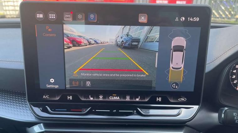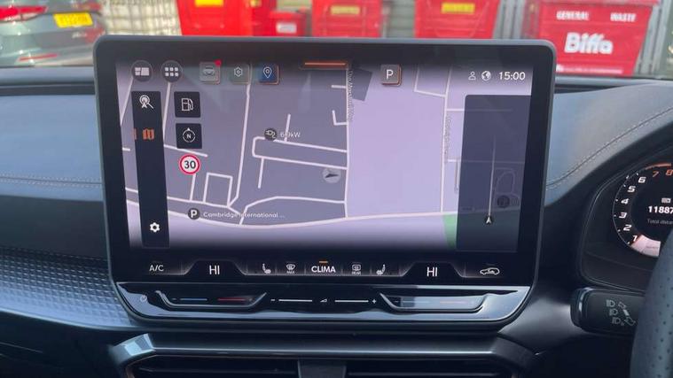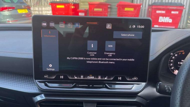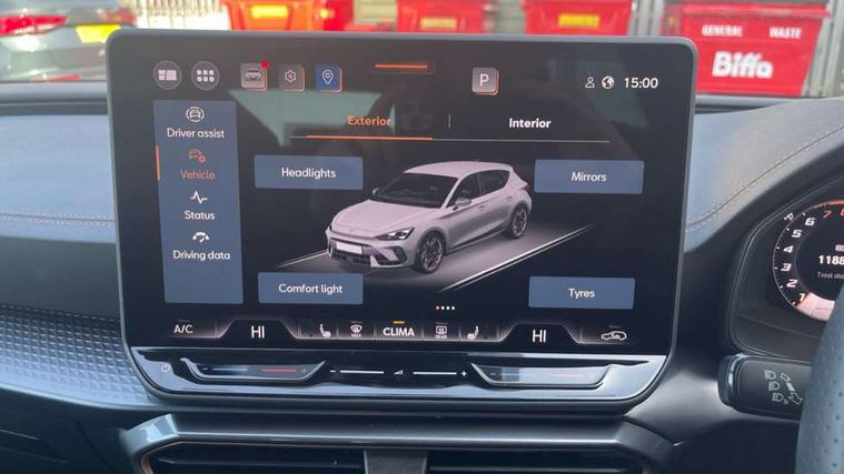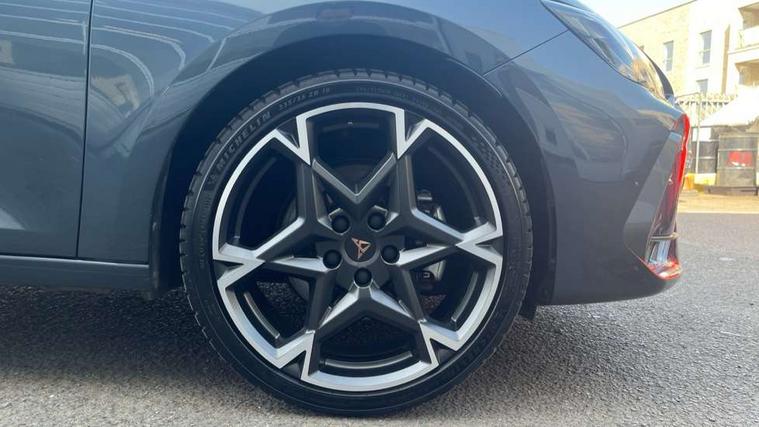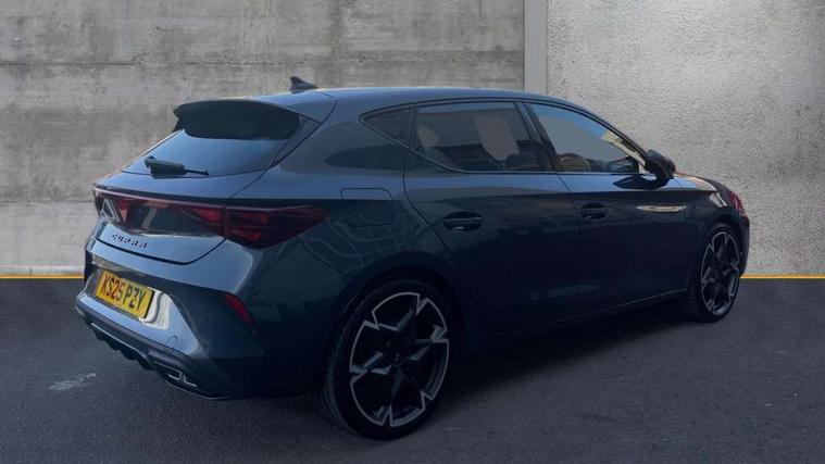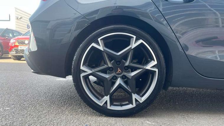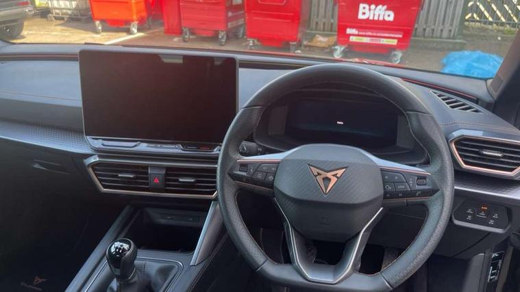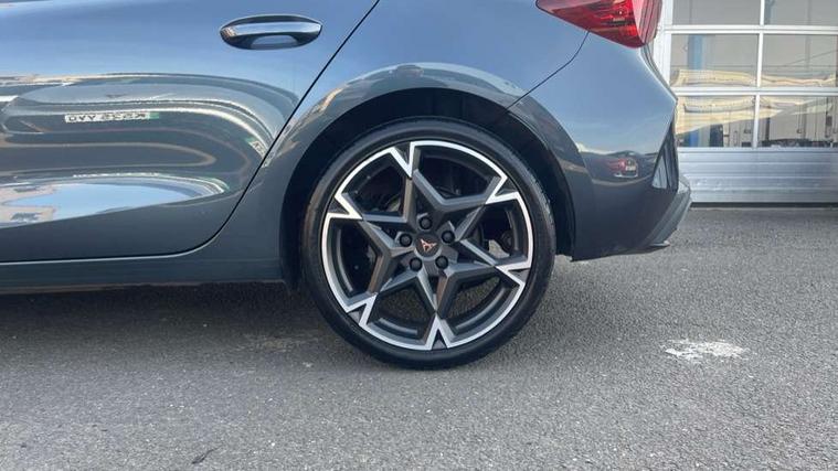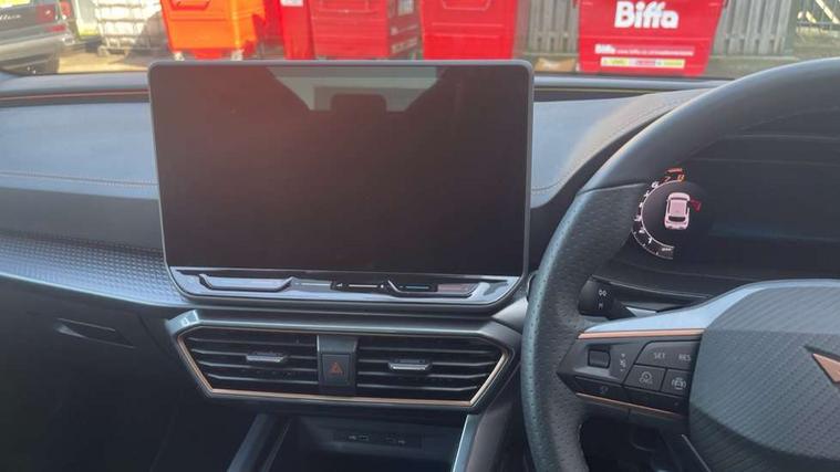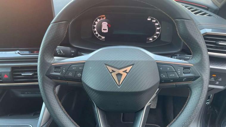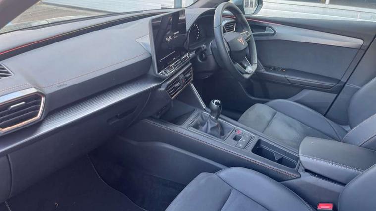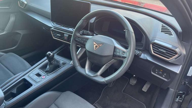 Adaptive cruise control with follow-to-stop and speed limiter, CUPRA drive profile selection with (Comfort/Sport/Individual), throttle response and gearshift mode, Digital cockpit, Dynamic road sign display, E-call, Front and rear parking sensors, Front assist with forward collision warning braking reaction to vehicles, pedestrians and cyclists, Full link smartphone integration with Mirror Link, wireless Apple CarPlay and wired Google Android Auto, Lane assist, Lockable tailgate, Rear view camera, RPM, trip computer, outside temp gauge, instrument light brightness, low fuel warning light, lights on reminder, gearshift indicator, Service interval indicator, Start/stop system with regenerative braking, Wireless phone charger, Auxiliary input socket, Auto dimming rear view mirror, Body colour door handles, Body coloured bumpers, Cupra sports bumpers, Dark tinted rear windows, Electric front/rear windows, Electrically adjustable, heated and folding door mirrors, High beam assist, LED front fog lamps with cornering function, LED headlights with dynamic turn signals, tail lights, rear fog lights with rear coast to coast lighting, LED rear fog lamp, Rain sensing wipers, Rear side wing doors, Rear wash/wipe, Separate daytime running light with automatic headlight control and coming home feature, Third brake light, Welcome light with logo projector in door mirrors, 12v power supply in centre console, 3 seat bench in 2nd row, 5 headrests, 60/40 split rear bench seat with armrest, Ambient lighting (glovebox, footwell, ambient lighting multicoloured), Black headlining, CUPRA Leather flat bottomed, heated, perforated steering wheel, Dinamica cloth upholstery, Electrically adjustable driver seat and lumbar support with memory function + manually adjustable passenger seat, Folding boot cover, Four x USB Type C ports (2 in front and 2 in rear), Front and rear reading lights X 4, Front centre armrest, Heated front seats, Height/reach adjust steering wheel, Illuminated interior front door sills, Interior wraparound lighting, ISOFIX points in outer rear seats with top tether anchorage points, Single front passenger seat, Storage pockets on rear of front seats, Sunvisors with illuminated mirror, Three zone climate control, Dynamic and comfort pack - Leon Cupra, Media system plus with 12.9" display + navigation pack - Leon Cupra, 3 point seatbelts on all rear seats, ABS, Brake control system - ESC and brake booster, Child proof door locks, Cupra black brake calipers, Driver and front passenger airbags with front passenger airbag de-activation, front side and curtain airbags, Electronic parking brake, Hill hold control, Rear disc brakes, Seat belt reminder for front and rear seats, Tiredness recognition system, Tyre pressure monitoring system, Anti theft alarm system with interior monitoring in cab, backup horn and towing protection, KESSY Advanced - Keyless start, keyless entry, Locking wheel bolts, Chrome and copper interior detailing, 19" Polar machined sport black and silver alloy wheel with 91Y tyres, Tool kit,
