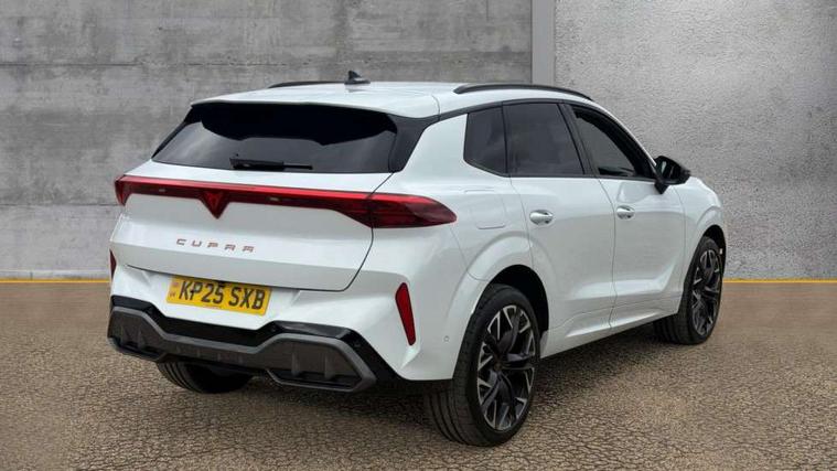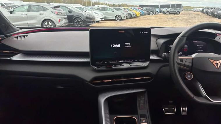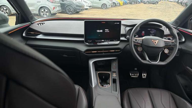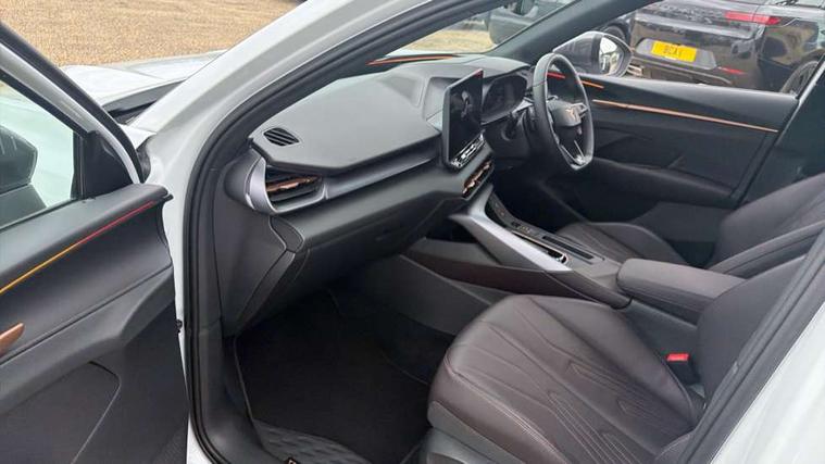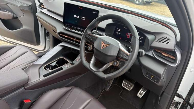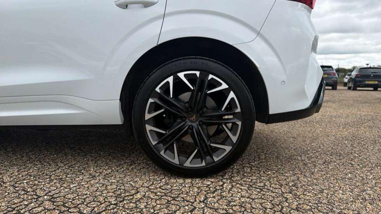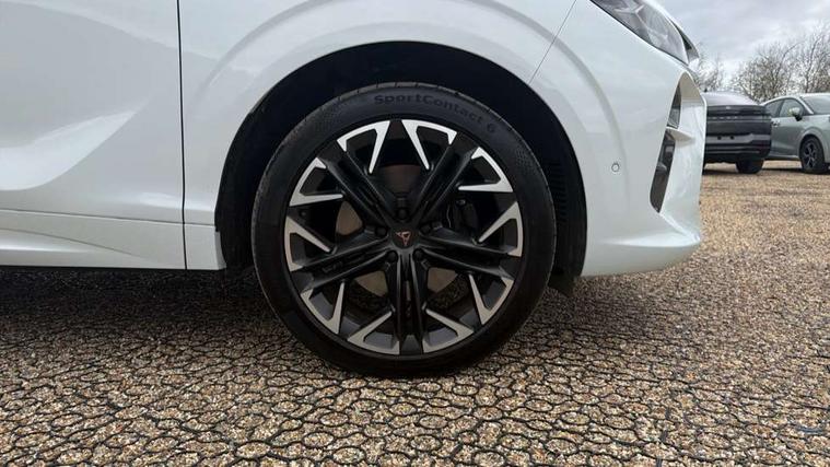 10.25" digital cockpit and configurable dashboard, Adaptive cruise control with follow-to-stop and speed limiter, Advanced driver alert system, Advanced lane assist with semi-automatic vehicle control in a medical emergency and traffic jam assist, Driving profile selection (DCC- Comfort, performance, CUPRA, Individual, Dynamic road sign display, E-call, Electric tailgate with virtual pedal, Emergency steering support with turn assist, Front and rear parking sensors, Front assist (Forward collision warning with automatic braking) with multifunction camera and front cross traffic assist, Head up Display, Intelligent park assist, Media system with Nav - 12.9" touch display, voice control, full link phone (wired/wireless), DAB and Steering wheel mounted controls, Rear traffic assist, Side and exit assist, Speed sensitive power steering, Start/stop system with regenerative braking, Top view camera (front camera, rear camera, 2 side cameras), Wireless phone charger, Adaptive chassis control with a 2-valve shock absorber, Auto dimming rear view mirror, Black roof rails, CUPRA 3D rear lights with ceremony & swiping indicator and illuminated logo, Dark tinted rear windows, Daytime running lights with automatic headlight control and Coming and Leaving home function, Door mirrors with memory function and lowing function on passenger mirror, Electric front/rear windows, Electrically adjustable, heated and folding door mirrors, Front fog lamps with cornering function, Heat reflecting windscreen, High beam assist, Rain sensing wipers, Rear fog light on one side, back up light on both sides, Rear side wing doors, Rear wash/wipe, Third brake light, Welcome lights (within exterior mirror housing), 3 seat bench in 2nd row, Black roof lining, Cupra sports pedals, Driver seat memory function, Electrically adjustable front seats including lumbar support, Four x USB Type C ports (2 in front and 2 in rear), Front and rear head restraints, Front and rear reading lights X 4, Front centre armrest, Heated front seats, Heated leather wrapped multi function sports steering wheel with tiptronic, Illuminated interior front door sills, Isofix, Leather upholstery, Operating voltage 12V, Single front passenger seat, Smart wraparound interior lighting, Sunvisors with illuminated mirror, Three zone climate control with control panel in rear, Unsplit rear seat bench, split folding backrest, with centre armrest, Variable luggage/load compartment floor, Pure performance pack - Terramar, 3 point seatbelts in front with pretensioner and electric height adjustment, 3 point seatbelts on all rear seats, Brake control system - ESC and brake booster, Child proof door locks, Driver and front passenger airbags, Electronic parking brake, Front and rear disc brakes, Front interaction airbag, Front passenger airbag deactivation switch, Front side airbags with curtain airbags, Pre-crash front and rear seat belt tensioner, window closure and hazard lights, Tyre pressure monitoring system, Visual and acoustic seat belt reminder, electric contact in front and rear, Anti theft alarm, Keyless locking and starting system with keyless access, Locking wheel bolts, Black decorative trims, Chrome interior detailing, 20" Hadron exclusive machine alloy wheels, Performance tyres in polmer coating, Tool kit,
