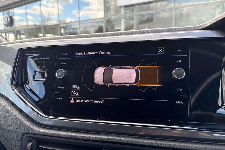 Adaptive cruise control without follow-to-stop and speed limiter, Bluetooth mobile phone interface, Digital Cockpit Pro with 10.25" Display, Driver alert system, Dynamic road sign display, Emergency call service, Power assisted speed sensitive steering, Preparation for We connect and We connect plus, Speedo and rev counter, electronic odometer, trip, service interval display and fuel gauge, Standard rear axle, Travel Assist - Lane keeping system and traffic jam assist, Travel assist including emergency assist, Trip computer, Warning signal and warning light for front and rear seatbelts not fastened, Washer fluid level indicator, Wireless app connect, Front wheel drive, Rear shock absorpion, Start-stop system with battery regeneration (recuperation - energy recovery during braking), DAB Digital radio, Diversity antenna for FM reception, Front and rear 6 speakers, Automatic dimming interior rear view mirror, Automatic headlights, Body colour door handles, Body coloured bumpers and radiator grille with chrome trims, Electric front windows, Heat insulating darkened glass in side and rear windows, Heat insulating glass windscreen, LED separate daytime running lights with coming/leaving home function, Power folding adjustable/heated exterior mirrors and front passenger exterior mirror lowering function, Rain sensor, Rear electric windows, Rear fog light, Rear side wing doors, Rear windscreen washer and wiper with interval delay, Third brake light, 12V power socket in centre console, 2 USB-C ports in the front, 2 USB-C charging sockets on the center console in the rear, 3 rear head restraints, 60/40 split folding rear seat and rear seat bench not split, Air care climatronic air conditoning system with active combination filter and 2-zone temperature control, Ambient lighting, Chrome plated radiator grille inserts, air vent surrounds and light switch surrounds, Door and side trim panel, Driver and front passenger seat height adjustment, Driver/passenger sunvisors with illuminated vanity mirrors, Front + rear carpet mats in recycled material, Front centre armrest, Front footwell illumination, Front seat backrest storage pockets, Front sports comfort seats, Handbrake lever handle in leather, Headliner in recycled material, Isofix child seat preparation easy-fit (for two outer rear seats, and front passenger seat) compatible with I-size, Leather trimmed gear knob, LED interior light with switch off delay and dimmer, 2 reading lights front and rear, Luggage compartment cover, Luggage compartment floor, Luggage compartment lighting, Lumbar adjustment for front seats, Multifunction steering wheel, Single front passenger seat, Standard pedal cluster, IQ LED matrix headlights pack - Polo, Light and vision pack - Polo, 3 point height adj front seatbelts + pretensioners, 3x3 point rear seatbelts, ABS, Driver and front passenger airbag with front passenger airbag deactivation, Drivers and front passengers safety optimised head restraints, ESC (Electronic stability control) + EDL (Electronic Differntial lock) and ASR (Traction control), Extended and predictive pedestrian/ cyclist protection, Front curtain and side airbags with center airbag, Front disc brakes, Hill hold control, Manual child lock in rear doors, Rear drum brakes, Single tone horn, Tyre pressure loss indicator, Alarm with interior protection, Anti-theft alarm system with interior monitoring, backup horn, and towing protection, Anti-theft wheel bolts, Electronic engine immobiliser, Chrome applications on rotary light, mirror adjustment, window regulator switches, outlet with frame in black, Low rolling resistance tyres,