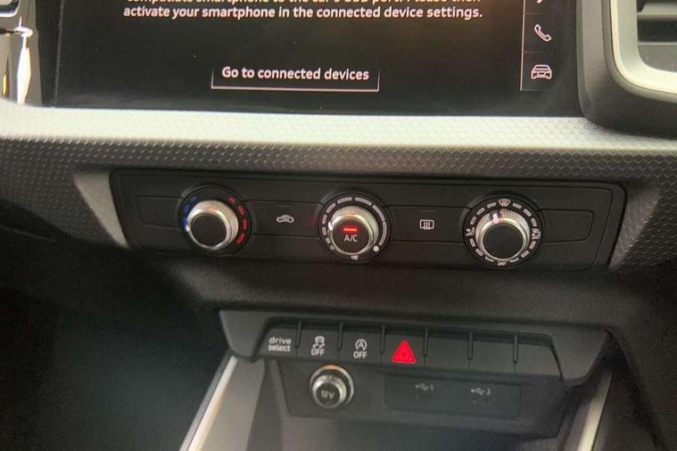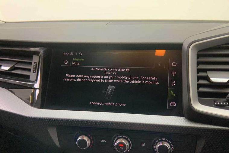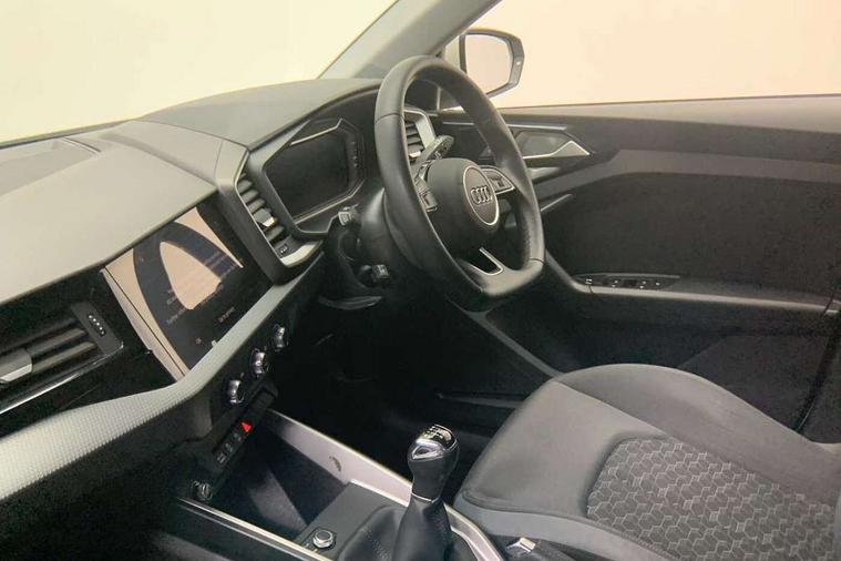 10.25" Digital instrument cluster display classis style instrument dials + speed, odometer, time, outside temperature, telephone menu + fuel level warning, Audi drive select - power steering assistance + engine, Audi smartphone interface with connect compatible smartphone via USB directly MMI display + Nav, music, third party apps controlled via MMI controller, Automatic start/stop system, Bluetooth interface, Cruise control, Driver's information system, Electromechanical power steering, Emergency e-call, Lane departure warning system, Rear parking sensor, Service interval indicator, Speed limiter, Voice control system, Washer fluid level indicator, Dynamic suspension, 2 x USB type C connection points, 6 passive loudspeakers, DAB Digital radio, MMI radio plus with 10.1" colour MMI display screen and MMI touch, Auto dimming rear view mirror, Body coloured bumpers, Body coloured door mirrors, Electric front and rear windows, Electrically adjustable, heated, folding door mirrors with integrated LED side indicator, Front side air inlets in grained matt black and C frame in anthracite black, Heat insulating glass windscreen and side windows, Heated rear windscreen, High level LED brake light, LED headlights with LED rear lights + dynamic rear indicators + headlight adjustment and high beam, turning light + LED daytime running lights, Radiator grille and rear diffuser in matt anthracite black, Radiator protective grille frame in matt aluminium silver, Rain and light sensors, Rear fog lights, Rear side wing doors, Rear wiper, Side front spoiler lips in grained matt black, 12V socket in centre console with two cup holders, 3 rear seats with headrests, 3 seat bench in 2nd row, 3 spoke leather multifunction plus steering wheel, 40:60 Split folding rear seat or folded fully, Black front and rear floor mats, Door sill trims with aluminium inlay, Driver and passenger seat with manual height adjust with forward and backwards adjustment, Front head restraints, Front passenger seat, Grey cloth headlining, Height and reach adjustable steering wheel, ISOFIX child seat mounting for front passenger and outer rear seats including top tether attachment point of outer rear seats, Leather gear knob with aluminium trim, Leatherette handbrake grip, Luggage compartment light with front and rear reading lights, Manual air conditioning, Manually adjustable lumbar support in front seats, Novum cloth upholstery with front sport seats, Luggage compartment pack - A1, 3x3 point rear seatbelts, Audi pre-sense front with pedestrain and cyclist recognition, Brake assist function, Driver and front passenger airbag with front side and head airbags, Electronic Stability Control including ABS, EBD, ASR and EDL, Front passenger airbag deactivation switch, Hill hold assist, Manual rear child locks, Seatbelt height adjustment for front seats, Seatbelt monitoring, Tyre pressure warning light, Warning triangle and first aid kit, Anti theft alarm, Anti theft wheel bolts and loose wheel warning, Immobiliser, Remote central locking with 2 foldaway keys, Aluminium trim for control switches, air vents and digital instrument cluster, Black dashboard, Silver grey accent areas including air vents, door handle recesses and centre console in diamond paint finish, Slate grey inlays polygon structure in fine paint finish,