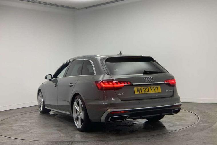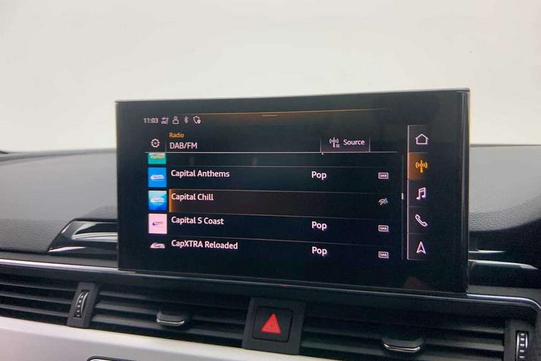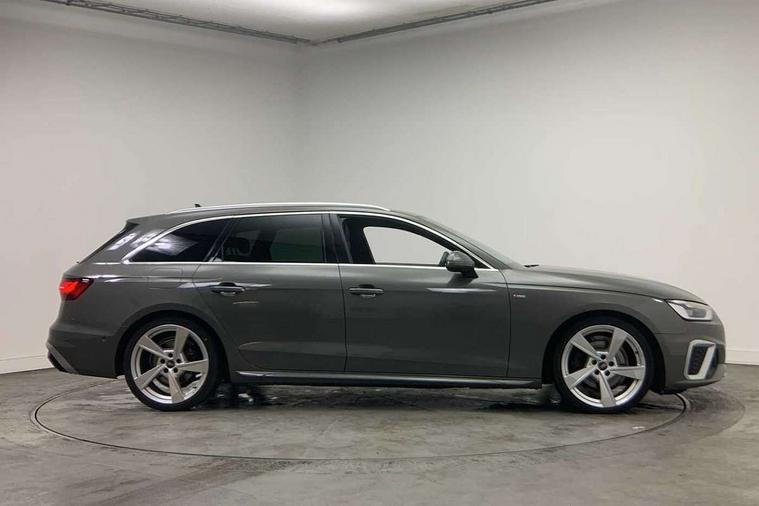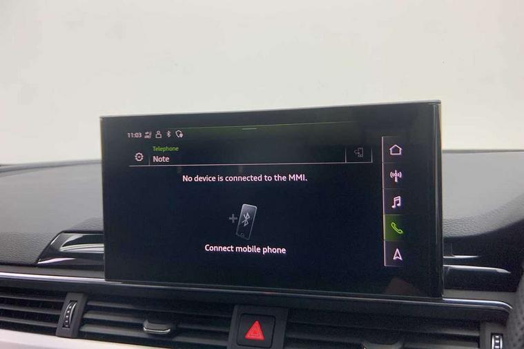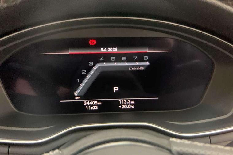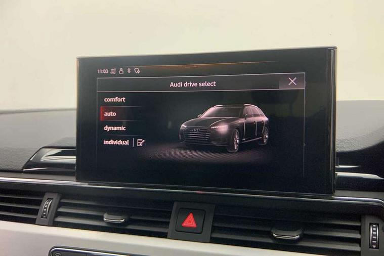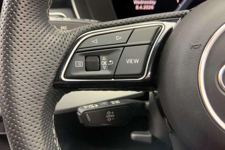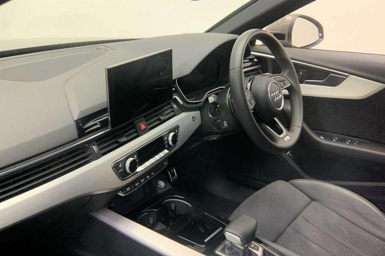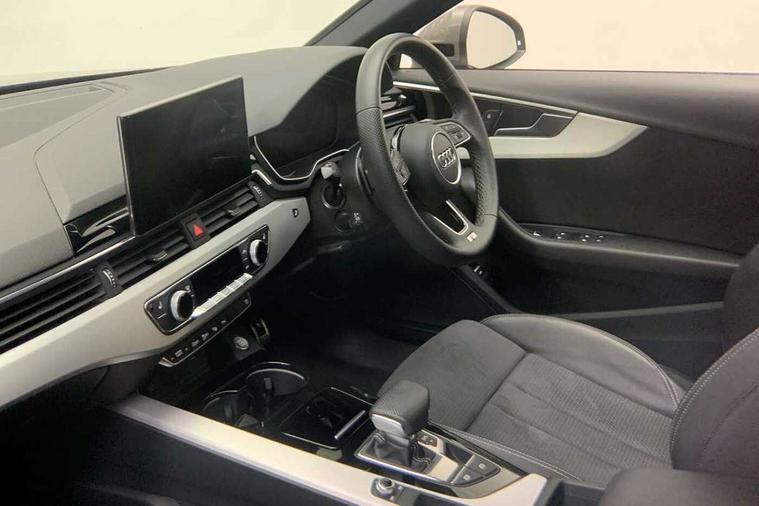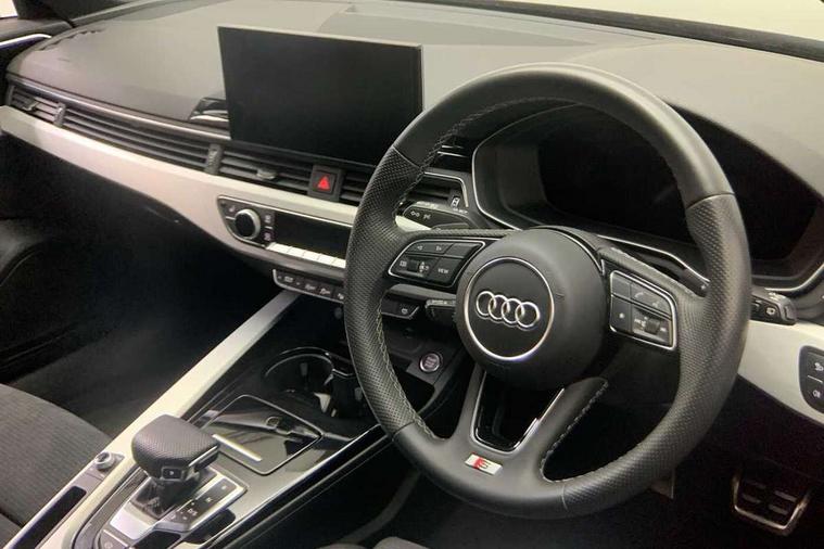 Audi connect safety and service (e-call), Audi connect with Amazon Alexa Integration, Audi drive select, Audi smartphone interface, Audi virtual cockpit, Automatic start-stop system with coasting functionality and efficiency programme, Bluetooth interface, Electromechanical power steering, Email, calendar and text messages displayed via MMI, MMI Navigation plus with MMI touch includes 10.1" high resolution colour MMI display, 3D map, Power operated tailgate, Voice control system, 54 litre fuel tank, Sports suspension lowered by 23mm, 2 USB charging ports, 8 passive loudspeakers, DAB digital radio reception, Aluminium roof rails, Auto dimming rear view mirror, Body colour door handles, Body colour front spoiler lip, Body colour side sill trim, Body coloured door mirrors, Electrically folding auto dimming/adjustable/heated door mirrors with LED side indicators and kerb view function for passenger side, Grained matt black side air inlets with matt aluminium silver inlay, High beam assistant, Honeycomb structure radiator grille in grained matt black, LED headlights with LED rear lights + dynamic rear indicators + headlight adjustment and high beam, turning light + LED daytime running lights, LED third brake light, Matt aluminium silver tailpipe trim, Privacy glass, Rain and light sensors, Rear side wing doors, Rear wiper, S Line badges on the front wings, S line front and rear bumpers with side skirts, S Line rear diffuser in matt anthracite black with trim strip in matt aluminium silver, S Line roof edge spoiler, Variable intermittent front wash/wipe, Windscreen with acoustic glazing, 3 spoke high multi-function sports leather steering wheel grips in perforated leather with S badging including paddle shift, 4 way electric lumbar support for driver and front passenger, 40/20/40 split folding 3 rear seat bench in 3 parts with rear centre armrest, Black cloth headlining, Black perforated leather gearknob, Contrast stitching on seats, steering wheel and gear lever gaiter, Deluxe 3 zone electronic climate control, Door sill trims with aluminium inlay, Electric load area cover, Front and rear head restraints, Front centre armrest, Heated front seats, Illuminated door sill trims with S logo, ISOFIX child seat mounting and top tether, Manual seat adjustment, Single front passenger seat, Stainless steel pedals and foot rest, High gloss package - A4, LED Interior light pack - A4/S4, 3 rear seatbelts, 6 airbags - Driver, front passenger, curtain and side windows, Electronic Stabilisation Control (ESC) including ABS, ASR and EDL, Hill hold assist, Multi collision brake assist, Pop-up bonnet for pedestrian protection, Pre sense city, Rear door child safety locks, Seatbelt monitoring, Warning triangle and first aid kit, Anti theft alarm, Anti theft wheel bolts, Central locking, Keyless Go, Matt brushed aluminium inlays, Tool kit, Tyre repair kit,