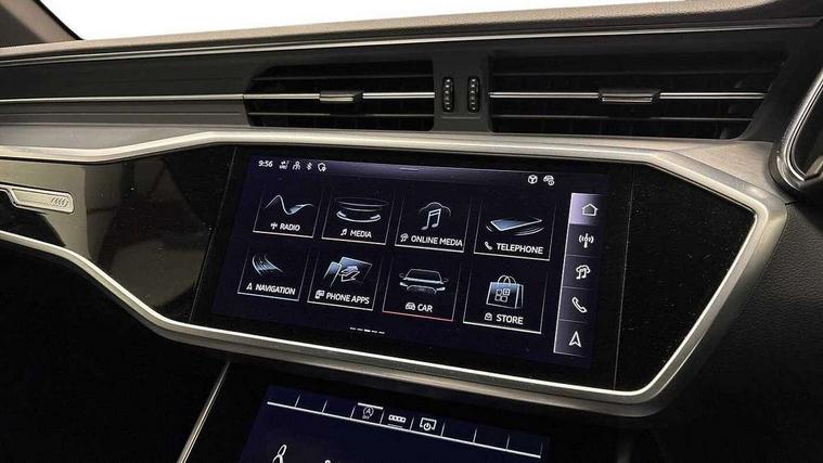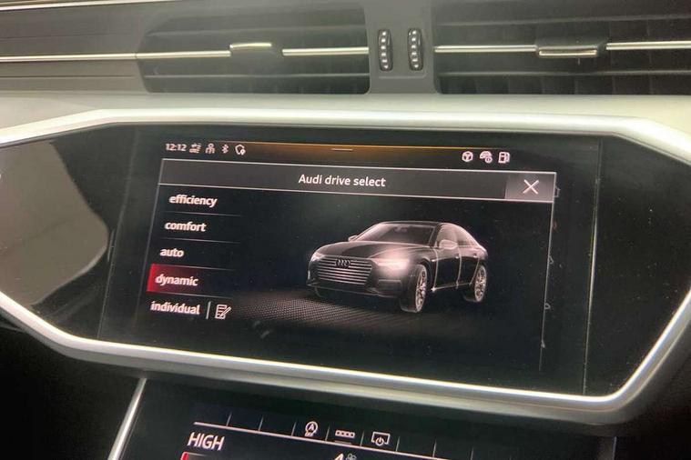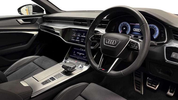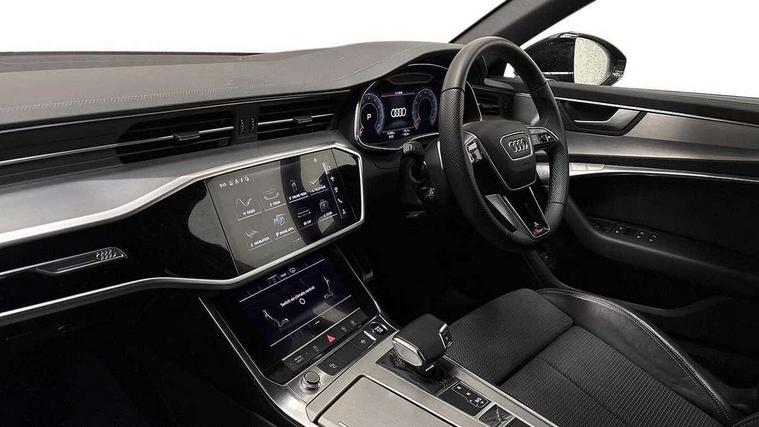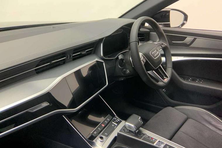Audi connect safety and service (e-call), Audi connect with Amazon Alexa Integration, Audi drive select, Audi parking system plus - acoustic and visual park assist system for front and rear, Audi virtual cockpit, Automatic start/stop system with coasting functionality, Bluetooth interface, Camera based traffic sign recognition, Electric boot lid release, Lane departure warning system, MMI navigation plus with 10.1" and 8.6" touch screens, Progressive steering, Rear view camera, Service interval indicator, Smartphone interface includes wireless Apple carplay/Android Auto, Voice control system, Sports suspension, Audi front music interface, Audi sound system, Auxiliary input socket, DAB Digital radio, USB connection, Body coloured door mirrors, Electric front/rear windows, Electrically adjustable heated and folding + automatically dimming exterior mirrors with memory function, Frameless auto dimming interior rear view mirror, Front intermittent wipers, Heat insulating darkened glass in side and rear windows, Heat insulating glass in windshield, LED rear lights with dynamic indicators, LED signature front daytime running light, LED third brake light, Matrix LED headlights, Matt black rear diffuser with diffuser strip and tailpipes in chrome, Matt black side air intake grille with inlay in matt aluminium, Privacy glass, Radiator grille in anthracite black matt, single frame in chrome and horizontal struts in matt aluminium silver, Rain and light sensors, Rear boot, Rear side wing doors, 2 zone deluxe electronic climate control, 3 spoke high multi-function perforated leather steering wheel with contrast stitching and shift paddles, 40/20/40 split folding 3 rear seat bench in 3 parts with rear centre armrest, Audi phone box light, Black cloth headlining, Electrically adjustable front seats including seat height, fore/aft position, backrest angle and 4-way lumbar with memory for driver's seat, Front and rear floor mats, Front centre armrest, Front head restraints, Heated front seats, Height/reach adjust steering wheel, Illuminated door sill trims with S logo, Illuminated sun visors with vanity mirrors, Leather gear knob, Rear headrests, Single front passenger seat, Stainless steel pedals and foot rest, Tool kit and car jack, LED Interior Ambient Lighting Pack - A6, Non smoking pack - A6, S line exterior style pack - A6, 3 point seatbelts on all seats, Airbags - Front side, front and rear including head, Audi pre-sense front, EBD - Electronic brakeforce distribution, Electromechanical parking brake, Electronic Stability Control (ESC) including ABS, ASR and EDL, Extended pedestrian protection measures, ISOFIX child seat mounting for front passenger seat and ISOFIX child seat mounting with Top Tether for outer rear seats, Manual child proof rear door locks, Seatbelt monitoring, Tyre pressure warning light, Warning triangle and first aid kit, Anti theft alarm with tow away protection, Anti-theft wheel bolts and wheel loosening detection, Immobiliser, Keyless Go, Remote central locking, Matt brushed aluminium inlays,