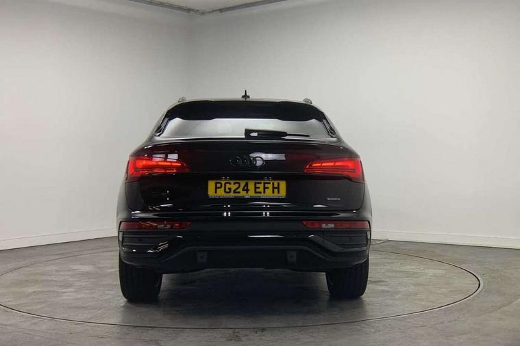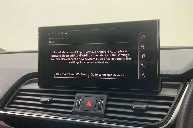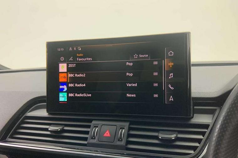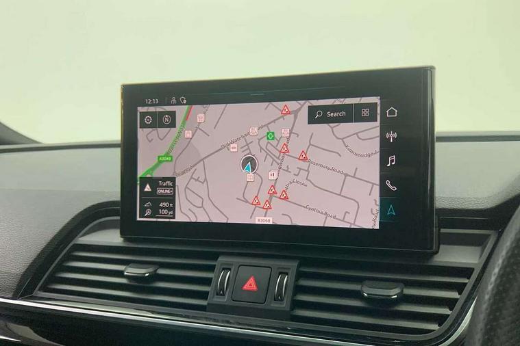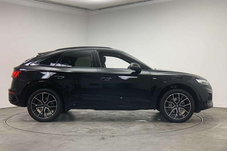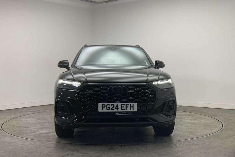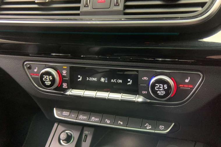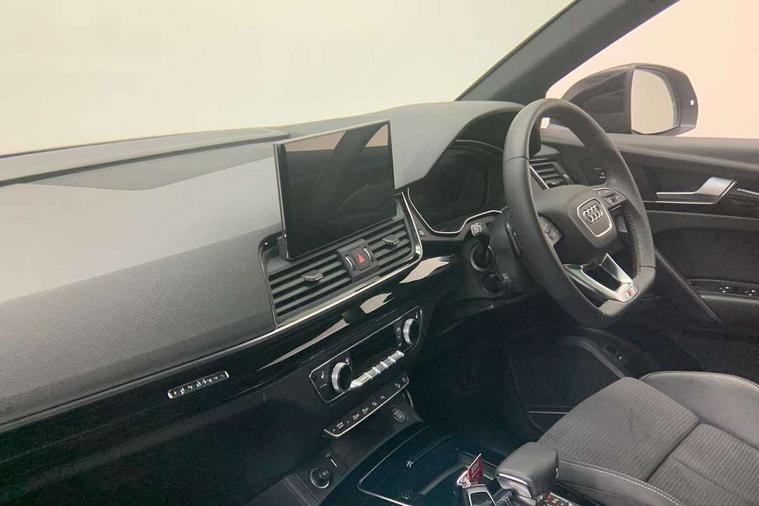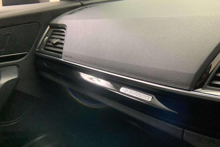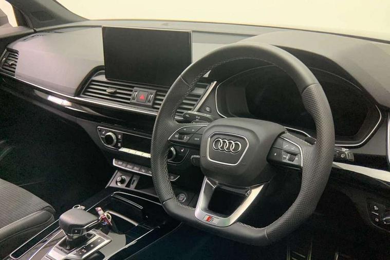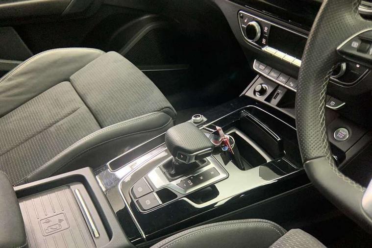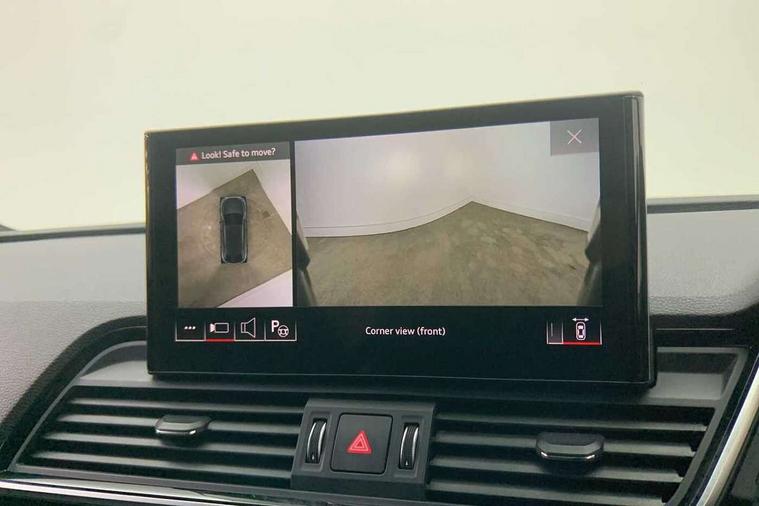 Acoustic front and rear parking sensor, Audi connect safety and service (e-call), Audi drive select, Audi virtual cockpit plus with 12.3" screen and three different layout designs, Audi wireless smartphone interface, Automatic start-stop system with coasting functionality and efficiency programme, Bluetooth interface, Camera based traffic sign recognition, Electro - mechanical power assisted steering, Lane departure warning, MMI navigation plus with 10.1" touch screen, Power tailgate, Reversing camera, Service interval indicator, Voice control system with Audi hotword activation "Hey Audi", Diesel particulate filter, Quattro on demand, S line sports suspension, 2 x USB charging port with aux input socket, 8 loudspeakers, DAB Digital radio, Acoustic windscreen, Auto dimming door mirrors, Auto dimming frameless rear view mirror, Automatic headlight adjustment, Automatic headlights and windscreen wipers, Black roof rails, Black styling with black rings, Body colour bumpers, Body colour rear diffuser with matt aluminium silver surrounds, Body colour underbody protection, Chrome plated exhaust trims, Daytime running lights, Door sills in Selenite silver, Electric adjustable/heated/folding door mirrors, Front air inlet surrounds in aluminium, Front and rear electric windows, Front radiator grille in honeycomb design, LED 3rd brake light, LED headlights and LED tail lights, Loading edge protection in stainless steel, Lower bumpers painted in contrast Manhattan grey, Rear chrome trim strip below lights, Rear privacy glass and rear side windows, Rear side wing doors, Rear wiper, Roof bars, S Line badges on the front wing panels, S Line front and rear bumpers, S Line rear spoiler, S Line side skirts, 3 rear headrests, Black cloth headlining, Comfort front centre armrest, Contrast stitching on seats, steering wheel and gear lever gaiter, Deluxe 3 zone electronic climate control, Front head restraints, Front sport seats with S embossed logo, Front/rear floor mats, Gear lever in black leather, Heated front seats, Height/reach adjustable steering column, Illuminated door sill trims with S logo, Luggage compartment cover, Manual seat adjustment with 4-way electric lumbar support, Single front passenger seat, Stainless steel pedals, Sunvisors with vanity mirrors, Top surface of the rear centre armrest in artificial leather, High gloss pack - Q5, LED interior light pack - Q5, 3 point seatbelts on all seats, 6 airbags - Driver, front passenger, curtain and side airbags, Attention and drowsiness assist, Electrically operated child locks on rear doors, Electromechanical parking brake, Electronic stabilisation control including ABS, ASR and EDL, First aid kit with warning triangle and vests, Front passenger airbag deactivation, Hill descent control, Hill hold assist, ISOFIX child seat mounting for front passenger seat and ISOFIX child seat mounting with Top Tether for outer rear seats, Multi collision brake assist, Pop-up bonnet for pedestrian protection, Pre sense city, Seatbelt monitoring, Tyre pressure warning, Anti theft alarm, Anti-theft wheel bolts, Remote central locking, Remote control key with SAFELOCK and keyless go, Air vents inserts and centre console in gloss black, Tool kit, Tyre repair kit,