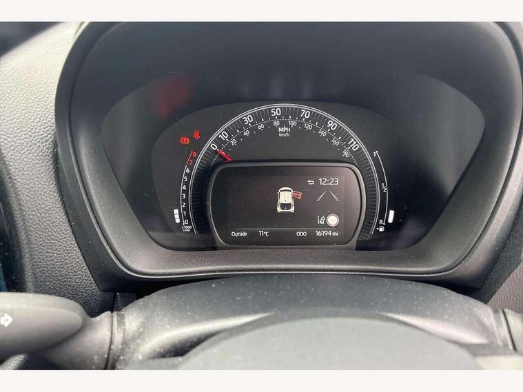 4.2" TFT colour screen, Adjustable speed limiter, Analogue speedometer, Bluetooth connectivity, Digital tachograph, Driver attention alert system, eCall emergency call system, Electric power steering, Intersection turn assist, Key reminder warning, Noise reduction kit, Pre collision system with emergency steering assist, Reversing camera with static guide lines, Smart phone integration with Apple car play/Android Auto, Speed limit display, Start and stop, Vehicle Stability Control (VSC), 4 speakers, 9" HD multimedia display touch screen with Toyota smart connect, DAB digital audio broadcast, USB connector, Auto headlights, Auto wipers, Automatic headlights cut-off, Bicycle towing hook, Black contrast roof, Black side protection mouldings, Black wheel arch mouldings, Body colour door handles, Body coloured front bumper, Boot door scuff plate, Eclipse black rear bumper, Electric heated door mirrors, Follow me home headlights, Front fog lights, Front power windows, Gloss black door mirrors, Gloss black upper front grille, Headlight cut-off reminder, LED daytime running lights, LED front light guide, LED High mounted stop lamp, Manual day/night rear view mirror, Manual headlight levelling, Pagoda roof, Power adjustable door mirrors, Power back door, Privacy glass, Projector halogen headlights, Rain sensor, Rear combination lights LED bulb type, Rear side wing doors, Rear windscreen defogger, Rear windscreen wiper, Short antenna, Variable intermittent windscreen wipers, 12v power outlet - front, 2 seat bench in 2nd row, 3 spoke leather steering wheel, 50/50 split folding rear seat, Adhesive roof headlining, Adjustable speed limiter switch on steering wheel, Audio and telephone switches on steering wheel, Auto air conditioning, Black insert on steering wheel, Black roof lining, Boot light, Centre room light, Chrome interior door handles, Chrome surround on air conditioning buttons, Clean air filter, Console box storage in body color, Fabric upholstery, Floor mats, Front and rear cup holders, Front head rest deco art, Front head restraints, Height adjustable driver seat, Intelligent adaptive cruise control switch on steering wheel, ISOFIX child restraint system on rear seats, Lane departure alert switch on steering wheel, Leather gearshift knob, Manual tilt steering wheel, Manually reclining and sliding driver seat, Manually reclining and sliding front passenger seat, Multimedia switches on steering wheel, Pollen filter, Rear door pockets, Rear head restraints, Satin silver insert on gear shift knob, Single compartment glovebox with lights, Single front passenger seat, Soft tonneau cover, Sun visors with mirror on driver and passenger side, Voice recognition switch on steering wheel, Toyota safety sense pack - Aygo X, Anti lock braking system + Electronic brake force distribution, Child safety door lock, Emergency brake light signal (EBS), Hill start assist control (HAC), Passenger airbag on/off switch, Seat belt reminder for front and rear seats, Supplement restraints system (SRS) - 6 airbags, Traction control, Tyre pressure warning system, Immobiliser, Remote power door locks, Black wheel centre caps, Tyre repair kit,