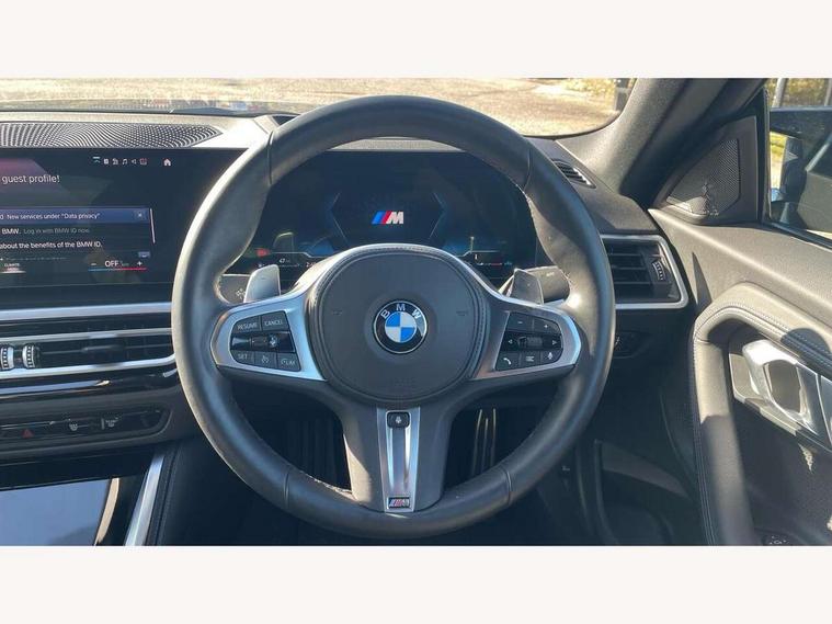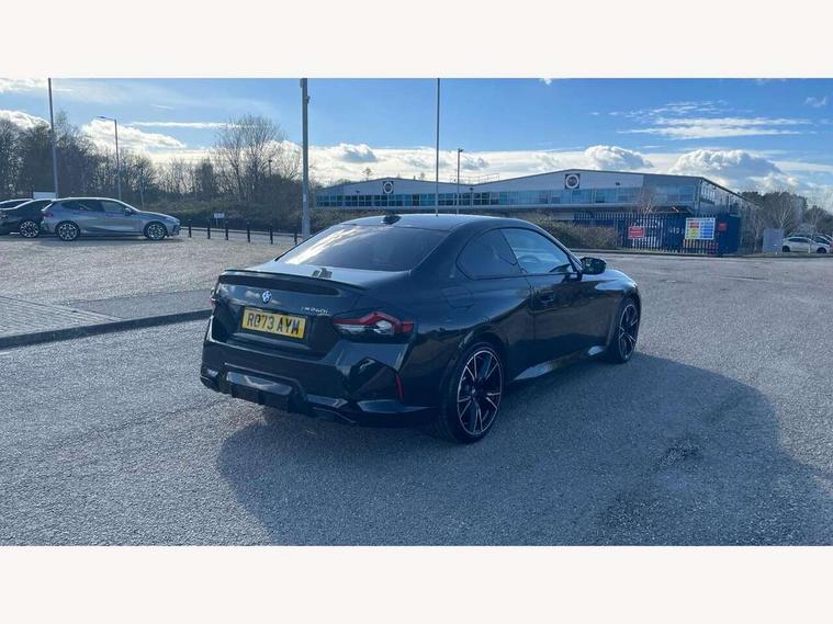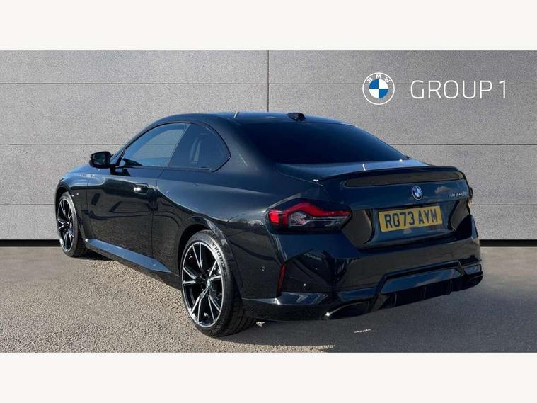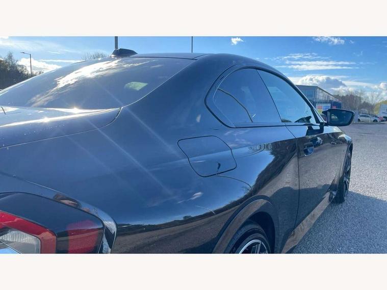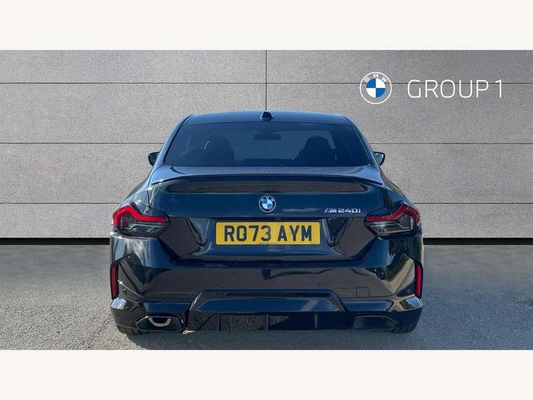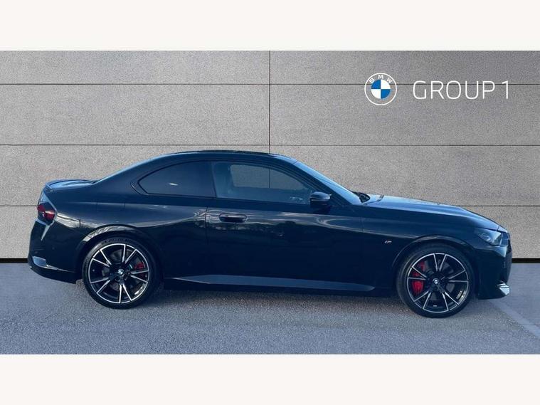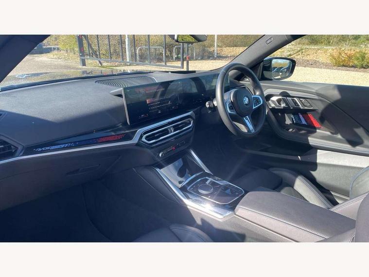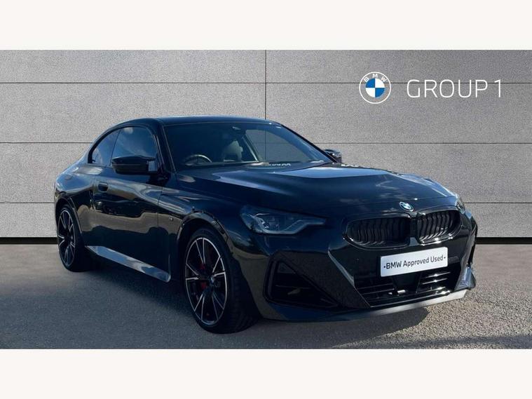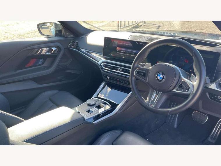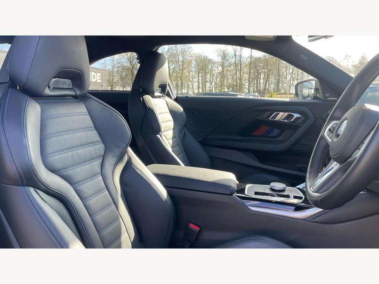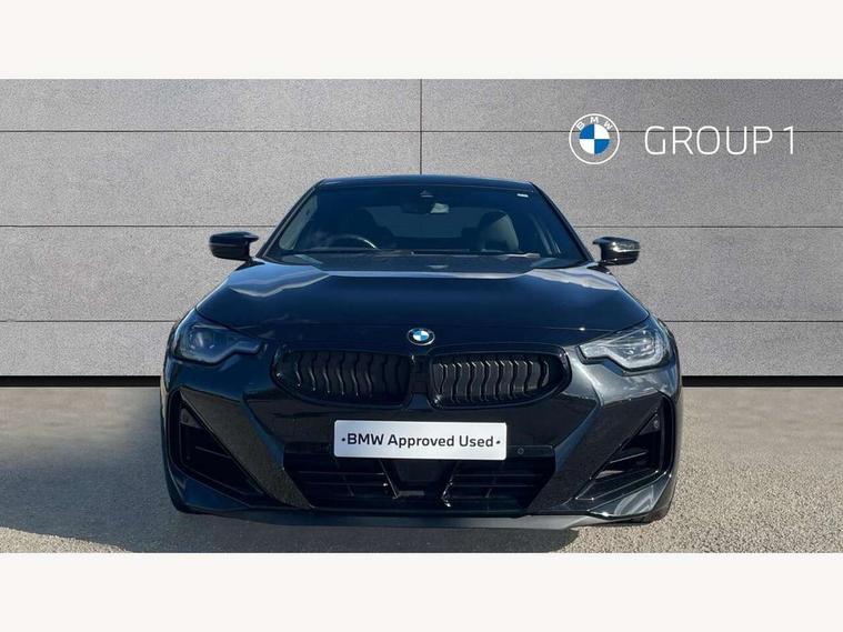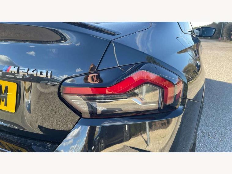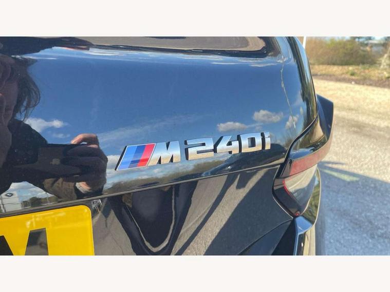 2 USB connections for charging and transferring data, 4G LTE connectivity with hard wired 4G network sim card, Attentiveness assist, Bluetooth with USB, BMW ConnectedDrive online services, BMW Intelligent Personal Assistant, BMW operating system 8 with variable, configurable widgets display information in real time, BMW Teleservices, Check Control warning system for monitoring of lights and door/luggage compartment open warning, Direct selection buttons, Drive off assistant, Driving experience switch with sport+ mode, Eco pro mode, Electric power steering, Front and rear parking sensors, Front/rear Parking distance control, iDrive controller with turn and press function, Integrated owners handbook, Intelligent functions, Live cockpit plus with nav function 12.3" instrument cluster and 14.9" centre display, Oil sensor for level and grade, Optimum shift indicator, Personal Profile, Touch operation on control display, Variable sport steering, Widescreen multi-media display, WiFi interface for wireless connection of mobile terminal devices, Aluminium lightweight construction, Balancer shaft, BMW TwinPower Turbo inline 6-cylinder petrol engine, Double VANOS, Drive performance control with ECO PRO comfort + sport mode, High precision injection, M Sport differential, Petrol Particulate Filter, Sport automatic steptronic transmission with gearshift paddles, manual gearshift time display, launch control, coasting idle ECO PRO/COMFORT modes, Twin scroll turbocharger with Valvetronic, xDrive with rear orientated application, DAB tuner, Acoustic windscreen wipers for reduced driving noise, Adaptive LED Headlights, Automatic windscreen wipers and automatic headlight, Automatically dimming rear view mirror, BMW individual lights shadow line, Body colour door handles flush with door surface, Body colour front and rear bumpers, Daytime running lights, Electric windows - front and rear, with open/close fingertip control and trap release, Exhaust tailpipes x 2 - free form finisher in black chrome in left and right, Exterior air inlets in front bumper with embellishers in high gloss black, Fading support, Flap controlled M Sport exhaust system, Front and rear bumper system with replaceable deformation elements, Front door sill finishers in black plastic with BMW designation, Front ornamental grille frame in high gloss black, Front windscreen wipers with integrated washer jets, Green tinted heat protection glazing, High beam assistant, High gloss black exterior M mirror caps, High gloss black sill, bumper trim sides and diffuser insert, High gloss shadowline exterior trim in mirror triangle cover, mirror cover panel, mirror bezel and window border, High level third brake light, Indicators integrated int mirror housing, LED registration plate light, LED technology rear tail lights, brake lights and turn indicators, Lightweight engineering, M Sport spoiler - Gurney in body colour, Model designation and M badges in cerium grey, Model designation on right side of tailgate, Rear boot, Rear fog lights, Reversing light in rear light cluster, Shark fin antenna, Side frame decorative moulding black high gloss, Single part LED rear lights with smoked glass components, Sun protection glass, Trailer stabilisation logic, Visible VIN plate, xDrive designation on left tailgate, 12V power socket in front centre console with blanking plug, 2 cupholders in front centre console, 2 zone automatic air conditioning, Ambient lighting, Compartment in front of cupholder, Conditioned based service, Driver seat backrest width adjustment, Electric front seat adjustment with driver memory, Front and rear side armrests integrated into door trim, Front armrest, Front door pockets, Front head restraints, Front M Sport seats, Front passenger seat lumbar support, Heated front seats, Illuminated glove compartment with separate small compartment, Lumbar support for driver, M headliner Anthracite, M sport leather steering wheel, M240i badge in instrument cluster, Manually adjustment steering wheel column, Rear seat backrest with manual 40:20:40 split folding, Rear seat centre foldable armrest with integrated cup holder, Single front passenger seat, Storage compartment between rear seats, Storage tray and compartment with cover in centre console, Sun visors with vanity mirrors and insert tab, Through loading system with 40/20/40 split folding 2 rear seat in 2nd row, Two folding rear seat headrests, Velour floor mats, Vernasca leather upholstery, Additional storage compartment pack without USB - 2 Series Coupe, Connected pack professional - 2 Series Coupe, Interior and exterior mirror pack - 2 Series Coupe, M Sport exterior styling aerodynamics pack - 2 Series Coupe M240i, 2 tone horn, Anti lock braking system (ABS) with cornering brake control, Automatic Stability Control (ASC), BMW emergency call, Brake drying, Child seat ISOFIX attachment for the two outer rear seats, Crash sensor activating of airbags, Unlocking doors, hazard warning lights, interior light, safety battery terminal, Deactivation of fuel pump in the event of a crash, Driver and front passenger airbags, Driver and front passenger side airbags, integrated in the door side seat backrest bolsters for all seat variants, Dynamic brake control, Dynamic stability control + (DSC+), Dynamic Traction Control - DTC, Electrically operated hand brake including automatic hold function and automatic release when driving off, Front and rear disc brakes, Head airbags for all 4 outer seats, M seat belts, M Sport brake with red calipers, Manual deactivation of front passenger airbag, Seat belt security check for driver and front passenger, Seatbelt warning, Side impact protection, Three point seat belts on 4 seats including front belt stopper, pyrotechnic belt tensioners and belt force limiters, Tyre pressure sensor, Warning triangle and first aid kit, Alarm system (Thatcham 1) with remote control and electronic engine immobiliser, Central locking switch for all doors, fuel filler cap and luggage
