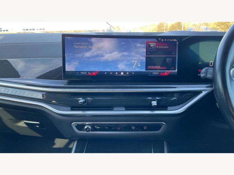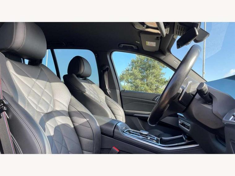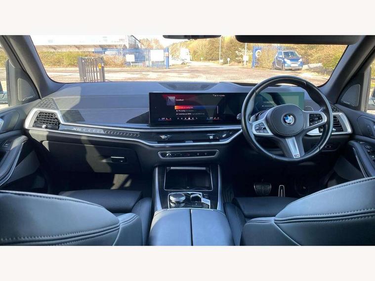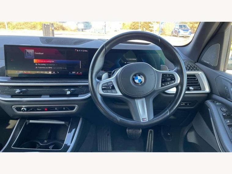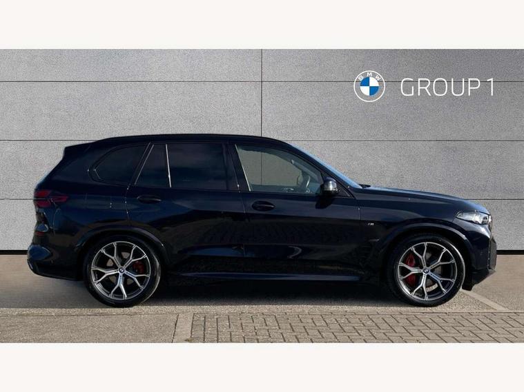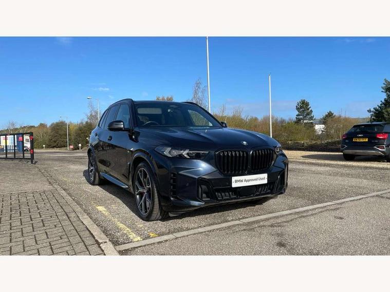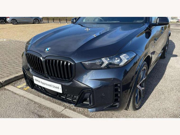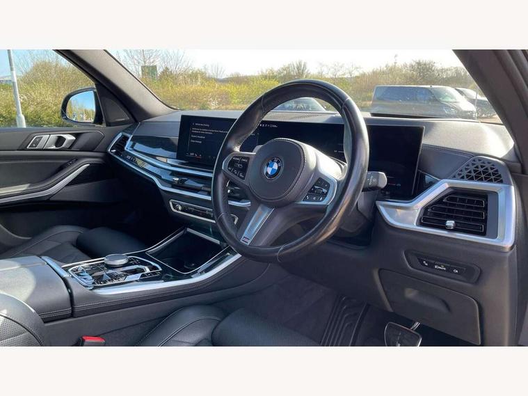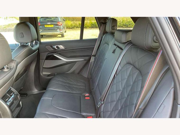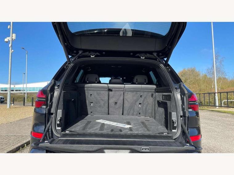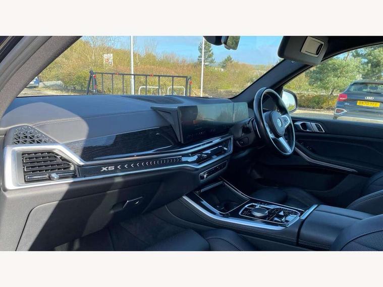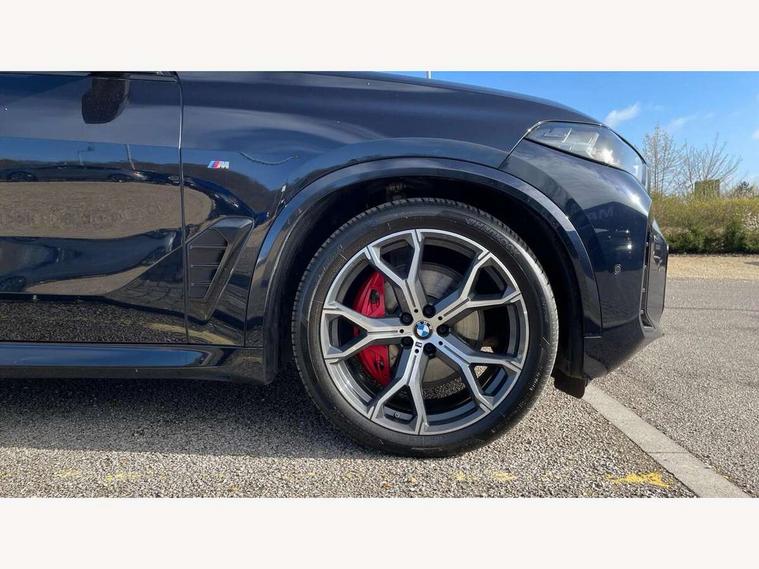 Attentiveness assist, Automatic tailgate operation, BMW ConnectedDrive online services, BMW live cockpit + with curved 12.3 instrument cluster/14.9 central display, nav/Tuner with diversity reception, RDS/4GLTE/remote software upgrade, BMW Recovery system, BMW Teleservices, Condition based service, Cruise control with brake assist, eCall emergency call system, Enhanced bluetooth with wireless charging, Integrated owner's handbook, PAS, Speed limiter, Wi-Fi hotspot, Drive performance control with ECO PRO comfort + sport mode, Eight speed steptronic sport automatic transmission and gearshift paddles on the steering wheel, Hi-Fi loudspeaker system, Adaptive LED Headlights, Front and rear electric windows, High beam assistant, High gloss black shadow line roof rails, LED daytime running lights, Rear side wing doors, Third brake light in rear spoiler, Variable intermittent rear wash/wipe, 12V - Power sockets with 2x centre console and 1x luggage compartment, 3 seat bench in 2nd row, Foldable rear centre armrest with 2 cupholders and storage compartment, Front and rear side armrest integrated into door trim, Headrests for all seats, Luggage compartment separating net, Single front passenger seat, Three spoke sport M leather steering wheel, Velour floormats, Ambient light interior pack - X5, Driving assistant pack with radar based driver assistance system - X5, Expanded exterior mirror pack - X5/X5 M, M aerodynamics pack - X5, 3 rear seatbelts, Active protection, Airbags - driver/front passenger, rear and side, first and second row seats head airbags, front passenger seat airbag deactivation + knee airbag, Anti-lock braking system (ABS), Automatic Stability Control (ASC), Brake energy regeneration, Cornering brake control (CBC), Crash sensor activating central locking release, hazard warning lights, fuel cut off, interior lighting + activation of safety battery terminal clamp, DSC - Dynamic Stability Control, Dynamic Traction Control - DTC, Electromechanical parking brake with automatic drive away release and auto hold function, Electronic brake force distribution, Hill start assistant, M Sport blue painted brake calipers with 'M' designation, Mechanical child proof lock on rear doors, Tyre pressure monitoring system, Tyre pressure sensors, Ventilated front and rear disc brakes, Warning triangle and first aid kit, Closing system with central locking, Comfort access system, Locking wheel bolts, Sensatec instrument panel,