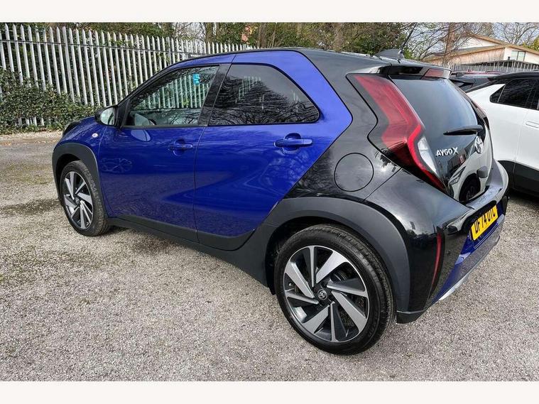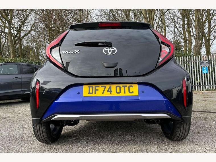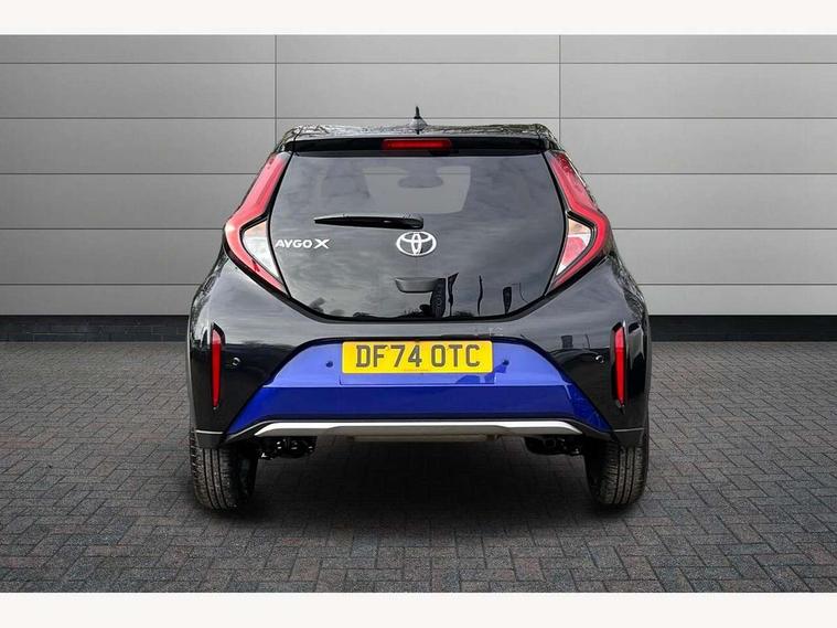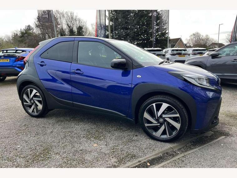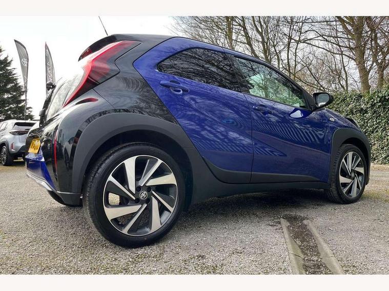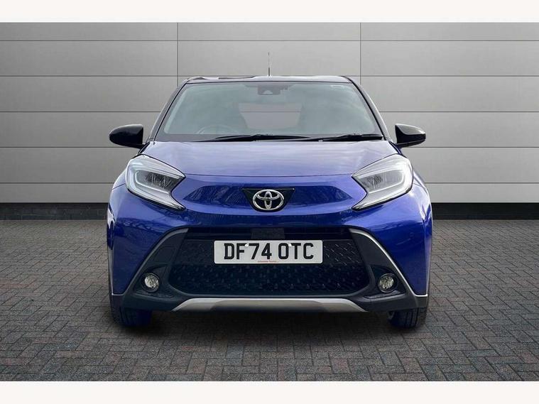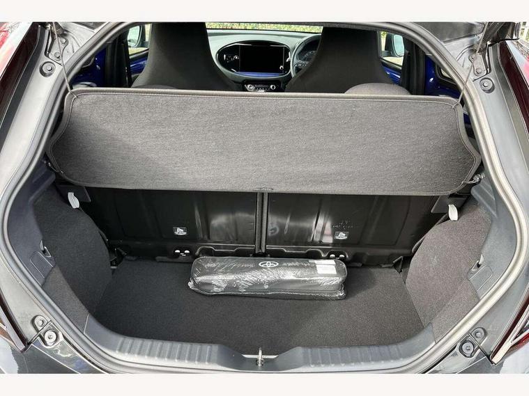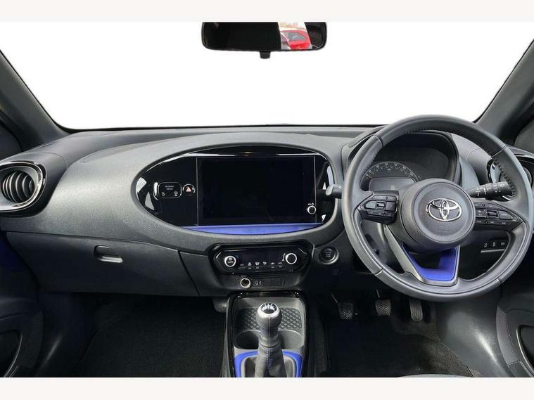 4.2" TFT colour screen, Adjustable speed limiter, Analogue speedometer, Bluetooth connectivity, Digital tachograph, Driver attention alert system, eCall emergency call system, Electric power steering, Front and rear parking sensors with auto brake, Intersection turn assist, Key reminder warning, Noise reduction kit, Pre collision system with emergency steering assist, Remote boot door release on key, Reversing camera with static guide lines, Smart entry and push button start, Smart phone integration with Apple car play/Android Auto, Speed limit display, Start and stop, Wireless charger, Vehicle Stability Control (VSC), 10.5" HD multimedia display touch screen with Toyota smart connect, 4 speakers, DAB digital audio broadcast, USB connector, Auto headlights, Auto wipers, Automatic headlights cut-off, Automatic high beam On/Off switch, Bicycle towing hook, Black contrast roof, Black fog light surrounds, Black side protection mouldings, Black wheel arch mouldings, Body colour door handles, Body coloured front bumper, Boot door scuff plate, Eclipse black rear bumper, Electric heated door mirrors, Follow me home headlights, Front and rear underruns in silver, Front fog lights, Front power windows, Gloss black door mirrors, Gloss black upper front grille, Headlight cut-off reminder, LED daytime running lights guide, LED front light guide, LED High mounted stop lamp, LED projector headlights, Manual day/night rear view mirror, Manual headlight levelling, Pagoda roof, Power adjustable door mirrors, Power back door, Privacy glass, Rain sensor, Rear combination lights LED bulb type, Rear side wing doors, Rear windscreen defogger, Rear windscreen wiper, Remote hazard lights system, Short antenna, Variable intermittent windscreen wipers, 12v power outlet - front, 2 seat bench in 2nd row, 3 spoke leather steering wheel, 50/50 split folding rear seat, Adhesive roof headlining, Adjustable speed limiter switch on steering wheel, Audio and telephone switches on steering wheel, Auto air conditioning, Black roof lining, Body colour satin anodised insert on steering wheel, Boot light, Centre room light, Chrome interior door handles, Chrome surround on air conditioning buttons, Clean air filter, Console box storage, Floor mats, Front and rear cup holders, Front head rest deco art, Front head restraints, Height adjustable driver seat, Intelligent adaptive cruise control switch on steering wheel, ISOFIX child restraint system on rear seats, Lane departure alert switch on steering wheel, Leather gearshift knob, Light blue ambient lighting in centre console, Manual tilt steering wheel, Manually reclining and sliding driver seat, Manually reclining and sliding front passenger seat, Multimedia switches on steering wheel, Partial synthetic leather upholstery, Pollen filter, Rear door pockets, Rear head restraints, Satin silver insert on gear shift knob, Single compartment glovebox with lights, Single front passenger seat, Soft tonneau cover, Sun visors with mirror on driver and passenger side, Voice recognition switch on steering wheel, Toyota safety sense pack - Aygo X, Anti lock braking system + Electronic brake force distribution, Child safety door lock, Emergency brake light signal (EBS), Hill start assist control (HAC), Passenger airbag on/off switch, Seat belt reminder for front and rear seats, Supplement restraints system (SRS) - 6 airbags, Traction control, Tyre pressure warning system, Immobiliser, Remote power door locks, Black wheel centre caps, Tyre repair kit,