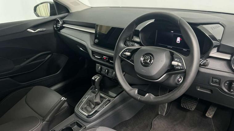Advanced driver attention and drowsiness monitor, Bluetooth connection, Electromechanical power steering, Exterior temperature gauge, Service interval indicator, Traffic sign recognition, Virtual cockpit with 10.25" colour display, Wireless SmartLink for Apple CarPlay and Android Auto, 6 Speakers (4 in front and 2 in rear), Auxiliary socket for external MP3 player, DAB digital radio reception, Body coloured bumpers, Dimming rear view mirror with black frame, Door mirror integrated indicators, Front and rear electric windows, Front window wiper intermittent control, Headlight range control - Automatic, Ice scraper in fuel cap, LED daytime running lights with coming and leaving home feature, LED rear lights, Privacy glass, Rear LED fog light, Rear side wing doors, Rear window wiper with washing nozzles, Roof mounted spoiler, SKODA tailgate lettering in chrome, Third brake light, 2 reading lights in front and 2 reading lights in rear, 3 rear headrests, Backrest split and folding, Central console with removable cup holder and storage box, Chrome handbrake release button, Fabric upholstery, Front centre armrest, Gearshift knob/handle in leather, Grain satin black interior door handles, Hand brake lever handle in leather, Height adjustable front headrests, Height adjustable front seats, Height adjustable steering wheel, ISOFIX and TopTether anchorage points to the outer rear seats, ISOFIX and TopTether on the front passenger seat, Luggage compartment lighting, Manually adjustable lumbar support in front seats, Pollen filter, Rear seat bench unsplit, Single front passenger seat, Storm grey headlining, Sun visors with mirror and airbag label on passenger side, Textile floor mats, Ticket holder, Umbrella in drivers door, 3-point height adjustable front seats belts with pretensioner and force limiter, Automatic warning lights in case of crash, Driver and passengers airbag with switch off function, e-Call+, ESC including ABS, MSR, ASR, EDS, HBA and XDS, Front and rear seat belt warning, FRONT ASSIST (AEB City and AEB Inter Urban), Front side airbags, Head airbags, Hill hold control, One tone horn, Pedestrian protection, Three rear 3-points safety seat belts with pretensioner and force limiter including stop function for outer rear seat belts, Tyre pressure monitoring system, Anti-theft alarm system including immobiliser, interior monitoring, backup horn, and towing protection, Central locking with radio remote control, interior controls, SAFE function and 2 foldable keys, Colour Edition air vents, Grain satin black central console cover, Metallic grey upper decorative trim, Satin black door and side trim panel in front, Textile Kota grey lower decorative inserts, Anti-theft wheel bolts protection, Super-low rolling resistance tyres,