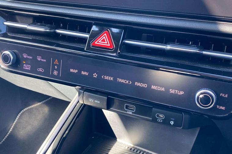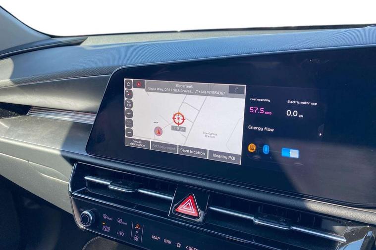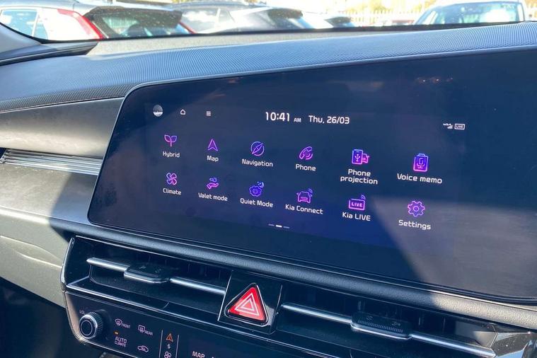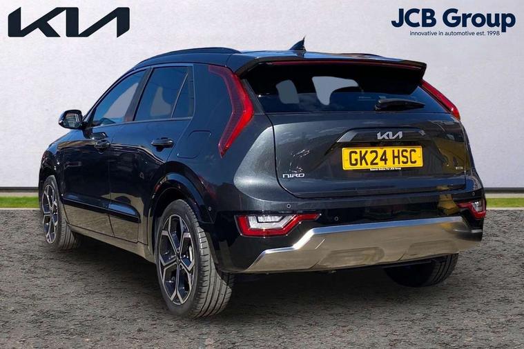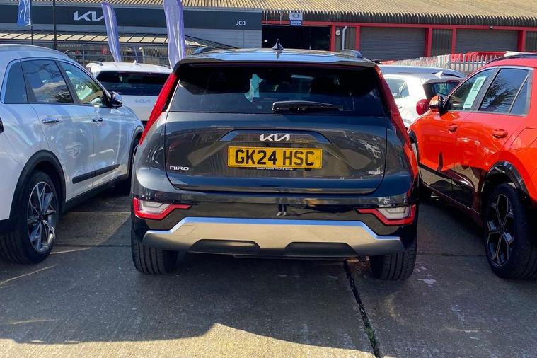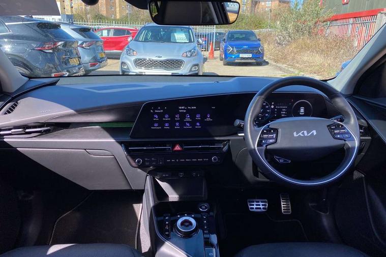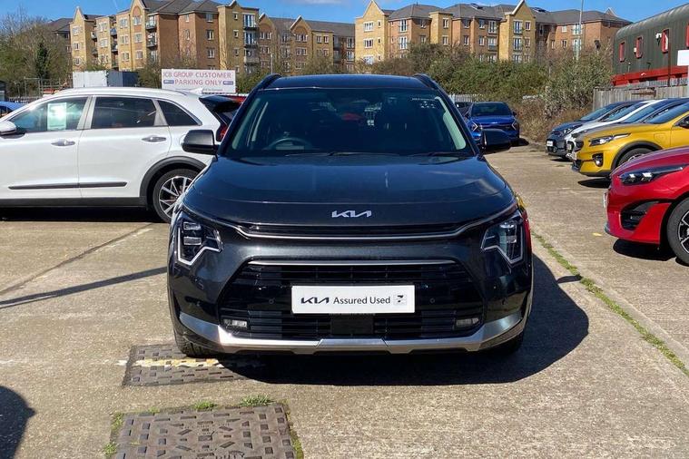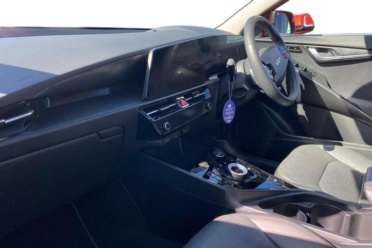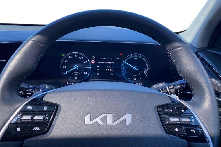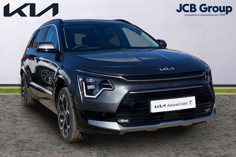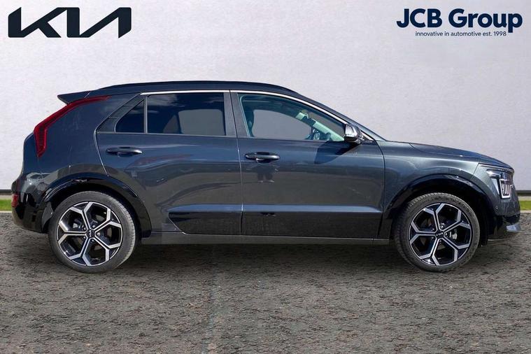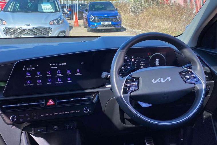 10.25" Supervision colour cluster display, 10.25" touchscreen satellite navigation, Adaptive smart cruise control function (SCC) with stop and go, Apple car play/Android Auto with voice control, Blind spot collision avoidance assist, Drive mode select (Eco, sport), E-call, Emergency stop signalling system, Forward Collision-Avoidance Assist (FCA) 1.5 - City/Pedestrian/Cyclist/Junction turning, Front parking sensors, Head up Display, Highway Driving Assist (HDA), Kia Connect (UVO), Lane Following Assist (LFA), Lane keep assist, Motor driven power steering, Parking collision avoidance assist (PCA), Power opening/closing tailgate, Rear cross traffic alert, Rear parking sensors, Remote smart parking assist, Reversing camera with dynamic guide lines, Safe exit warning (SEW), Speed limit assist, Trip computer with distance/fuel consumption/average speed, Wireless Smartphone charger, 220v AC Inverter, 'Shark fin' mobile antenna, 2 Front USB Charge port (one for C-type/one for USB), 2 type C USB ports on front seats, 6 speakers, Bluetooth with music streaming, DAB Digital radio, Steering wheel mounted controls, Acoustic windshield, All round electric windows with drivers and front passenger auto up/down and safety function, Auto dimming rear view mirror, Automatic defog system, Automatic headlight control system, Black grille with chrome surround, Body colour bumpers, Body colour exterior door handles, Deluxe door scuff plates, Dual LED headlights (low and high projection), Electric heated door mirrors, Electrically folding door mirrors, Front and rear chrome skid plates, Front fog lights, Heated rear window with timer, High gloss black cladding, High gloss black door mirrors, LED daytime running lights, LED rear combination lights, LED third brake light, One touch single tilting/sliding power sunroof, Privacy glass - Rear windows and tailgate, Rain sensing front wipers, Rear fog lights, Rear side wing doors, Rear spoiler, Rear wiper, Roof rails, Solar glass windscreen, Welcome and follow-me home light functionality, Windscreen Washer Level Warning, 12V socket in front, 12V socket in luggage compartment, 3 seat bench in 2nd row, 60:40 split remote folding rear seats, All-round height adjustable headrests, Aluminium pedals, Artificial leather centre console storage box, Artificial leather steering wheel, Centre console cupholder, Chrome coating interior door handles, Driver and front passenger power adjusted seat, Driver power adjusted memory seat, Driver/passenger sunvisors with illuminated vanity mirrors, Drivers seat power lumbar support, Dual zone automatic air conditioning, Front and rear door storage, Heated front seats, Heated outer rear seats, Heated steering wheel, Illuminated glovebox, Interior door lock/unlock function, ISOFIX Child seat top tethers and anchor fixings, LED overhead console, 2nd row and luggage lamp, Luggage area load cover, Luggage board, Paddle shifts, Passenger premium relaxation seat, Power adjustable lumbar support on front passenger seat, Rear armrest, Seatback pocket - driver, Seatback pocket - front passenger, Shift by wire SBW, Single front passenger seat, Tilt/telescopic adjustable steering wheel, Vegan leather upholstery, Ventilated front seats, Ventiliation ducts to rear compartment, Towing pack - Niro, 3 point seatbelts on all seats, ABS, Automatic unlocking of doors in case of impact, Centre side front airbags, Curtain and side airbags, Drivers knee airbag, Dual shell horn, Electric parking brake with auto hold function, Electronic stability control, Front passenger airbag deactivation, Height adjustable front seatbelts, Hill start assist control (HAC), Manual rear child locks, Rear seat alert system, Traction control, Tyre pressure monitoring system, Alarm system and engine immobiliser, Deadlocks, Engine Start/Stop Button with Smart Entry System, Locking wheel nuts, Visible vehicle identification number, Warranty - 7 Years/ 100, 000 miles, Centre fascia chopped carbon, 18" Alloy wheels, Tyre mobility kit,