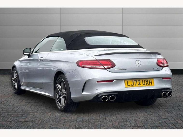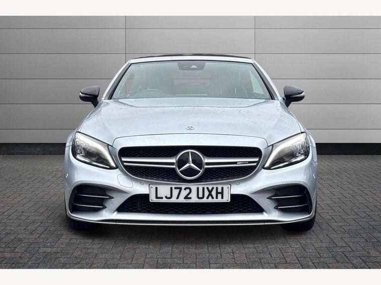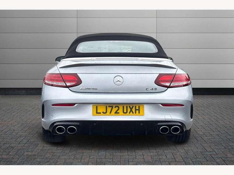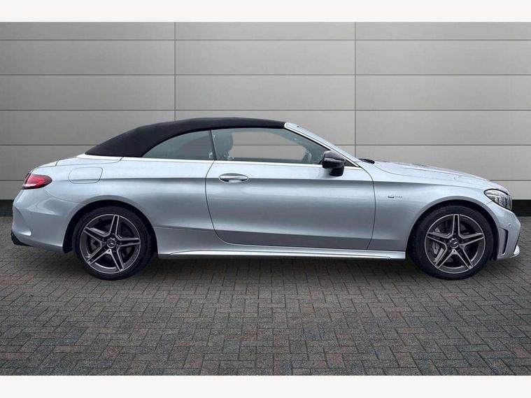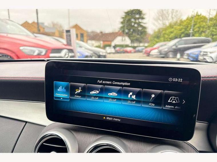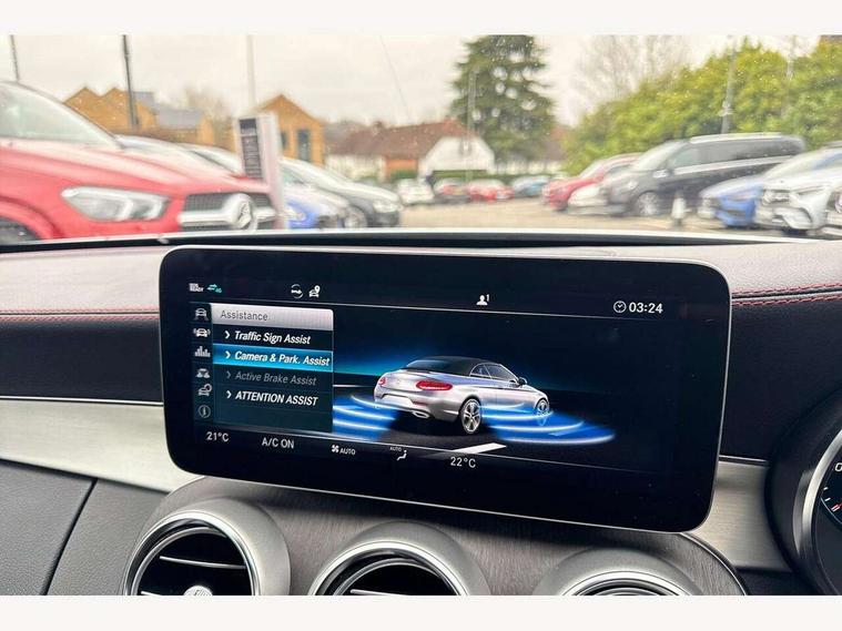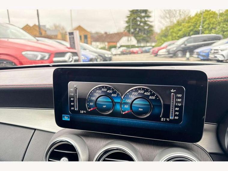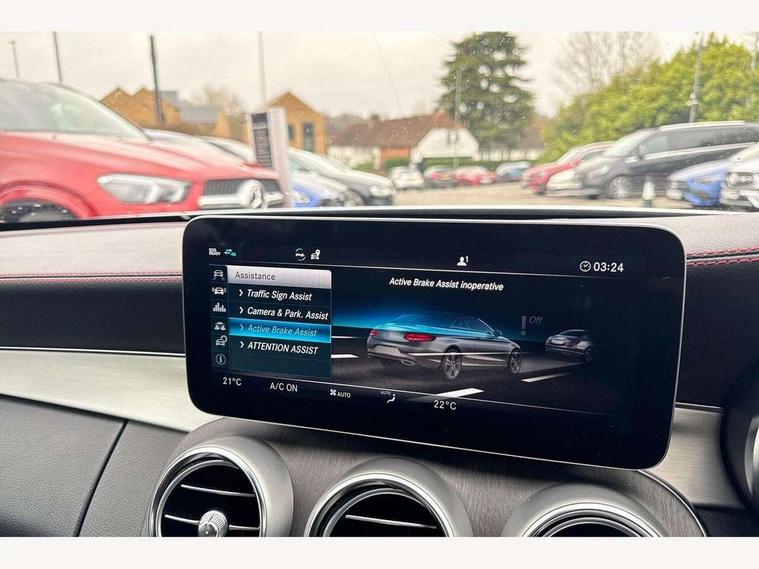 12.3" digital instrument cluster display, 2 stage speed sensitive sport steering, 360 degree camera, Active park assist with parktronic system, AMG boot logo in central screen, Attention assist, Bluetooth interface for hands free telephone, Collision prevention assist plus, Comand Online HDD Nav with media interface, radio/CD/DVD/MP3, 10.25 screen, linguatronic voice control, Cruise control with speedtronic variable speed limiter, DYNAMIC SELECT with a choice of driving modes (ECO, Comfort, Sport, Sport+ and Individual), ECO start/stop function, High resolution 10.25" multimedia colour display, Instrument cluster two tube design round dials and 5.5-inch TFT multi-function display, Mercedes me connect including emergency call system, accident recovery, breakdown and maintenance management, Multi function trip computer, Outside temperature display, Pre-wiring for SD navigation system, Remote boot release, Reversing camera, Service indicator (ASSYST), Status display for rear seat belts in instrument cluster, 66l fuel tank with increased capacity, 9G Tronic plus 9 speed automatic, AMG performance 4MATIC with torque control distribution, AMG Ride Control sports suspension, Petrol Particulate Filter, DAB digital radio tuner, Frontbass loudspeakers, Midline sound system, Two USB ports and one SD Card slot in centre console, Acoustic soft-top with enhanced climate and noise comfort, Adaptive brake lights, AIRCAP wind deflector and draught stop, AMG bodystyling - front apron with distinctive air intakes and AMG rear apron with diffuser look, AMG boot lid spoiler in body colour, AMG design radiator grille with double louvre in matt iridium silver with AMG lettering, AMG performance exhaust system, Automatic headlights, Black door mirror housings, Body coloured bumpers, Electric windows with one touch opening/closing and obstruction sensors, Exterior mirrors heated and electronically adjustable, Front door sill panels with AMG lettering, Full LED tail lamps, Green tinted glass, LED daytime running lights, LED Indicators, LED third brake light, Multi beam LED headlights, Radio aerial integrated into rear window, Rain sensor windscreen wipers, Rear boot, Semi-automatic boot separator, Side windows surround in polished aluminium, V8 Bi-Turbo 4Matic badge on front wings, 2 cupholders in front centre console, 2 rear head restraints, 2 seat bench in 2nd row, 3 spoke AMG performance flat bottom leather steering wheel in black, heavily embossed central grip area silver chrome and contrast topstitching in red, 40:20:40 split folding rear seats, Airscarf - neck level heating, Auto Mercedes-Benz child seat recognition sensor, Electric height/reach adjustable steering column, Floor mats with black leather edging, red piping and AMG logo, Front centre armrest with storage compartment, Front head restraints, Front LED reading lights, Heated front seats, Illuminated glove compartment stowage, Interior lighting - 64 colour Ambient lighting, Leather upholstery, Single front passenger seat, Sports pedals with stainless steel surfaces and rubber studs, Sports seats with integrated head restraints, Steering wheel gearshift paddles, Steering wheel touch control buttons for audio and onboard settings, Sunvisors with illuminated vanity mirrors, THERMATIC 2 zone automatic climate control, Interior lighting package - C Class, Memory pack with steering column memory - C Class, Mirror package - C Class, Seat comfort pack - C Class, Stowage space pack - C Class, 2 rear seatbelts, 3 point automatic seatbelts, Active bonnet, Adaptive brake system with hold function and brake drying function, Anti-lock braking system (ABS), Automatic seatbelt pretensioner for driver and front passenger, Brake calipers with AMG lettering + perforated brake discs, Dual stage airbags - driver and front passenger, front sidebags, driver kneebag, pelvis bag and windowbags for driver, front and rear passengers, Electronic parking brake, Electronic Stability Programme (ESP), ISOFIX child seat attachment points with top tether in rear, Red seat belts, Sports braking system with larger brake discs, Tyre pressure monitoring system, Warning triangle and first aid kit, Anti-theft alarm system/interior protection with tow-away protection and interior monitoring systems, Central locking with interior switch, automatic locking and crash sensor with emergency opening function, Chrome surround electric key, Immobiliser, Anthracite open pore oak wood trim, Artico man-made leather dashboard with red contrast stitching, 18" AMG 5-spoke light-alloy wheels aerodynamically-optimised, painted in tremolitegrey with a high-sheen finish, TIREFIT with tyre inflation compressor,