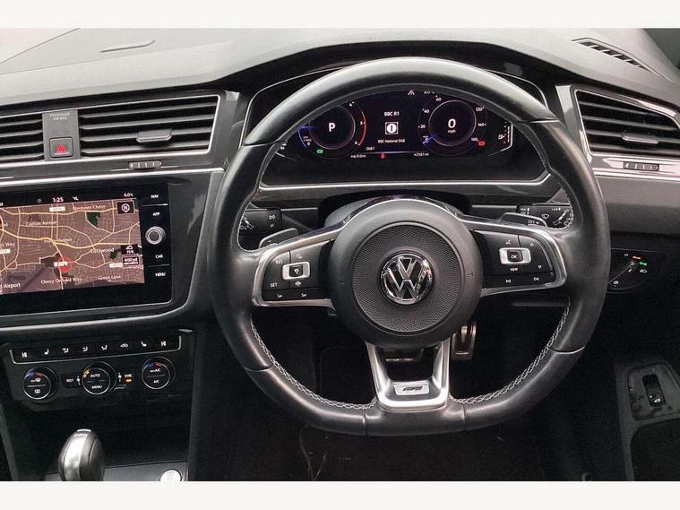 2D/3D map view, Active information display, Adaptive cruise control, App-Connect, Bluetooth phone integration system, Car information display, Coasting function, Distance control assist, Drive mode selector, Driver profile selection, Front assist, radar sensor controlled distance monitor, city emergency braking + predictive pedestrian protection, Instrument cluster, Lane assist, Lights on warning, Multifunction computer with visual gear change recommendation for fuel consumption, Outside temperature display, Service interval indicator, Speed limiter, Start/Stop function, Warning sound and light for doors and tailgate open, Battery regeneration during braking, XDS electronic differential lock for improved traction and handling, 2 x USB connection + USB charging socket, 4 X 20 watt output, DAB Digital radio, SD card slot, Simultaneous pairing of 2 compatible mobile devices, SMS functionality - read, compose and send SMS messages using touch-screen display, Title and cover art display, 3D effect cherry red LED rear tail lights, Auto dimming interior mirror, Automatic activation of hazard warning lights, Black grained lower door protectors with chrome inserts, Body colour door handles, Body colour door mirrors, Body coloured bumpers, Chrome side window surrounds, Chrome trimmed radiator grille, Coming/leaving home lighting function, Dusk sensor + auto driving lights, Electric panoramic sunroof with sunblind, Electrically heated and foldable door mirrors, door mirror puddle lights and reverse activated kerb view adjustment on passenger's door mirror, Front and rear electric windows, Heated rear window, High level 3rd brake light, LED headlights with dynamic light assist daytime running lights and cornering front fog lights, LED rear number plate lights, Piano black front air intake and rear diffuser, Rain sensor windscreen wipers, Rear tinted glass from B-pillar backwards approx 65% tinted, Rear windscreen washer and wiper with interval delay, Side door sills with chrome inserts, Silver front underbody protection and rear diffuser, Silver roof rails, Windscreen wipers/ intermittent wipe + 4 position delay, 12V socket in centre console storage area, 2 cup holders in front, 3 rear headrests, 3 zone climate control, 4 load lashing points, 40:20:40 split folding rear seats, Bag hook in luggage compartment, Foldable front passenger seat backrest, Front + rear carpet mats, Front centre armrest with 12v socket, Front centre armrest with storage + rear 2 air vents, Front seat back storage pockets, Front seatback folding tables, Height/reach adjust steering wheel, Illuminated driver/passenger vanity mirrors, Illuminated scuff plates, Instrument lighting white adjustable panel illumination, Interior light with delay, Isofix Preparation 2 Rear child seats, Leather gear knob, Load through provision with 2 cupholders when folded, Lockable cooled glovebox, Luggage compartment lighting, Map pockets on front seats, Passenger seat height adjuster, Removable luggage cover, Sliding/reclining rear seats, Storage compartment in driver's door, Storage compartment in passenger's door, Storage compartment in rear doors, Storage compartments in luggage area left and right, Storage tray on dashboard, Sunglasses storage, Variable boot floor, height adjustable and removable, Ambient lighting pack - Tiguan, 3 rear 3 point seatbelts, ABS+EBD+Brake assist, Active bonnet, Active pedestrian safety system, Curtain airbags, Driver/Front Passenger airbags, Driver/Passenger whiplash optimised head restraints, Drivers knee airbag, DTC - Drag torque control, Electronic parking brake with auto hold, ESC with EDL, ASR, EDTC and trailer stabilisation function, First aid kit, Front seat side impact airbags, Front side airbags, Front ventilated disc brakes and rear disc brakes, Head airbag system, Height adjustable front 3 point seatbelts + pretensioners, Hill hold control, Passenger airbag deactivate switch, Passenger knee airbag, Pre crash preventive occupant protection, Rear side airbags, Rigid safety cell with front and rear crumple zones, Two tone horn, Warning sound and light for front seat belts if unfastened, Warning triangle, Alarm with interior protection, Electronic engine immobiliser, Remote central locking with 2 remote folding keys, Chrome door trim inserts, Dark grey decorative inserts in dash and door panel, Piano black decorative inserts in centre console,