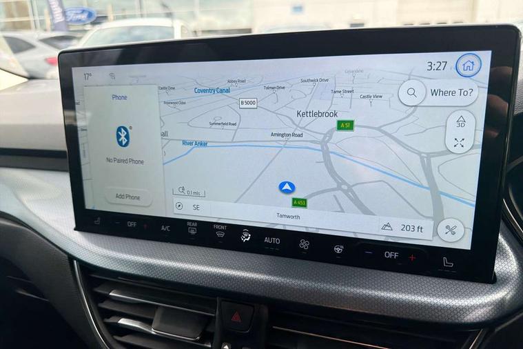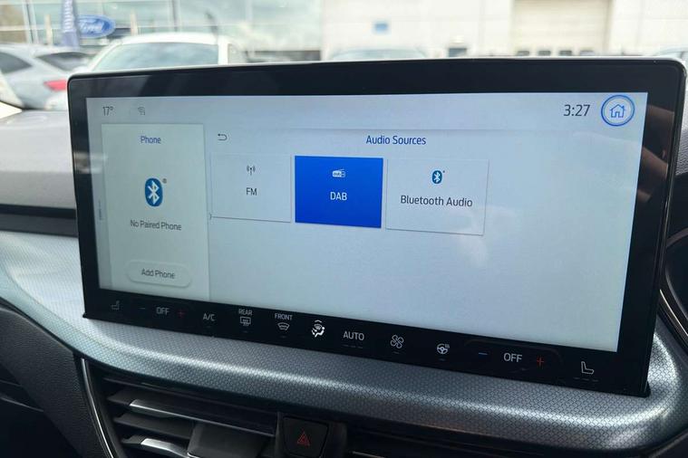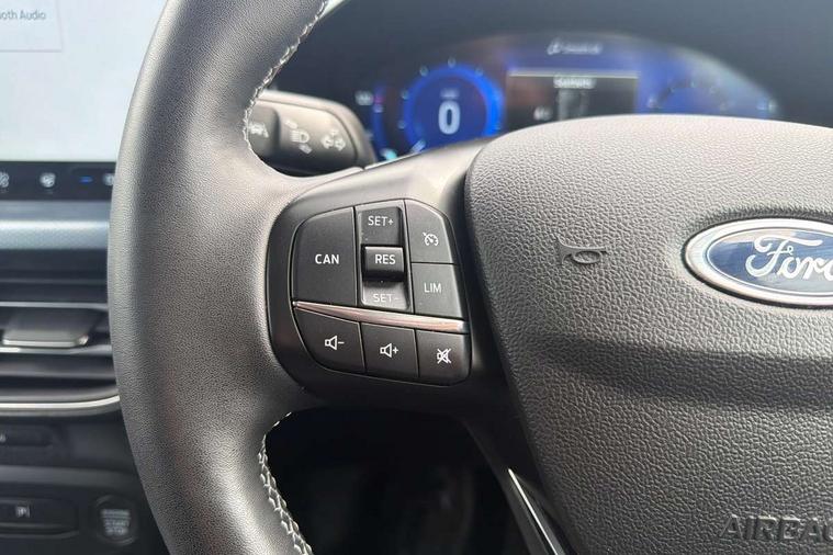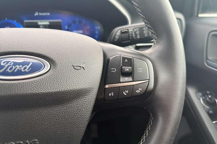 12.3" Digital instrument cluster, Bluetooth system, Digital clock, E-call, Easy fuel capless refuelling system, Eco mode, Ford SYNC 3 navigation with 8" TFT touchscreen, DAB radio and app link Android auto/Apple carplay, Intelligent speed assist, Lane keeping system - lane keeping alert and lane keeping aid, PAS, Selectable drive modes with slippery and trail mode, Trip computer, Raised ride height (30mm higher than standard), 2 USB ports, Aux input, Active front and rear bumper with unique upper and lower grille, Auto dimming rear view mirror, Auto headlamps (on/off), Automatic rain sensing wipers, Black painted roof and mirror caps, Body coloured bumpers, Body coloured door handles, Electrically operated and heated door mirrors with side indicators, Electrically operated front and rear windows with one touch opening and closing, Front variable intermittent wipers with electric wash, Heated rear window, LED daytime running lamp, Openable panorama roof, Power folding door mirrors with puddle lights, Quickclear heated windscreen, Rear privacy glass, Rear side wing doors, Tailgate wash/wipe, Third brake light, Twin exhaust pipes, Unique door and instrument panel inserts, Unique skid plates and side rocker mouldings, 3 seat bench in 2nd row, 3 spoke Sensico trimmed steering wheel with integrated audio controls, 6 way power adjustable driver seat, Driver's lumbar support, Dual zone electronic air temperature control, Front and rear floor mats with blue stitching, Front passenger seat manual height and lumbar adjust, Heated driver and front passenger seats, Heating for Sensico steering wheel, Height adjustable front headrests, Isofix child seat preparation, Leather gear knob, Reach + rake adjustable steering column, Rear centre headrest, Sensico premium upholstery, Single front passenger seat, Soft console knee pads with blue stitching, 3x3 point rear seatbelts, ABS+Electronic Brake force Distribution, Auto hold function, Driver airbag, Electronic parking brake, Electronic stability control, Front and rear seatbelt reminder, Front inertia reel height adjustable seatbelts with pre-tensioners, Front passenger airbag, Front side airbags, Hill start assist, Passenger airbag deactivate switch, Post collision braking, Pre collision assist with autonomous emergency braking and pedestrian/cyclist detection, Remote/power child rear door locks, Side curtain airbags, Three rear inertia reel lap/diagonal seatbelts, Tyre pressure monitoring system, Ford keyfree system with Keyless entry and keyless start/sleep mode key fob, MyKey system, Remote central locking & engine immobiliser, Thatcham category 1 alarm, 18" 5x2 spoke absolute black machined painted alloy wheels, Mini steel spare wheel,