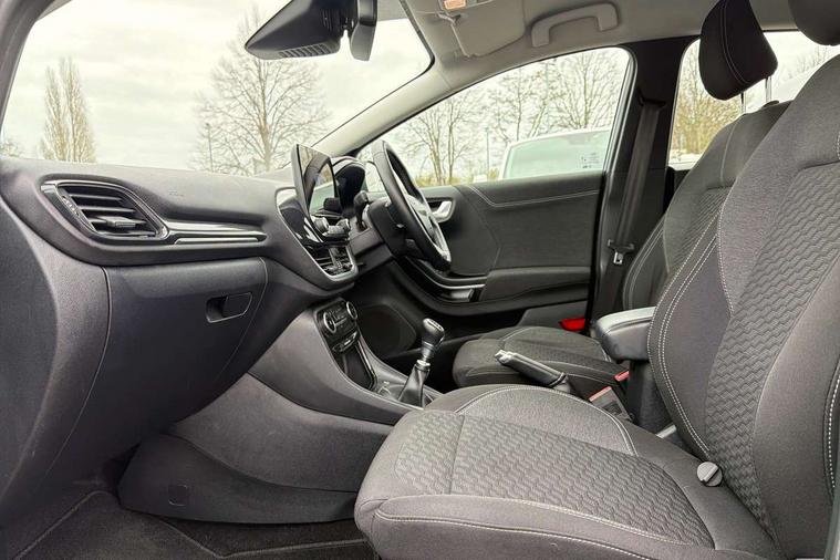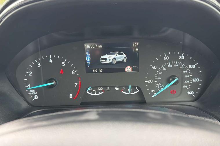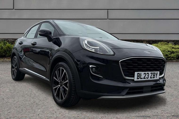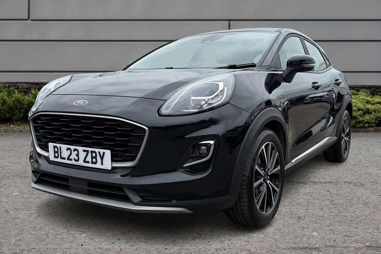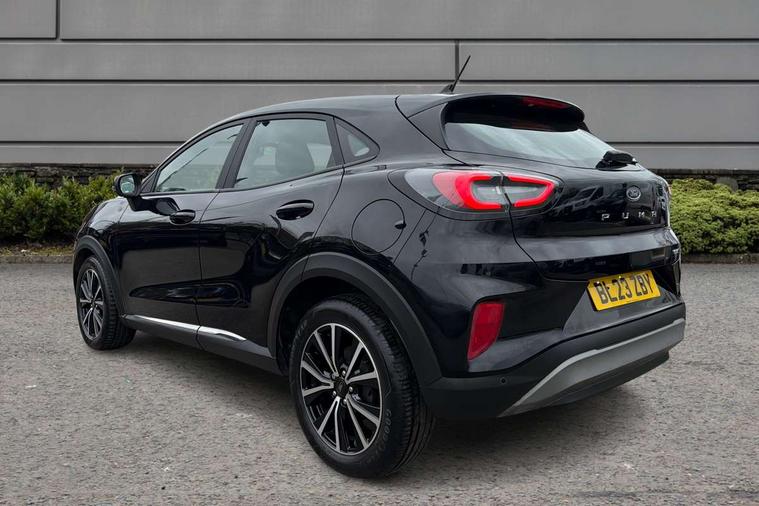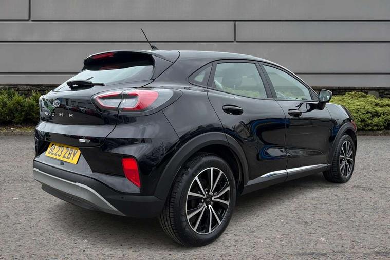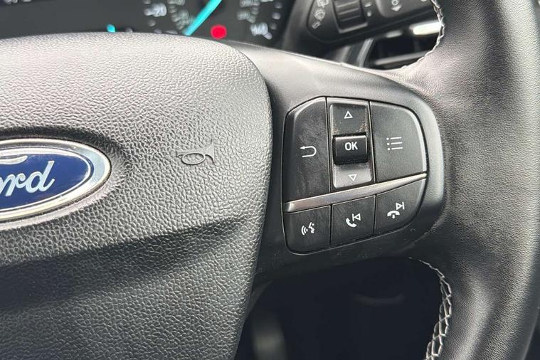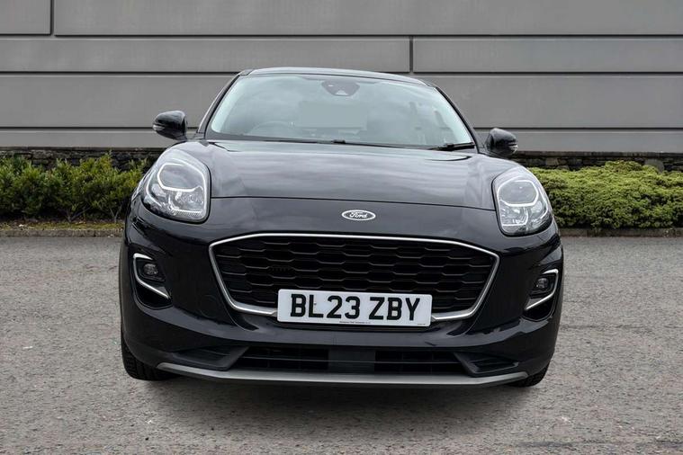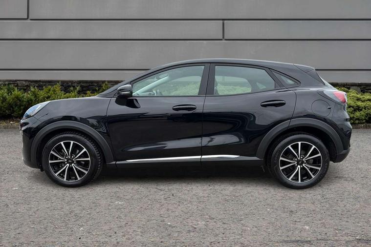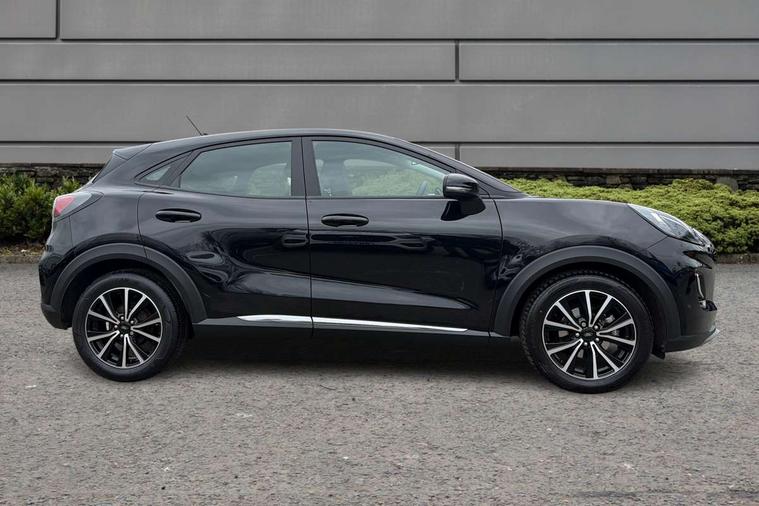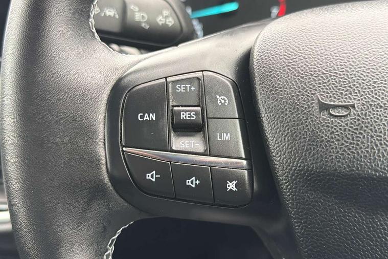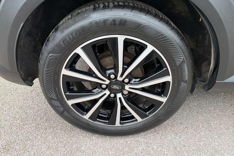 Driver impairment monitor, Emergency call service, Ford easy fuel, Lane keeping aid with lane departure warning, Power assist steering, Power start button, Rear parking sensor, Selectable drive modes(Normal, Eco, Sport, Slippery and Trail), Speed sign recognition, Standard suspension, Automatic headlights with auto high beam, Automatic rain sensing wipers, Body colour rear spoiler, LED rear lamps, Power foldable heated door mirrors with puddle lamps, Projector headlamps with LED day time running lights and front fog lamps, Quickclear heated windscreen, Rear side wing doors, Rear wiper, Third brake light, 3 seat bench in 2nd row, Centre console with armrest and stowage, Electronic automatic temperature control (EATC), Ford megabox extended bootspace, Front and rear head restraints, Front floor mats, Manual 2 way passenger seat adjustment, Manual 4 way driver seat adjust with lumbar adjustment, Sensico leather steering wheel/gear knob/handbrake, Single front passenger seat, Titanium cloth upholstery, Ford SYNC 3 navigation pack - Puma, 3 rear seatbelts, Child safety lock, Electronic stability control (ESC) and hill start assist, Pedestrian/cyclist detection & post-collision braking, Pre collision assist system, Tyre pressure monitoring system (TPMS), Thatcham alarm, 17" 10 spoke absolute black machined finish alloy wheel,