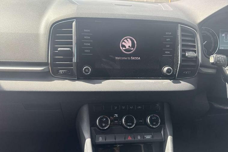 Chrome framed air vents, Storage on wheel cover, Alarm with interior monitoring, back up horn and tilt sensor with safe function, Electronic engine immobiliser, Remote central locking with 2 remote folding keys, DAB radio with Bluetooth, SD card slot, USB connection, Airbags - Front side, head, knee and curtain, Automatic door unlocking in case of crash, Automatic fuel cut off in case of crash, Driver airbag, Electronic parking brake with auto hold function, Emergency rear braking signal, ESC including ABS, MSR, ASR, EDS, HBA, DSR, RBS, MKB and traction control, Front assist radar scanning of the space in front of the car with automatic braking, Hill hold control, Passenger airbag with switch-off function, Pedestrian monitor, Seatbelt reminder signalisation and pretensioner for all seats, Three point seatbelts rear, Two tone horn, Tyre pressure display, Tyre pressure monitor, Acoustic glass, Aero front windscreen wipers with intermittent function, Automatic headlight control system, Body colour door mirrors and handles, Body coloured bumpers, Electrically adjustable heated folding and auto dimming door mirrors with boarding spots, Heated rear windscreen, LED rear lights with high functionality, Light assistant (coming/leaving home/tunnel light), Privacy glass, Safety reflectors on front doors, Third brake light, 1.5 litre bottle holders in driver and front passenger door panels, 12V socket in boot, 12v socket in front centre armrest with storage compartment and rear air vents, 2 Folding hooks and nets in boot, 2 Front readings lights for driver and passenger, 3 rear height adjustable headrests, 4 foldable roof handles with rear coat hooks, 4 lashing points on luggage floor, Backrest release, Cargo elements in boot, Chrome inner door handles, Driver and passenger seats height adjust, Dual zone climate control, Folding tables on the front seat backrests, Front seat and rear pockets, Height adjustable front three point seats belts with tensioners, Height/reach adjust steering wheel, Ice scraper, Illuminated and cooled glovebox, Illuminated luggage compartment, Isofix child seat preparation outer rear, Manual lumbar support for front seats, Net programme in boot, Pen holder, Pollen filter, Rear boot cover, Rear reading lights, Rear seats fixed folding and divided 60:40, Removable LED torch in the boot, Safety vest holder, Storage box in upper central dashboard closed, Storage net on centre console passenger side, Sunglasses storage compartment, Sunvisors with illuminated vanity mirrors, Umbrella under passenger seat, Driver alert system, Driver fatigue sensor, Driver profile selection, Electro-mechanical PAS, Outside temperature gauge, Service interval indicator, Start/stop system with regenerative braking,