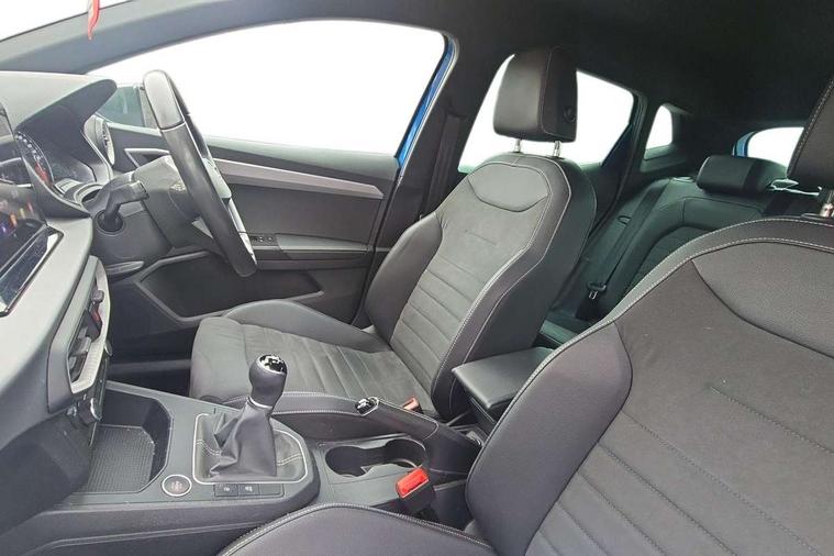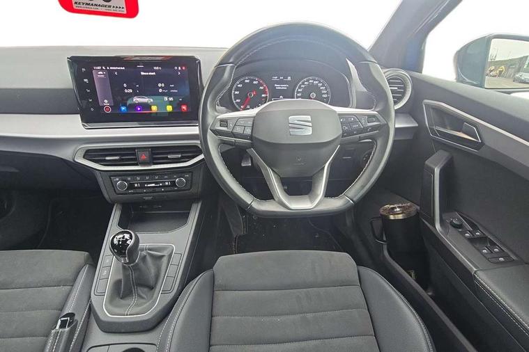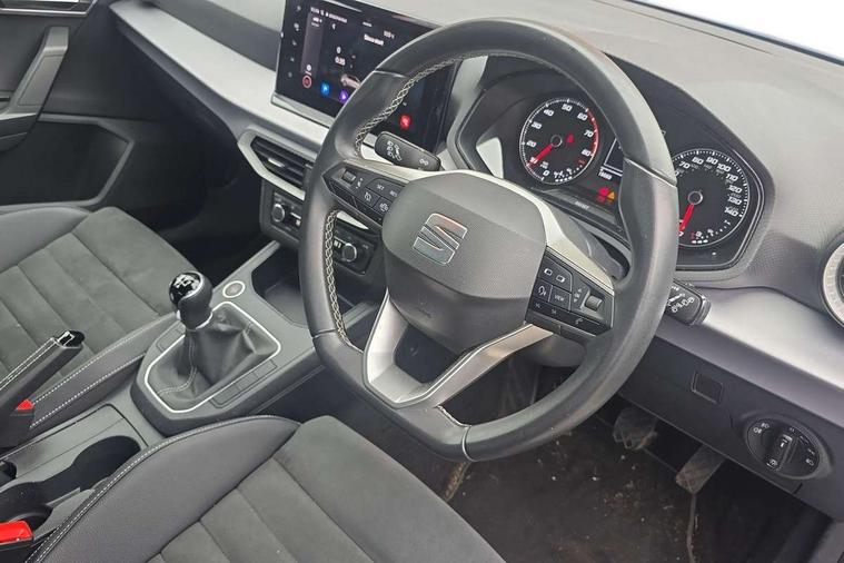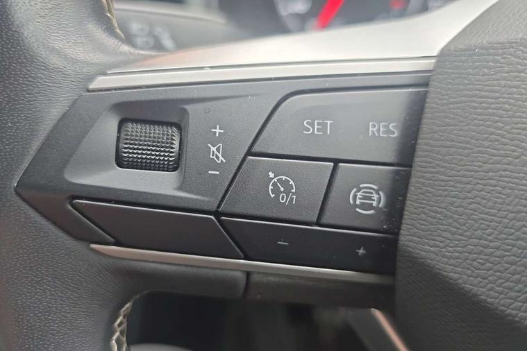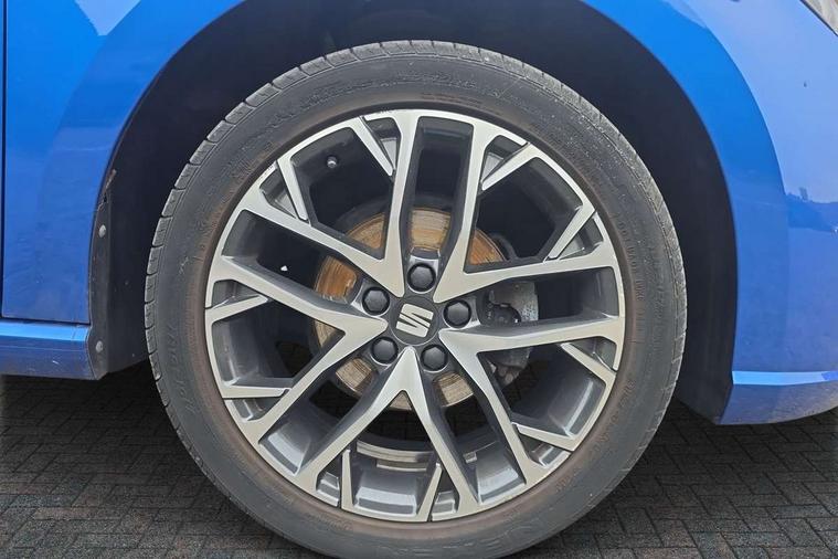 'Lights On' Reminder warning buzzer, 8" Digital cockpit, 9.2" touchscreen navigation system with type C USB socket, Voice control and DAB/AM/FM radio, Auto start and stop system, Bluetooth audio streaming with handsfree system, Digital clock, E-call, Full link smartphone integration with mirror link, wireless apple carplay, Google android auto + USB Type C cable for apple and android devices, Lane assist, Low fuel warning light, Outside temperature gauge, Power Steering, Rear parking sensor, Seat connect with safety, service, remote and online, SEAT logo boot release, Speed limiter, Trip computer, Comfort suspension, Auxiliary input socket, Radio/MP3 player, SD card slot, Steering wheel mounted controls, Anti theft roof antenna, Atom grey door mirrors, Auto dimming rear view mirror, Automatic rain sensing wipers, Body colour bumpers, Body colour door handles, Chrome window surround and upper grille surround, Dark tinted rear windows, Electric adjustable/heated/folding door mirrors, Electric front windows, Electric headlight adjustment, Electric rear windows, Front/rear fog lights, FULL LED automatic headlights with dynamic headlight range control, coming and leaving home, LED daytime running lights, LED tail lights, Rear side wing doors, Rear wiper, Third brake light, 3 seat bench in 2nd row, 60/40 split folding rear seat, Ambient interior lighting, Chrome detailing and black headlining, Comfort seats, Dual zone climate control with combination filter, Front centre armrest, Front courtesy lights, Front cupholders x 2, Front reading lights, Gear shift indicator, Glovebox, Height adjustable front and rear headrests (five), Height adjustable front seats, Height/reach adjust steering wheel, Illuminated air vent surrounds, Illuminated boot, Instrument lighting with brightness control, Isofix, Leather multifunction flat bottomed sports steering wheel, Microsuede cloth upholstery, Passenger sunvisor, Single front passenger seat, Storage pockets on back of front seats, Sunvisors with mirror and driver side card holder, 3 point seatbelts on all 3 rear seats, ABS, Active front headrests, Child locks on rear doors, Electronic stability control, Energy recovery system, Front assist forward collision warning and autonomous emergency braking, Front driver and passenger side airbags with curtain airbag and front passenger airbag deactivation, Hill hold control, Multi-Collision braking, Seat belt reminder for front and rear seats, Tiredness recognition system, Tyre pressure monitoring system, Electronic engine immobiliser, KESSY Keyless entry and go, Locking wheel bolts, Perimeter alarm and interior monitoring with backup horn and tow away protection, Remote central locking + deadlocks, 17" Dynamic machined alloy wheels in Nuclear grey,