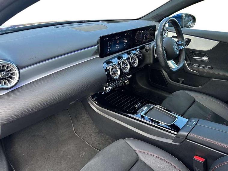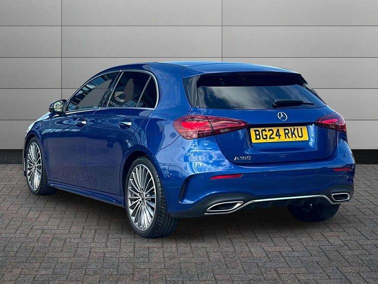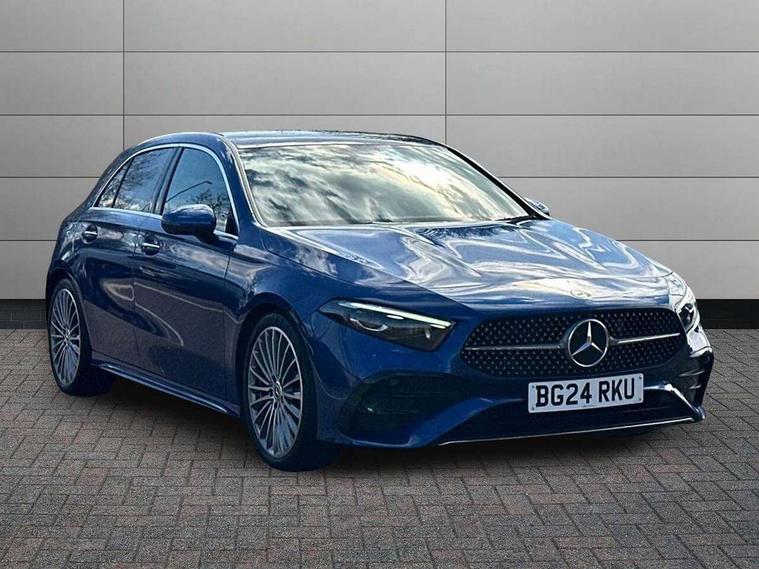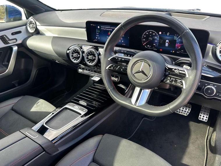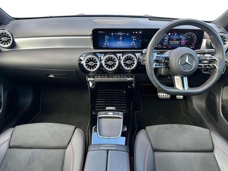 10.25 inch touchscreen central media display, 10.25" Digital instrument cluster display screen, Attention assist, Brake pad wear indicator warning light, Car wash mode, Direct steering, Direction indicators with lane change function, Dual bluetooth interfaces, DYNAMIC SELECT with a choice of driving modes (ECO, Comfort, Sport and Individual), Easy pack tailgate hands-free access, ECO start/stop function, Engine start/stop button, Fluid level warning indicator for fuel, oil, coolant and washer fluid, Fluorescent jacket for driver, Hard-disk navigation, Head up Display, Hey Mercedes Voice activation, Lamp failure indicator, MBUX augmented reality for navigation, MBUX Interior assistant, Mercedes me connect including emergency call system, accident recovery, breakdown and maintenance management, Mercedes me remote services, Outside temperature gauge, Owners manual in English, Pre-installation of private car share, Preinstallation for Mercedes Benz link, Remote boot closing, Service indicator (ASSYST), Smartphone integration with Apple CarPlay and Android auto, Speed sensitive power steering, Tailgate, Traffic sign assist, Trip computer in multifunction display with current consumption indicator, Wireless charging, Lowered comfort suspension, DAB Digital radio, MBUX multimedia system, Mercedes Benz advanced sound system (225 W) with 10 speakers, 1 central speaker, speakers on doors, a tweeter on door, one sub woofer + boost amplifier, 4 Electric Front and Rear windows, Adaptive brake lights, AMG body styling - AMG front apron with front splitter and AMG rear apron and visible exhaust tailpipe trim elements, Body colour bumpers, Body colour door handles with chrome inserts, Body colour side skirt, Body coloured door mirrors, Chrome beltline strips, Diamond radiator grille with pins in fine star pattern, Electric adjustable and heated door mirrors with integrated LED side indicators, Exhaust system with 2 visible tailpipe trim elements and rear apron, Headlamp assist automatic headlamp activation, Heat insulating dark tinted rear and rear side windows, Heated glass rear windscreen + timer control, LED daytime running lights, LED High level third brake light, LED tail lamp, Multibeam LED headlamps with adaptive highbeam assist and cornering function, Panoramic sliding sunroof, Privacy glass, Radio aerial, Rain sensing windscreen wipers with two sensitivity settings, Rear fog lights, Rear side wing doors, Rear windscreen wiper, Surround lighting with logo projection, Window line trim strip in chrome, 3 seat bench in 2nd row, 3 Spoke flat bottom leather multi function steering wheel with perforated leather in grip area, 40:20:40 split folding rear seats, Air conditioning - Two zone thermotronic luxury automatic climate control with display, AMG floor mats, Automatic child seat recognition sensor, Black air vents with surround in silver chrome, Black roof lining, Brushed stainless steel sports pedals with rubber studs, Electrically adjustable front memory seats including lumbar support and backrest inclination, Front centre armrest with stowage, Front seat backs luggage nets, Galvanished gear shift paddles on steering wheel, Heated front seats, Height/reach adjustable steering column, Illuminated Mercedes Benz lettering front door sills with changeable cover, Interior lighting - 64 colour Ambient lighting, Interior mirror with reading lamps in black and frameless, Rear armrest with 2 cupholders, Seat occupancy sensor for front passenger seat, Single front passenger seat, Sports seats with integrated headrests, Stowage compartment in centre console with retractable cover, Sunvisors with illuminated vanity mirrors, Twin front cupholders, Light and sight pack - A Class, Mirror package - A Class, Parking pack with 360 degree camera - A Class, Seat comfort pack - A Class, USB pack plus - A Class, 3 rear 3 point seatbelts, ABS with Brake Assist, Active bonnet, Adaptive brake assist with hold function and hill start assist, Bonnet with power domes, Childproof locks manually operated for rear doors and electrically operated for rear power windows, Crash responsive emergency lighting, Driver and passenger head and side airbags, Drivers knee airbag, Dual stage driver/passenger airbags, Electronic parking brake, ESP curve dynamic assist, ESP with ASR, Exit warning, Front and rear seatbelt reminder, ISOFIX and top tether child seat fixing points in two outer rear seats, Tyre pressure monitoring system, Warning triangle and first aid kit, Window airbags, Alarm system/interior protection/immobiliser, Guard 360 degree vehicle protection, Keyless entry lock/unlock, Keyless Go, Remote central locking and crash sensor with emergency opening function, Black seatbelts, Light longitudinal grain aluminium trim, 19" AMG multi-spoke light alloy wheels, aerodynamically optimised, painted in titanium grey with high sheen finish, Summer tyres, Tirefit sealant kit,