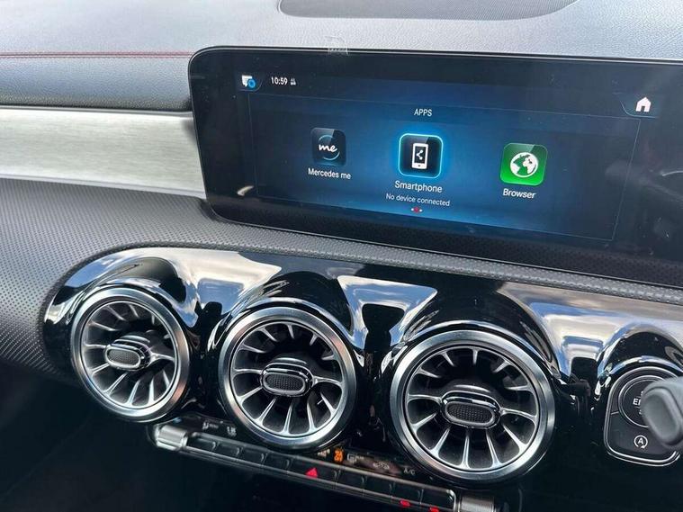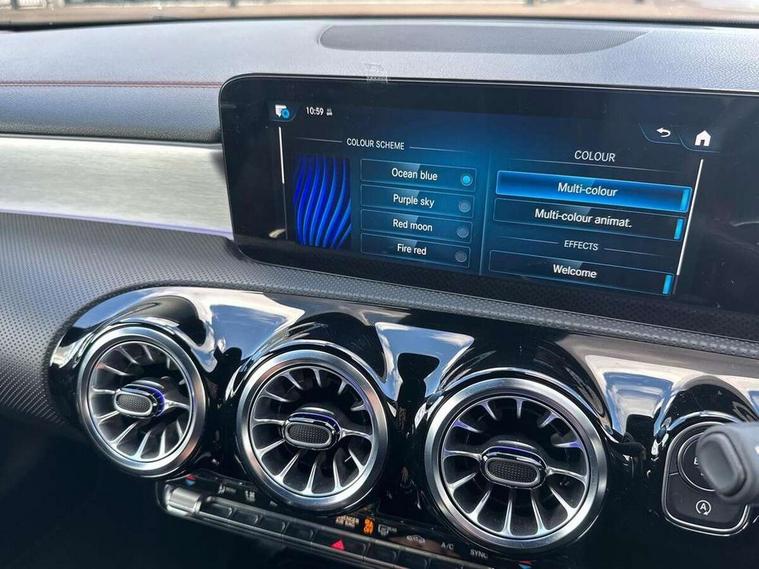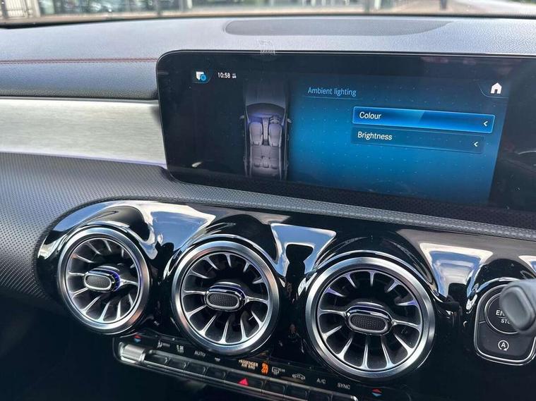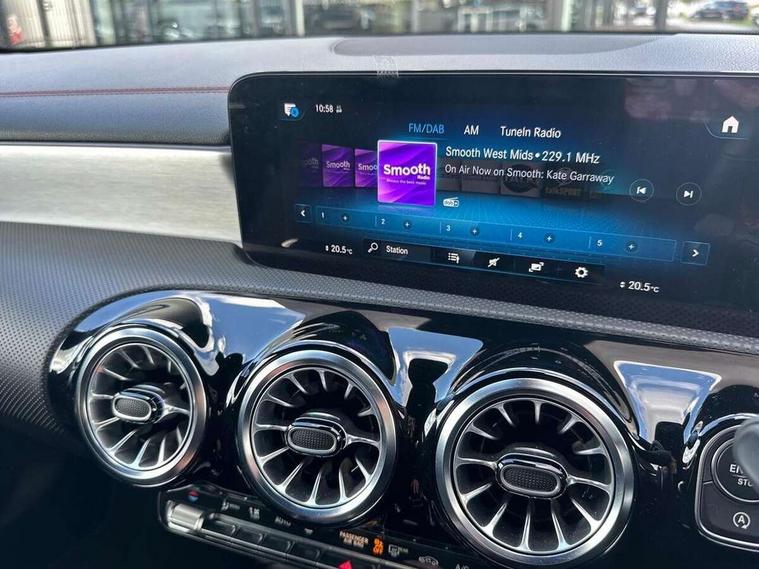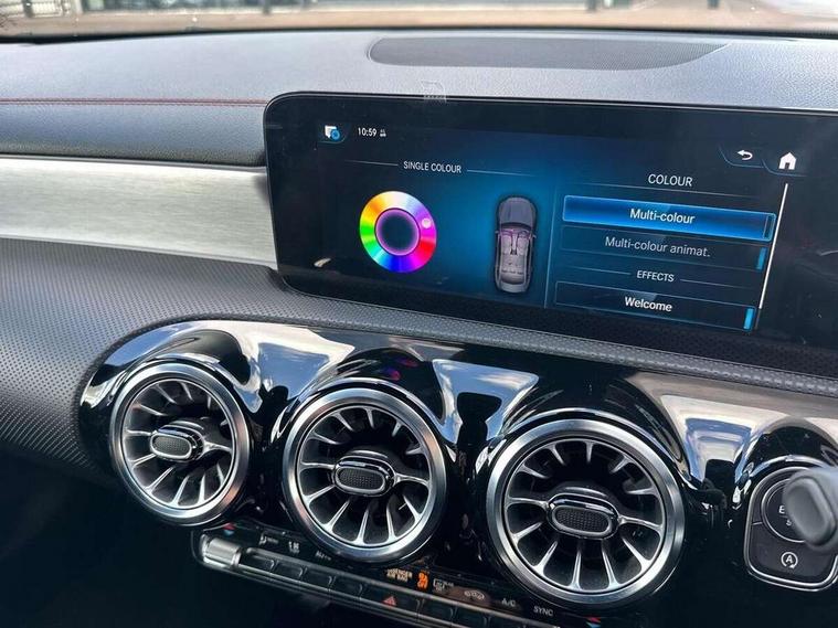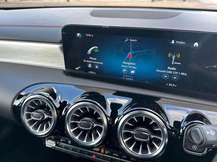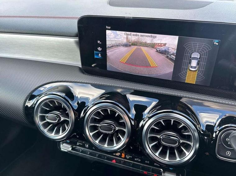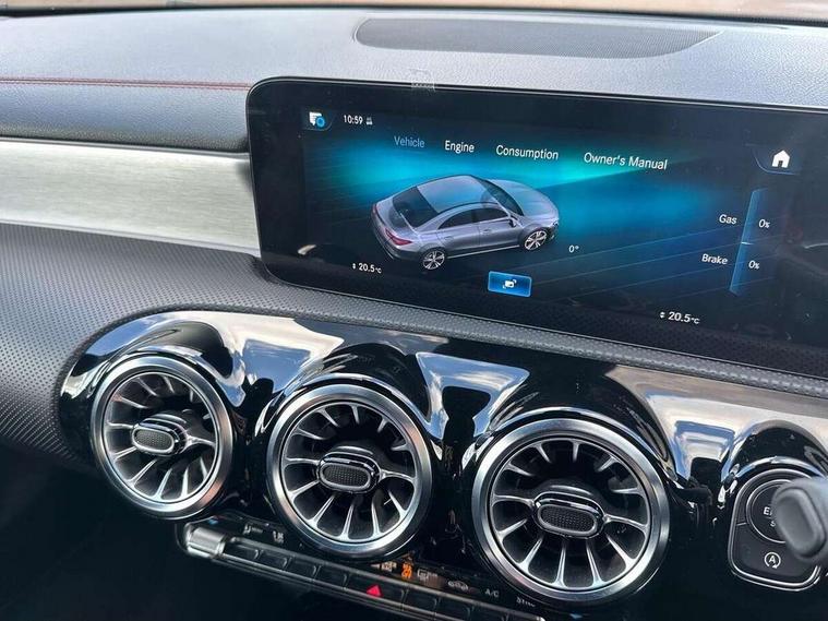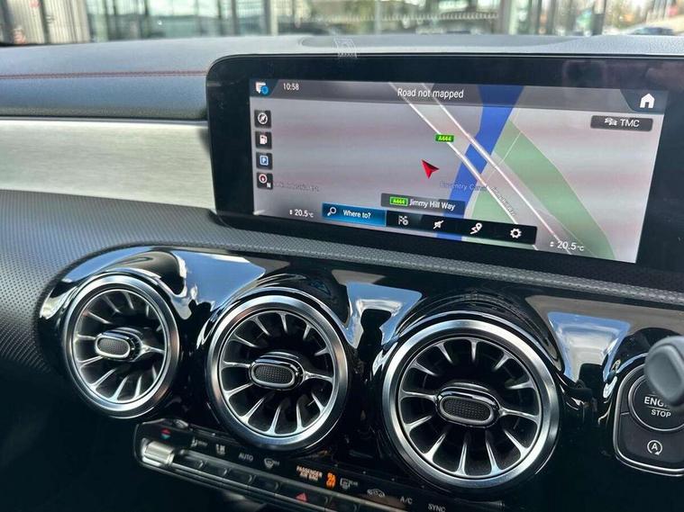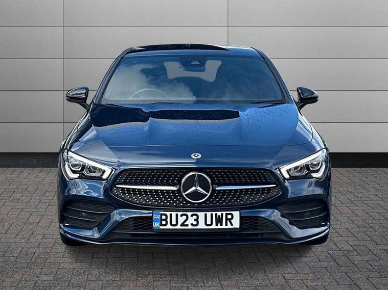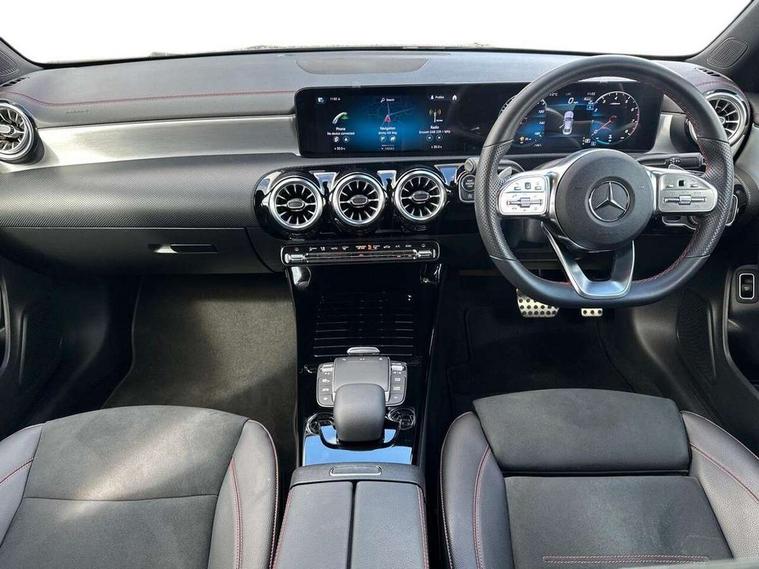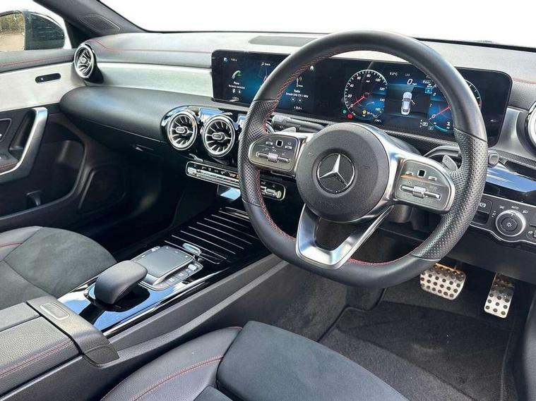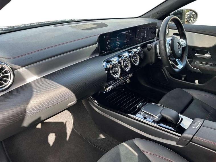 10.25 inch Instrument display with digital cockpit, 10.25 inch touchscreen central media display, Active lane keeping assist, Attention assist - Monitors steering behaviour and long journey fatigue, Bluetooth connection, Car wash mode, Cruise control with limiter, Direct steer system with speed sensitive power steering, DYNAMIC SELECT with a choice of driving modes (ECO, Comfort, Sport and Individual), ECO start/stop function, Fluid level warning indicator for fuel, oil, coolant and washer fluid, Hard-disk navigation, Hey Mercedes Voice activation, Lamp failure indicator, Mercedes me connect including emergency call system, accident recovery, breakdown and maintenance management, Mercedes me remote services, Outside temperature gauge, Owners manual and service booklet in English, Pre-installation of private car share, Preinstallation for Mercedes Benz link, Radio aerial integrated into front and rear windshields, Service indicator (ASSYST), Smartphone integration with Apple CarPlay and Android auto, Speed limit assist, Trip computer in multifunction display with current consumption indicator, Lowered comfort suspension, Rear axle multi-link, DAB digital radio tuner, MBUX multimedia system, Mercedes Benz sound system (100 W) with 6 speakers, USB (type C) ports (2) in stowage compartment and 1 in front of centre console, Adaptive brake lights, AMG body styling with AMG front apron and rear apron and visible exhaust tailpipe in chrome trim elements, AMG bodystyling side skirts, Body colour bumpers, Body colour door handles, Chrome beltline strips, Diamond radiator grille pins in chrome, Electric windows, Electrically adjustable and heated door mirrors with integrated LED indicators, Exhaust system with 2 Visible tailpipe trim elements and rear apron with trim in chrome, Headlamp assist automatic headlamp activation, Heated glass rear windscreen + timer control, High level LED third brake light, Interior mirror with black reading lamps and frameless, LED high performance headlamps with integrated LED daytime running lights, LED tail lamp, Privacy glass with dark tinting on rear side windows and rear window, Rain sensing windscreen wipers with two sensitivity settings, Rear boot, Rear fog lamp, Rear side wing doors, Variable front intermittent wipers, Window line trim strip in chrome, 3 seat bench in 2nd row, 3 spoke flattened bottom nappa leather multifunction steering wheel with perforated leather in grip area, 40:20:40 split folding rear seat backrests, Air conditioning - Two zone thermotronic luxury automatic climate control with display, Air vents with surround in silver chrome, Artico man-made leather upholstery, Automatic child seat recognition sensor, Black roof lining, Brushed stainless steel sports pedals with rubber studs, Floor mats with stitched AMG lettering, Front centre armrest with stowage, Front door sills with Mercedes Benz lettering, Galvanished gear shift paddles on steering wheel, Heated front seats, Illuminated glove compartment stowage, Interior lighting - 64 colour Ambient lighting, Luggage net on driver/front passenger seat backrest, Manually adjustable front seats, Manually height and reach adjustable steering column, Rear head restraints, Single front passenger seat, Sport seats with fixed head restraints, Stowage compartment in centre console with retractable cover, Sunvisors with illuminated vanity mirrors, Touchpad on center console, Twin front cupholders, Two outer rear seat isofix and top tether child seat fixing points, Light and sight pack - CLA, Mirror pack - CLA, Night package - CLA, Parking package - CLA, Seat comfort pack - CLA, Active bonnet pedestrain safety measure which detects an impact and raises bonnet by 65mm, Active brake assist includes forward collision warning system with autonomous braking, Adaptive brake assist with hold function and hill start assist, Anti lock braking system (ABS) with brake assist, Black seat belts, Bonnet with power domes, Brake pad wear warning indicator, Childproof locks manually operated for rear doors and electrically operated for rear power windows, Crash responsive emergency lighting, Driver and front passenger head and sidebags, Driver and front passenger windowbags, Drivers knee airbag, Dual stage driver and front passenger airbags, Electric parking brake, Electronic stability programme with acceleration skid control, ESP curve dynamic assist, Front and rear seatbelt reminder, Front passenger seat occupancy sensor, Three point rear seat belts, Tyre pressure monitoring system, Warning triangle and first aid kit, Guard 360 degree guard vehicle protection system with immobiliser and interior protection, Keyless Go starting function, Remote central locking and crash sensor with emergency opening function, Light aluminium with longitudinal grain interior trim, 18" AMG 5 twin spoke light alloy wheels painted in black with high sheen finish, Summer tyres, Tirefit tyre sealant kit,