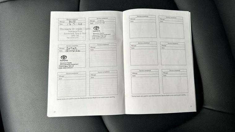 12.3" Combimeter, 360 degree panoramic view monitor, Analog tachometer, Apple car play and Android auto, Blind spot monitoring with rear cross traffic alert, Bluetooth system, Cyclist Detection, Drive mode selector, eCall emergency call system, ECO-driving indicator, Electric power steering, EV audible alert, Front parking sensors, Full range intelligent adaptive cruise control, Hybrid system indicator, Lane departure warning system, Lane trace assist, Lights on warning, Low screen washer fluid warning, Memory on adjustable speed limiter, MirrorLink, My T Connected services, Night Time Pedestrian Detection, Power boot opening and closing, Push button start, Rear parking camera, Rear parking sensors, Remote boot door release in cabin, Remote boot door release in key, Road sign assist - RSA, Toyota safety sense 2.5, Toyota smart connect navigation, Traffic sign recognition, Trip computer, Voice control system, Wireless smartphone integration, Vehicle Stability Control (VSC), 6 speakers, 8" Multimedia display touch screen, Auxiliary socket for external MP3 player, DAB audio, Toyota touch media system, USB connection, Adaptive automatic high beam, Automatic headlamp levelling, Automatic headlights, Automatic wipers, Automatically retractable door mirrors, Black roof rails, Body colour door handles, Body colour door mirrors, Body colour rear spoiler, Body colour roof, Body coloured bumpers, Body coloured Shark-fin antenna, Door mirror puddle lights, Dual exhaust pipes, Electric adjustable door mirrors, Electrochromatic rear view mirror, Emergency brake-light signal (EBS), Follow me home headlights, Front fog lights, Front wiper de-icer, Front wipers with variable intermittent facility, Headlight cleaners, Heated door mirrors, LED daytime running lights, LED High mounted stop lamp, LED rear combination lights, Meshed shape upper front grille, Power front windows, Power rear windows, Privacy glass, Projector LED headlights, Rear screen wiper - intermittent, Rear side wing doors, Rear windscreen defogger, Rear wing door, Silver front under-run, Silver rear under-run, Trailer sway control, Turning signal integrated indicators in door mirrors, 12 volt front socket, 3 rear headrests, 3 seat bench in 2nd row, 60/40 split fold rear seat back, Boot light, Clean air filter, Driver and front passenger personal light, Driver and front passenger Whiplash Injury Lessening seats, Driver and passenger sunvisors with illuminated vanity mirrors, Driver seat memory function, Dual sided deck board in boot, Dual zone automatic air conditioning, Electric front passenger seat, Floor mats, Folding rear centre armrest, Front and rear bottle holders, Front centre armrest, Front footwell lights, Front headrests, Front passenger seat, Front seat and rear pockets, Front/rear roof mounted assist grips, Grey roof lining, Heated driver and front passenger seats, Heated steering wheel, Illuminated entry system, Isofix child seat preparation, Leather gear shift with chrome surround, Leather upholstery, Light blue ambient lighting on front cupholders and open tray, Luggage area tonneau cover, Manual telescopic and tilt 3-spoke leather steering wheel with Chrome insert, Multimedia switches on steering wheel, Pollen filter, Power height-adjustable sliding reclining and lumbar support for driver seat, Rear coat hooks, Rear door armrests, Rear passenger air vents, Rear view display in display audio screen with dynamic guide lines, Reclining rear seats, Satin chrome interior door handles, Sunglasses holder, Telephone and voice recognition switches on steering wheel, 3x3 point rear seatbelts, ABS/EBD, Acoustic vehicle alerting system, Adjustable front driver and passenger seat belt extender, Brake assist function, Brake hold function, Child proof door locks, Collision mitigation braking system, Driver/Front Passenger airbags, Driver/front passenger side airbags, Drivers knee airbag, Electronic parking brake, Electronic Stability Programme (ESP), Front and rear curtain airbags, Front and rear seatbelt reminder, Front passenger airbag detector, Hill start assist, Passenger airbag cut-off device, Pedestrian detection, Pre collision system, Seatbelt pretensioners with load limiters, Traction control, Tyre pressure warning, Glass-breaking alarm sensors, Immobiliser, Intrusion alarm, Light - on and Key in reminder, Motion sensor alarm, Remote central locking, Smart entry + Smart start, Speed sensitive auto door locking, Tilt detection sensors, Piano black centre console with silver insert, Soft-touch black lower dashboard, Soft-touch black upper dashboard with silver insert, 19" 10 spoke silver alloy wheels, Full size spare wheel,
