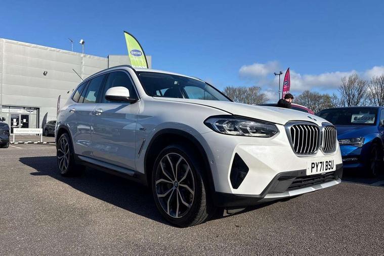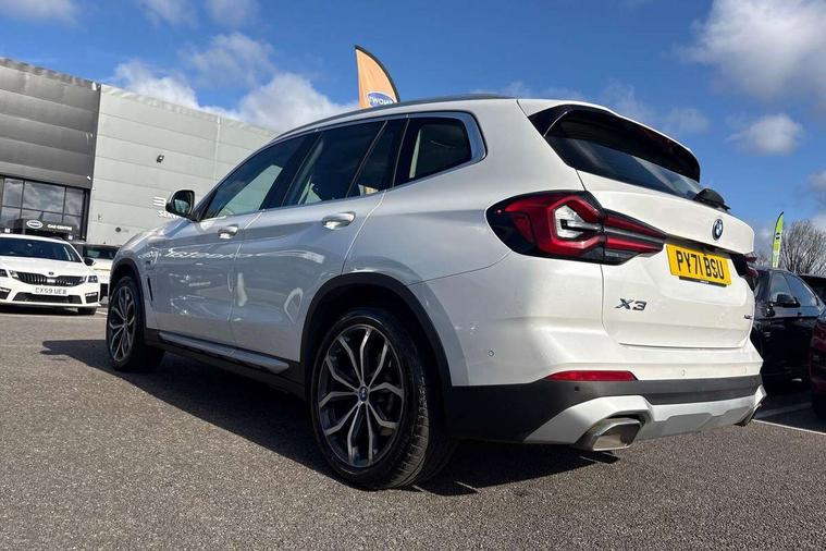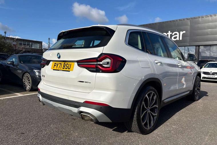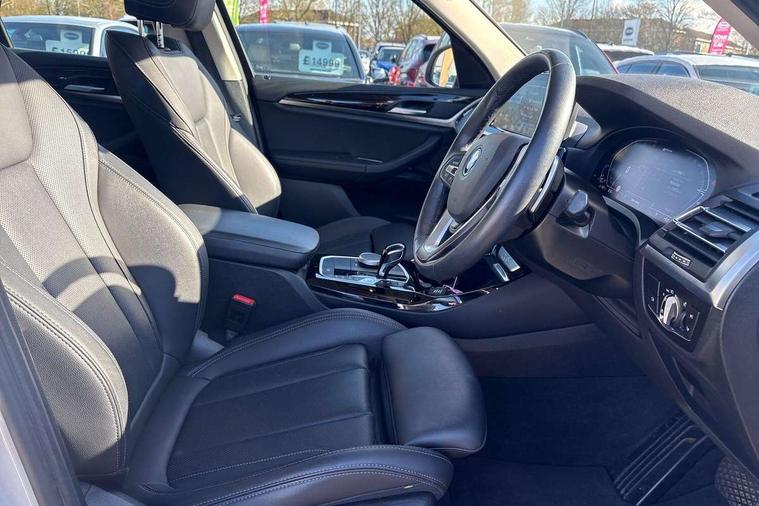 Active Guard, Attentiveness assist, BMW Live Cockpit Professional nav system including 12.3" instrument display + 12.3 high resolution control display, BMW Online services, BMW Teleservices, Brake pad wear indicator in front and rear, Check Control warning system for monitoring of lights and door/luggage compartment open warning, Condition based service - BMW service history, electronic service booklet, integrated owner's handbook, Connected drive services, Cruise control with brake function + speed limiter, Electric boot lid, Front/rear Parking distance control, iDrive Controller with 8 favourite buttons, Instrument cluster with speedometer with mph readout, tachometer, fuel gauge and oil temperature gauge, Lights on warning by audio warning signal when ignition is switched off, Oil sensor for level and grade, warning by check control system, On board computer - average speed+fuel consumption, service interval, clock/date, odometer/trip meter, outside temperature display and ice warning, Optimum shift indicator, Personal Profile - automatic lock when driving away selectable, Stop/start system, Variable sports power steering, Charging cable - Mode 2, Drive performance control with ECO PRO comfort + sport mode, eDrive exterior sound, Incorrect fuelling protection, Multi-link rear suspension, Performance Control, Sport automatic transmission with gearshift paddles, BMW professional radio/CD/MP3, DAB tuner, Acoustic glazing, Aluminium exterior trim, Automatic windscreen wipers and automatic headlight, Black finish on B pillars, Body colour door handles, Body colour electric adjust heated aspherical door mirrors, Body colour roof mouldings, Body coloured bumpers, Direction indicator, side repeaters, integrated in exterior mirrors, Dynamic brake lights, Exhaust tailpipes - dual, round, split left and right with chrome finisher, Fingertip control / anti-trap function on electric window, Folding wing mirrors with auto dimming, Follow me home headlights, Front and rear bumper system with replaceable deformation elements, Front and rear electric windows, Glacier silver metallic matt in side sills, Gloss chrome tailpipes finishers, Green tinted heat insulating glass, Heated windscreen washer jets, High beam assistant, High level 3rd brake light incorporating LED Technology, Interior rear view electrochromatic mirror with automatic anti dazzle function, LED tail lights, Lightweight engineering, Matt aluminium roof rails, Model designation, Rear side wing doors, Rear wing door, Rear wiper, Shark fin antenna, Visible VIN plate, Welcome lighting, Windscreen wipers with adjustable interval, xLine exterior styling with underbody protection, 12V power socket in front centre console, 3 rear headrests, 3 spoke sports leather multi-function steering wheel, 3 zone automatic air conditioning, 4 lashing points to secure luggage, 40:20:40 split folding rear seat with loading system, 5 seats, Ambient lighting, Automatic interior light when door is opened/ignition switched off or via remote key, Foldable storage floor with compartment, Four grab handles integrated in roof lining, Front and rear bottle holders integrated into door trim storage compartments, Front and rear side armrests integrated into door trim, Front centre armrest with storage compartment, Front door sill finishers with BMW X-line designation, Front footwell lights, Front head restraints, Front sports seats, Front/rear courtesy lights with soft on/off dimming, Front/rear reading lights, Heated front seats, Isofix rear child seat preparation, Leather gear knob, Luggage area underfloor compartment, Luggage compartment lighting, Parcel shelf removeable and storable under boot floor, Reach and rake adjustable steering column, Rear centre armrest with 2 cupholders, Removable / retractable luggage cover, Seat backrest width adjustment, Sensatec perforated upholstery, Slope adjustable rear seats, Storage compartment in rear centre console and front/rear door trims, Sun visors with vanity mirrors and ticket pocket, Toolkit located in luggage compartment, Two front cupholders with removable oddments tray/lid, Connected pro pack - X3, Driving assistant pack - X3, ADB - Automatic Differential Brake, Anti-lock braking system (ABS) with brake assist, Automatic Stability Control (ASC), Battery safety cut-off, BMW emergency call, Brake drying, Brake energy regeneration, Braking pre-tensioning, Child locks on rear doors, Cornering brake control (CBC), Crash Sensor - activation of central locking release, hazard warning light and interior lighting, Deactivation of fuel pump in the event of a crash, Driver and front passenger front and side airbags with passenger deactivation and ITS front and rear head airbags, DSC+, Dynamic brake control, Dynamic Traction Control - DTC, Electromechanical parking brake, Hill descent control, Hill start assist, Seatbelt security check for front seats, Side impact protection, Three point seatbelts to all seats with front and outer rear pyrotechnic belt tensioners and seat belt force limiters, Two tone horn, Tyre pressure sensor, Ventilated front and rear disc brakes, Warning triangle and first aid kit, Central locking switch for all doors, fuel filler cap and luggage compartment, Electronic engine immobiliser, Locking wheel nuts, Remote control including two integrated key - one button for open/close all lockable content, windows and separate button for open luggage compartment, Remote control Thatcham category 1 alarm, Start/stop button with Comfort Go keyless engine start and auto Start/stop deactivation button, Low rolling resistance tyres, Tyre repair kit,