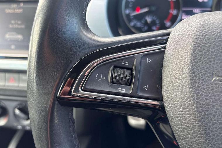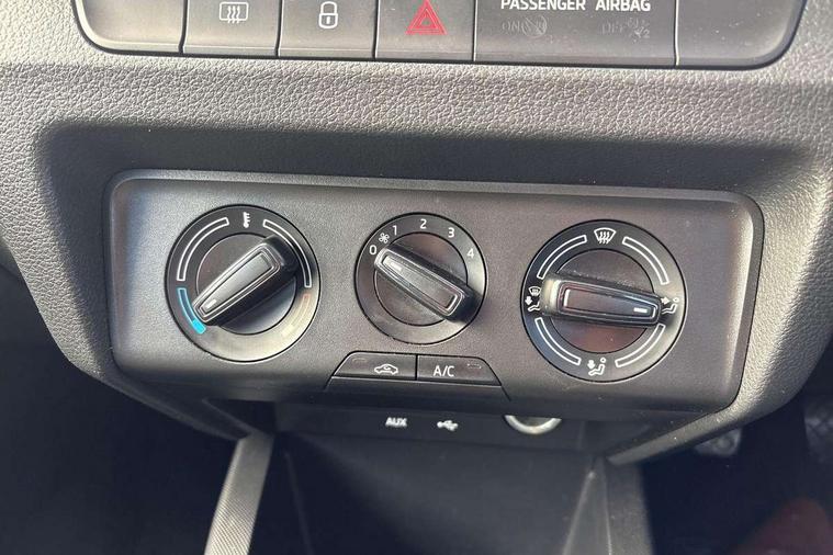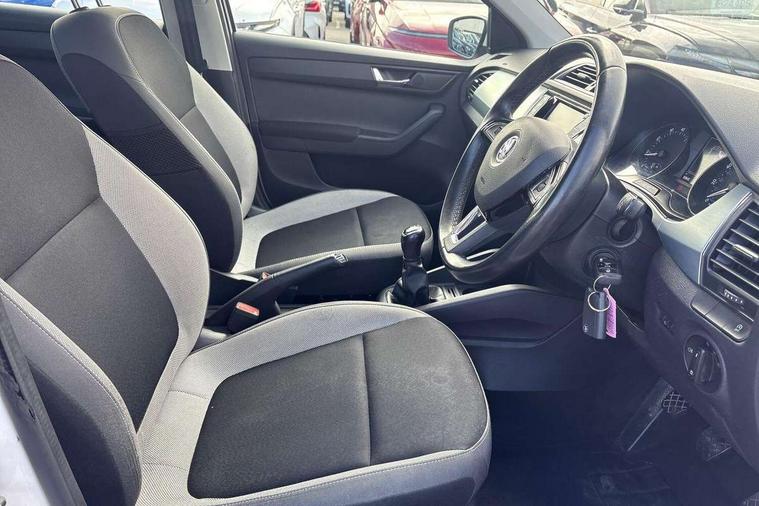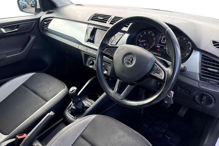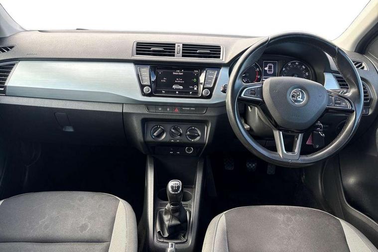 Bluetooth system, Exterior temperature gauge, Front assistant collision mitigation, Maxi dot trip computer, PAS, Service interval indicator, SmartLink, Auxiliary socket for external MP3 player, Bolero radio with telephone control, Mirror Link, USB and SD card, DAB Digital radio, Body colour bumpers, Body colour door handles, Body colour door mirrors, Chrome grille surround, Electric front windows, Electrically adjustable and heated door mirrors, Heated rear window, Height adjustable headlamps, Intermittent rear wash/wipe, Tinted rear windows, Tinted windscreen, 1.5L bottle holder in front door panels, 2 height adjustable rear headrests, 60/40 split folding rear seat, Boot stowage box, Cargo area storage tray, Driver + passenger vanity mirrors, Folding grab handles, Front reading lights, Height adjustable driver's seat, Height adjustable front headrests, Height adjustable passenger seat, Height/reach adjust steering wheel, Interior light with delay, Leather gearshift, Leather handbrake, Lower glovebox cover, Luggage load hooks, Parcel shelf, Pollen filter, Rear courtesy light, Rear storage trays, Storage compartment under front seats, Ticket holder, Two rear outer seat isofix location points, Arkamys surround sound pack - Fabia, Chrome Pack - Fabia, 3x3 point rear seatbelts, ABS, Curtain airbags, Driver and passenger airbags, Driver and passenger side airbags, EDS, ESC with ASR, Front seatbelt pretensioners, Hydraulic Brake Assist (HBA), Passenger airbag deactivate switch, Seatbelt warning, Tyre pressure monitor, Alarm with interior monitoring, Immobiliser, Locking wheel bolts, Remote central locking,