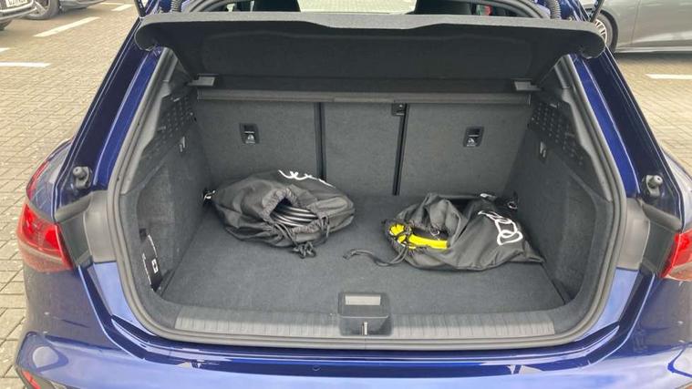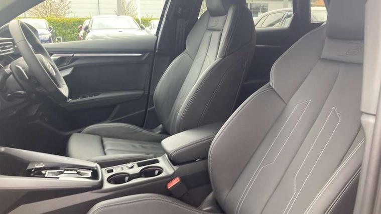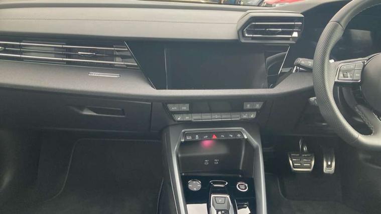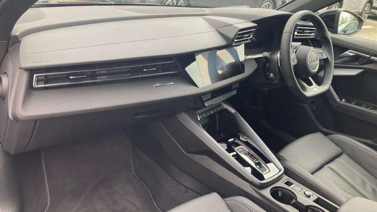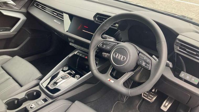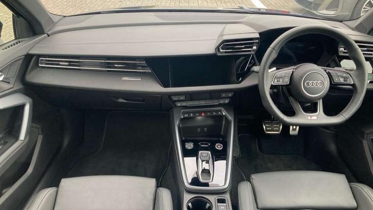 Adjustable speed limiter, Audi drive select, Audi smartphone interface with app store includes wireless Apple carplay, Android auto and Amazon alexa integration, Audi virtual cockpit plus - 12.3" full HD resolution dynamic digital instrument cluster, Automatic start/stop system with recuperation, Bluetooth interface, Camera based traffic sign recognition, Collision avoidance assistant, Cruise control, Distraction and Fatigue warning, e-Call (emergency call), Electromechanical power speed sensitive steering, Emergency assist, Lane departure warning system, MMI Navigation Plus with high resolution 10.1" colour touch screen display, Park Assist with parking system Plus, Service indicator, Trip computer, Voice control system with natural language interaction, 3 pin 10 amp domestic charging cable, CCS socket for DC charging, Charging cable for public charging, mode 3 (type 2), 32 A, Compact charging system, Industrial connector CEE 32 A, 230 V, length 1.6 m, Standard suspension, Type 2 socket for AC charging, Audi Phonebox light with wireless charging, Audi sound system - 10 loudspeakers including centre loudspeaker and subwoofer, DAB Digital radio, USB ports with charging function in the rear, Acoustic glass windscreen, All weather light, Anthracite grey Audi rings (front and rear), Audi beam uses LEDs to project the Audi logo onto the ground as you exit your A3, Auto dimming frameless rear view mirror, Automatic dynamic range control, Black accents front and rear bumpers, Black accents in the area of the Audi single frame grille, Black accents window trims strips, Dipped beam, main beam, position light and turning light, Electrically adjustable/heated/folding/auto dimming door mirrors with integrated LED indications + kerb view function for passenger side, Exterior model badging, Front and rear side air inlets in grained matt black with dark liquid chrome frame, Front electric windows, Heat insulating glass windscreen, Illuminated door sills with aluminium inserts at the front with S logo, Intersection light, LED 3rd brake light, LED brake lights, LED daytime running x3, LED headlights with LED rear lights and dynamic rear indicators, LED rear number plate lights, LED reverse light, LED tail lights, Light and rain sensors, Manoeuvring light, Motorway light, Privacy glass - dark tinted rear window, rear door and side windows, Rear diffuser and grill in grained matt black with inlay in dark liquid chrome, Rear electric windows, Rear side wing doors, Rear wiper, S roof spoiler, Static cornering light, 12V socket and storage compartment in front centre console, 3 seat bench in 2nd row, 3 spoke flat bottomed leather multifunction sport steering wheel with gear shift paddles, 3-zone deluxe automatic air conditioning, 4 way electrically adjustable lumbar support for driver and front passenger, 40/20/40 split folding rear seat bench, Black cloth headlining, Black front and rear floor mats, Convenience auxiliary air conditioning, Front and rear centre armrest in artificial leather with contrasting stitching on armrests and instrument panel, Front and rear headrests, Heated front seats, Height and reach adjustable steering wheel, Manual boot compartment lid, Manually adjustable front seats, Rear centre armrest with cupholder, S badging on the steering wheel, Seat side bolsters, Single front passenger seat, Stainless steel pedals and front footrest in black, Twin leather upholstery with front sports seats S embossed logo, Aluminium interior elements pack - A3, 3x3 point rear seat belts, Acoustic vehicle alerting system, Driver and front passenger airbag with passenger airbag deactivation, Electronic Stabilisation Control (ESC) including ABS, ASR and EDL, First aid kit with warning triangle and 2 safety vests, Front side airbags with head airbags and interaction airbag, Hill hold assist, Pre-sense front with pedestrian and cyclist detection, Seatbelt monitoring, Tyre pressure loss indicator, Anti theft alarm, Anti-theft wheel bolts, Electronically operated child locks, Immobiliser, Remote central locking with safelock, Black dashboard, 18" 5 Y twin spoke style alloy wheel in metallic black, Tyre repair kit,