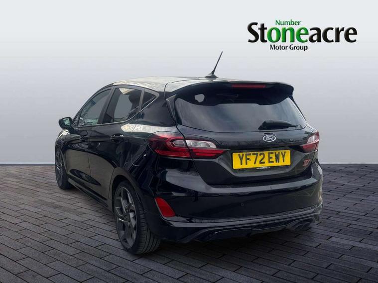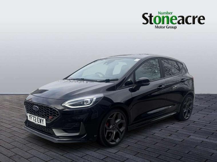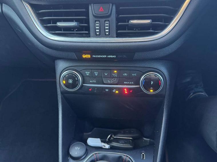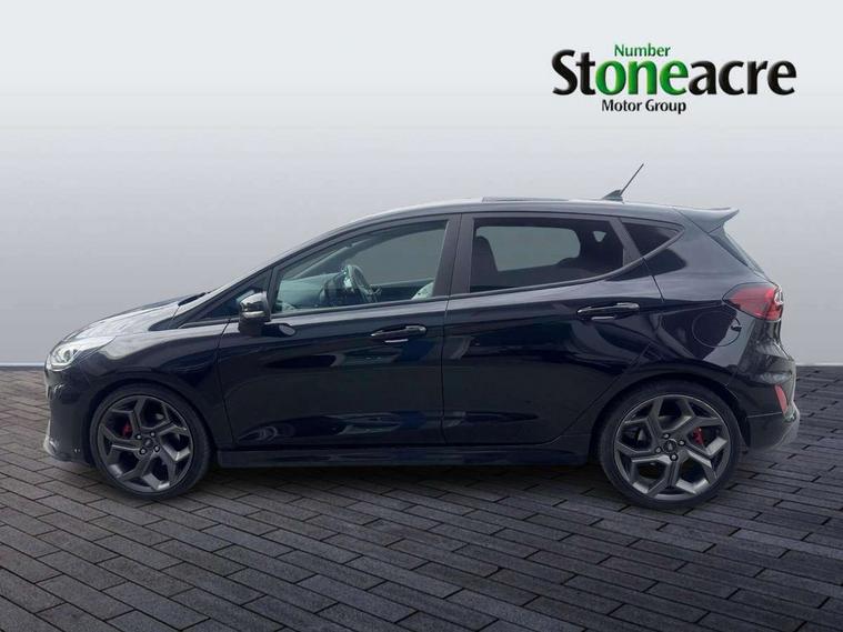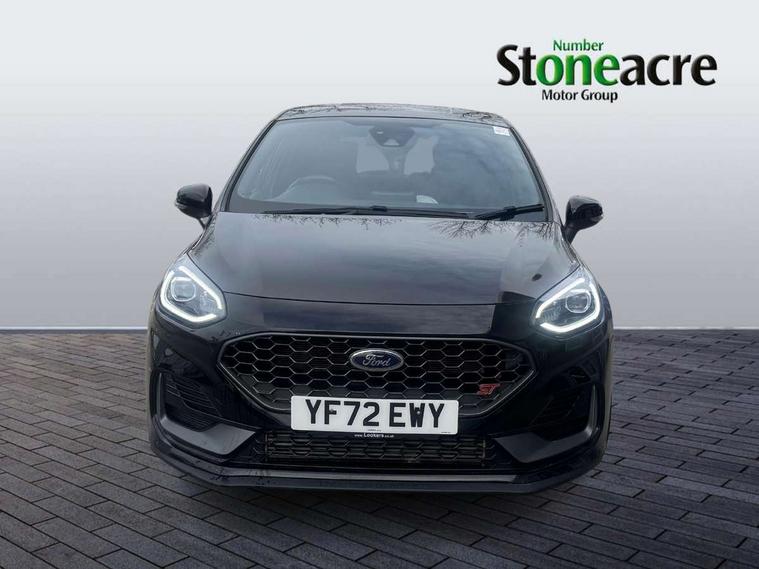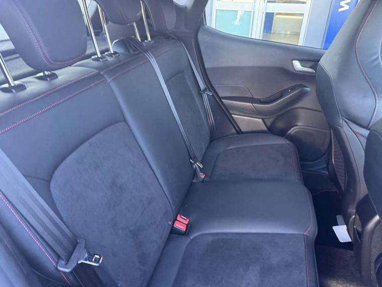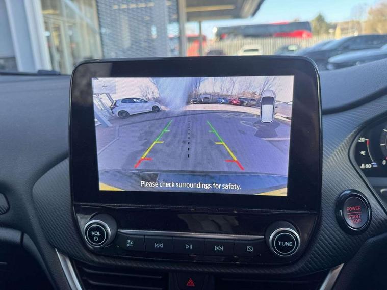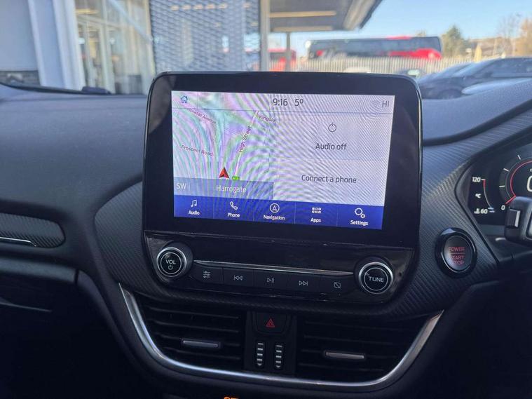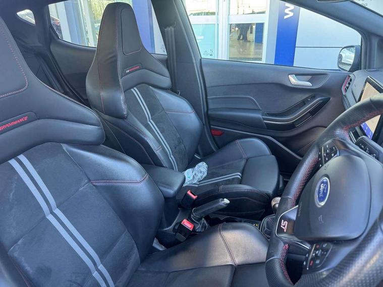 Bluetooth system, Cruise control with active speed limiter, Electric power steering, Ford easy fuel, Selectable drive modes (Normal, Sport, Track), Trip computer, Unique ST suspension, 2 USB ports, Auxiliary input socket, B&O Premium audio system with 8" touchscreen, 10 speakers, 360 degree sound system, Ford SYNC 3 navigation system and Ford pass connect, DAB Digital radio, Steering wheel mounted controls, Body colour bumpers, Body colour door handles, Body colour large rear spoiler, Body coloured electrically operated and heated door mirrors with side indicators, Cornering front fog lights, Dual chrome exhaust tailpipe, Electric front windows/one touch facility, Electric rear windows, LED Night signature to rear lights, Quickclear heated windscreen, Rain sensing wipers and auto dimming rear view mirror, Rear privacy glass, Rear wiper, Unique ST front grille, Unique ST rear bumper with diffuser, Unique ST scuff plates, 3 spoke flat bottomed Leather steering wheel with grey stitching, 60/40 split folding rear seat, Adjustable head restraints, Black headlining, Boot carpet, Centre console with opening armrest, 2x cupholders, 12v and USB, Chrome inner door handles, Drivers and Passenger lumbar support, EATC - Electronic Auto Temperature control, Floor mats with grey stitching, Footwell illumination, Front map reading lights, Front seat and rear pockets, Illuminated glovebox, Leather gaiter, Leather handbrake lever with grey stitching, Load area light, Manual 2 way passenger seat adjust, Manual 4-way driver seat adjust, Overhead console with sunglasses holder, Pollen filter, Rake/reach adjustable steering wheel, Recaro leather sports front seats, Seat belts with blue detailing, Unique ST gearknob with grey stitched gaiter bag, Comfort Pack - Fiesta, NCAP Pack - Fiesta, ST performance pack - Fiesta, 3 point seatbelts on all rear seats, ABS+EBA, Curtain airbags, Driver and passenger airbags, Drivers knee airbag, Electronic stability control with hill start assist, Front passenger airbag deactivation, Front side airbags, Seatbelt warning, Two tone horn, Tyre pressure monitoring system, Ford keyfree system with Keyless entry and keyless start, MyKey system, Remote central locking & engine immobiliser, Thatcham Cat.1 alarm, 18" Magnetic alloy wheels with machined finish and red brake calipers,