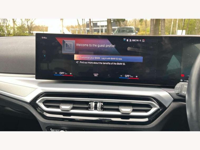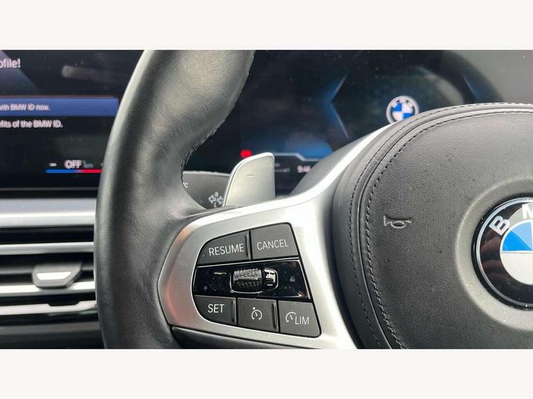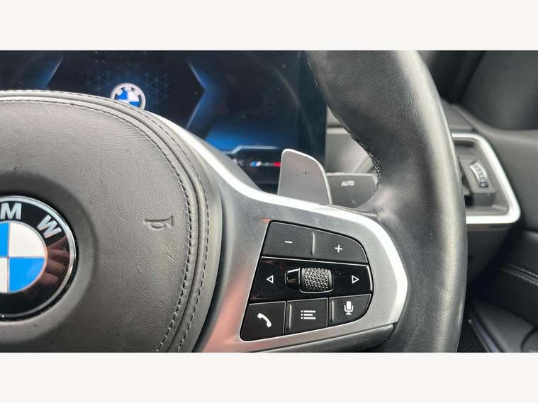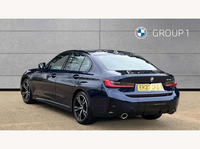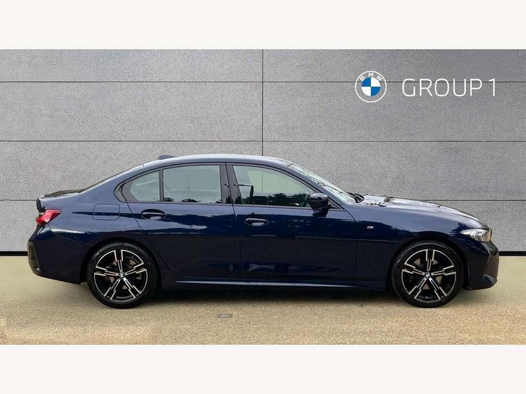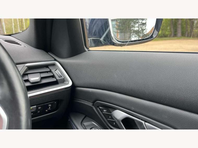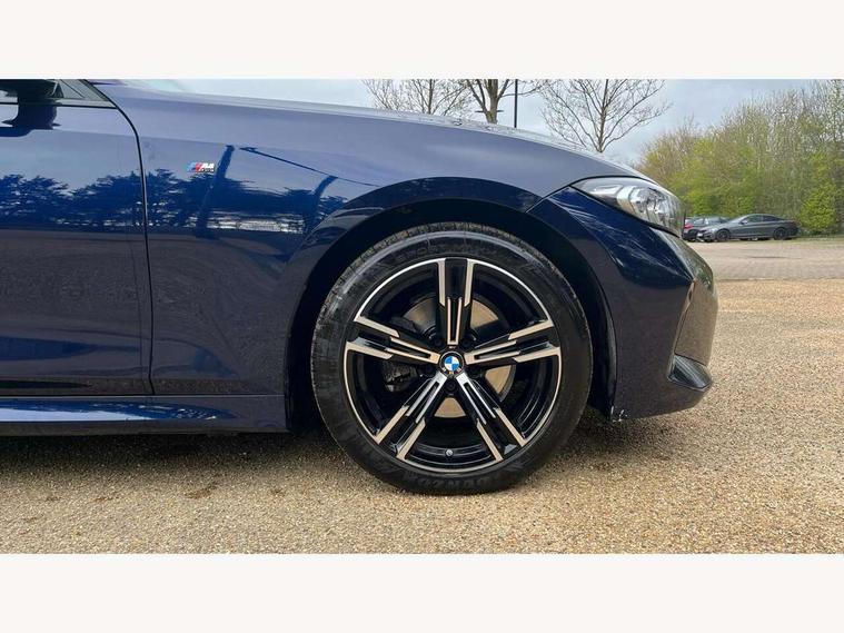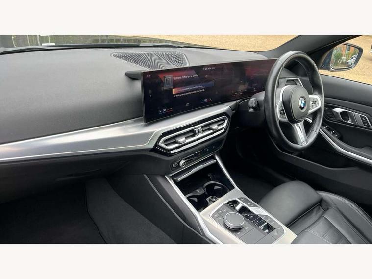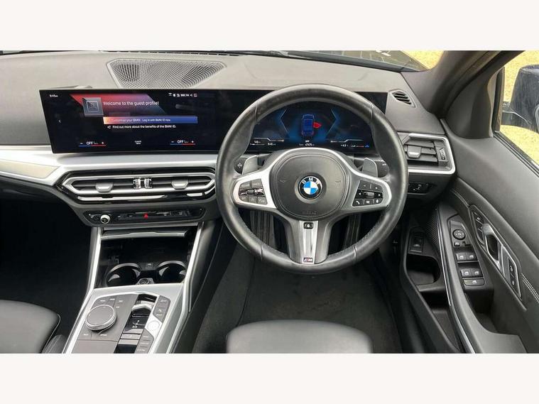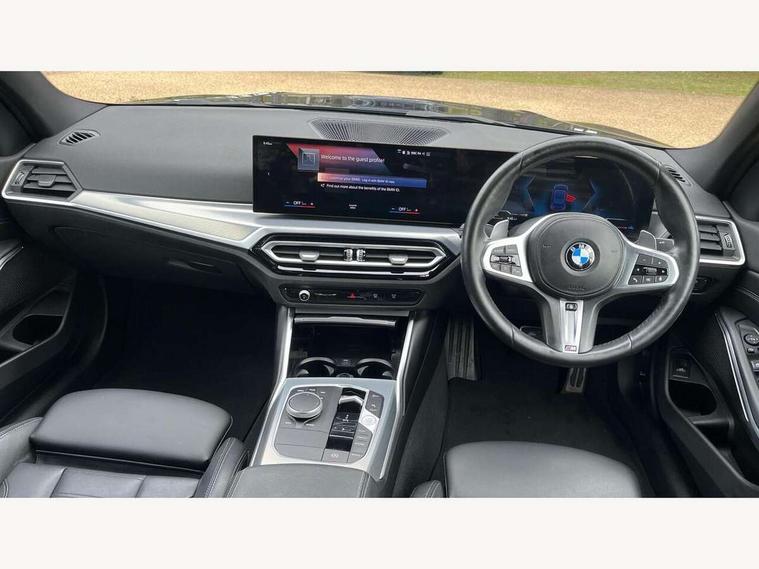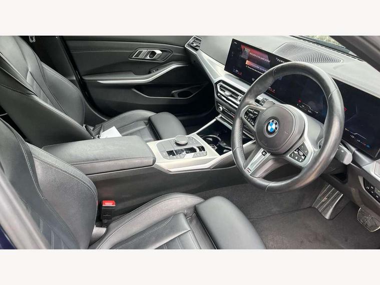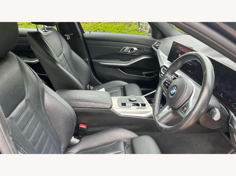 Active guard plus, Attentiveness assist, Automatic Start/stop button, BMW iDrive, BMW Teleservices, Condition based service, ConnectedDrive Services, Driving experience switch, Live cockpit plus with Navigation + 12.3" instrument display + 14.9" display, Intelligent voice assist, 2 USB, 4G LTE connect, Oil sensor for level and grade, Preparation for driver assistance, Shifting point display, Variable sport steering, Double joint spring strut front axle, Electronic differential lock control (EDLC), Fuel tank breather system, M sport suspension, Sport automatic transmission with steering-wheel mounted gearshift paddles and launch control, DAB tuner, 3rd brake light, Acoustic glazing, Automatic headlight beam throw control with load dependent regulating reaction, dynamic compensation of braking dive and acceleration squat, BMW emblem, engine compartment lid and tailgate, Body colour roof fin, Door sill strips, Electric windows - front and rear, with open/close fingertip control, anti-trap facility and comfort closing, Follow me home headlight function, Front and rear bumper system with replaceable deformation elements, Front apron plastic in body colour, Fuel filler flap - right rear in body colour, Heated washer jets, High gloss shadow line exterior trim, Illuminated bow type door handles in body colour drivers side with door lock, Interior rear view electrochromatic mirror with automatic anti dazzle function, LED headlights with LED daytime running lights and LED turn indicator, LED rear lights, Licence plate panel integrated into front bumper and tailgate, Matt black B-pillar finsher, Matt black window recess cover, Model designation on right side of tailgate, One piece front bumper cover including towing eye cover in body colour, Rain sensor with automatic headlight activation, Rear boot, Rear side wing doors, Reversing lights, Side frame decorative moulding black matt, Visible exhaust tailpipe finisher, Welcome lights in interior and door handle area, 12V power socket in front storage compartment, 2 front cupholder in centre console with clamping elements and matt black inlay, 3 seat bench in 2nd row, 3 zone automatic air conditioning, 40:20:40 split folding rear seat with loading system, Ambient inside door handle light, Ambient light design projected onto the left and right entering and exiting area, Ambient lighting front and rear with 9 selectable colours, Ambient storage compartment lighting in the centre console, Anthracite headlining, Armrest integrated in front and rear door trim + front centre console armrest, BMW ID, Contour lighting in instrument panel and door trim panel, Cruise control operation in steering wheel, Driver backrest width adjustment, Folding rear centre armrest with 2 cupholders, Front and rear ambient footwell lighting, Front and rear door exit lighting (left / right), Front and rear headrests, Front and rear reading lights, Front and rear velour floor mats, Front sport seats, Heated front seats, Height adjustable mechanically and infinitely variable steering column, Illuminated armrest storage compartment, Illuminated glove compartment, Illuminated luggage compartment, Lashing eyelets in luggage compartment, M Sport multifunction leather steering wheel, Make-up mirror lights, Single front passenger seat, Standard seat for driver and passenger with manual adjustment, Sunvisors with vanity mirrors and ticket pocket, Toolkit located in luggage compartment, Connected pack professional - 3 Series Saloon/Touring, Interior and exterior mirror pack - 3 Series Touring/Saloon, M Aerodynamics package - 3 Series Saloon/Touring, M sport exterior styling pack - 3 Series Saloon/Touring, Storage compartment pack - 3 Series Saloon/Touring, 3x3 point rear seatbelts, BMW emergency call, Child locks on rear doors, Crash sensor activating of airbags, Unlocking doors, hazard warning lights, interior light, safety battery terminal, Driver and front passenger with seat occupancy detection for driver's and passenger side, Driver and passenger side airbags, body protection at side and airbags deploy from seat backrests, Dynamic brake control, Dynamic stability control + (DSC+) - Anti-lock Braking System (ABS) with brake assist and cornering brake control + Automatic Stability Control (ASC), Dynamic Traction Control - DTC, Electric parking brake including automatic hold function and automatic release of the parking brake when driving off, Head airbags in 1st and 2nd row, head protection at side, curtain airbags open from headliner above 1st and 2nd row, Plastic fuel tank, Side impact protection, Tyre pressure monitoring with three level warning strategy, Ventilated front and rear disc brakes, Warning triangle and first aid kit, Alarm system, Centre lock switch, Closing system with central locking, Electronic vehicle immobiliser,