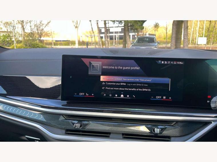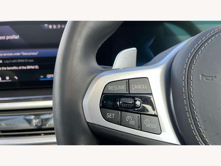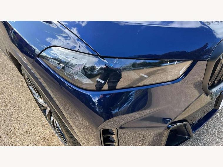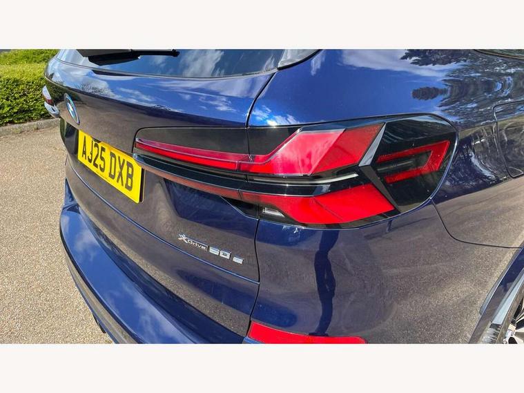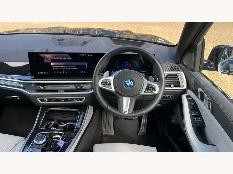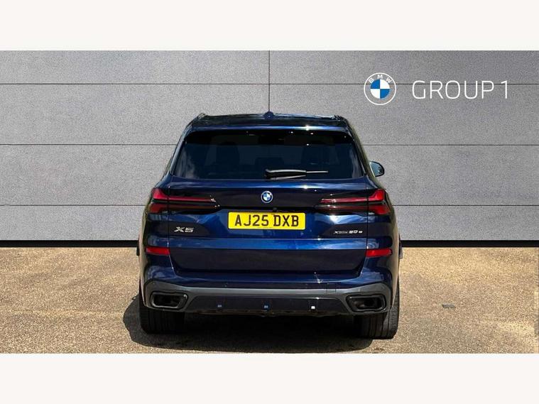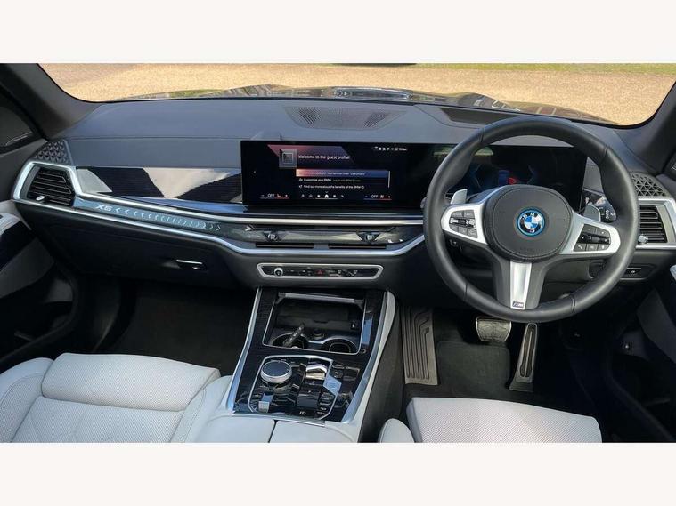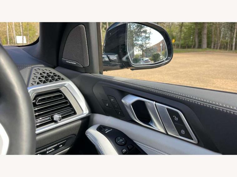 Attentiveness assist, Automatic tailgate operation, BMW ConnectedDrive online services, BMW live cockpit + with curved 12.3 instrument cluster/14.9 central display, nav/Tuner with diversity reception, RDS/4GLTE/remote software upgrade, BMW Teleservices, Condition based service, Cruise control with brake assist, eCall emergency call system, Enhanced bluetooth with wireless charging, Integrated owner's handbook, PAS, Speed limiter, Wi-Fi hotspot, AC Fast charging preparation (Maximum charging power 11kW), Adaptive 2-axle Front and rear air suspension, Drive performance control with ECO PRO comfort + sport mode, Eight speed steptronic sport automatic transmission and gearshift paddles on the steering wheel, Adaptive LED Headlights, Front and rear electric windows, High beam assistant, High gloss black shadow line roof rails, LED daytime running lights, Rain sensor, Rear side wing doors, Third brake light in rear spoiler, Variable intermittent rear wash/wipe, 12V - Power sockets with 2x centre console and 1x luggage compartment, 3 seat bench in 2nd row, Foldable rear centre armrest with 2 cupholders and storage compartment, Front and rear side armrest integrated into door trim, Headrests for all seats, Luggage compartment separating net, Lumbar support with height and depth adjustment in backrest, Single front passenger seat, Three spoke sport M leather steering wheel, Velour floormats, Ambient light interior pack - X5, Driving assistant pack with radar based driver assistance system - X5, Expanded exterior mirror pack - X5/X5 M, M aerodynamics pack - X5, Parking assistant pack - X5, 3 rear seatbelts, Acoustic protection for pedestrians, Active protection, Airbags - driver/front passenger, rear and side, first and second row seats head airbags, front passenger seat airbag deactivation + knee airbag, Anti-lock braking system (ABS), Automatic Stability Control (ASC), Brake energy regeneration, Cornering brake control (CBC), Crash sensor activating central locking release, hazard warning lights, fuel cut off, interior lighting + activation of safety battery terminal clamp, DSC - Dynamic Stability Control, Dynamic Traction Control - DTC, Electromechanical parking brake with automatic drive away release and auto hold function, Electronic brake force distribution, Hill start assistant, M Sport blue painted brake calipers with 'M' designation, Mechanical child proof lock on rear doors, Tyre pressure monitoring system, Tyre pressure sensors, Ventilated front and rear disc brakes, Warning triangle and first aid kit, Alarm system, Closing system with central locking, Comfort access system, Locking wheel bolts,