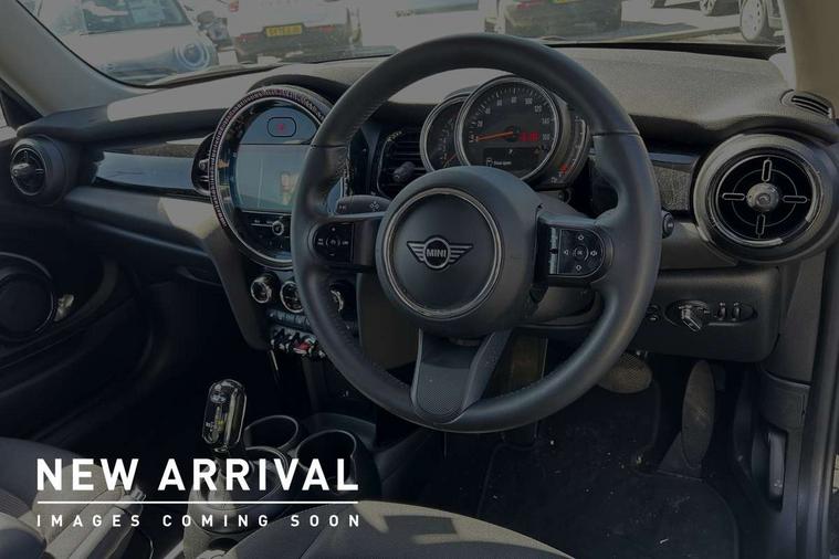 Apple CarPlay, Automatic start/stop function with brake energy recuperation, Compatible mobile phone bluetooth with audio streaming, Cruise control with brake assist, Electro-mechanical speed dependant steering assistance, Flexible car sharing preparation, Instrument cluster, Mini E-call, MINI TeleServices, On board computer, Service interval indicator, Double Vanos system, Fully variable valve control, High precision injection, Performance Control, Steptronic transmission with double clutch, 8.8" touchscreen with LED ring, FM tuner and DAB digital radio, 3rd brake light, Automatic headlight activation switch, Body colour fuel filler cap, Chrome border high gloss black slats radiator grille, Dynamic brake lights, Electric front windows, Exhaust tailpipe on left with chrome finisher, Heated rear window, Heated windscreen washer jets, LED headlight with closed ring and daytime driving lights, Metal door sill strips with MINI imprint, Model logo Cooper on right of tailgate, Rain sensor window wipers, Rear fog lights, Rear LED lights with union jack design, Rear window wiper, Side scuttle panel with integrated indicator, Sun/heat protection glass, White indicator lenses, 12V Accessory socket in centre console, 2 seat bench in 2nd row, 4 lashing eyes in luggage compartment, 60/40 split folding rear seat, Ambient lighting, Carbon black colour line - Knee roll and door armrest, Chrome interior highlights, Cupholders, Front and rear head restraints, Front and rear isofix with front passenger airbag deactivation, Front floor mats in velour, Glove compartment, Height and length steering column adjustment, Interior lighting with 12 different colours across the dashboard, underneath door bezel with illuminated laser-engraved design on central display, Leatherette gearshift lever and handbrake gaiters, LED reading lights, vanity mirror lights, front foot well light and spotlight on front seats, Manual air conditioning, Mechanical seat adjustment - forward/back & backrest for front seats and driver seat height adjust, Multifunction steering wheel, Passenger seat height adjuster, Satellite grey headlining including grab handles and clothes hooks, Single front passenger seat, Sport leather steering wheel with speed limiter and audio/communication controls, Storage compartments in doors, Sunvisors with vanity mirrors, 3 point seatbelts on all four seats, 6 Airbags - front, side, head and seat belt tensioners, Anti-lock braking system (ABS), DSC - Dynamic Stability Control, Front and rear disc brakes, Single tone fanfare horn, Tyre pressure monitoring system, Alarm system with tilt sensor, monitoring doors, bonnet interior and tailgate, Electronic vehicle immobiliser, Start/stop toggle with keyless go, Piano black interior trim, Tool kit, Tyre repair kit,