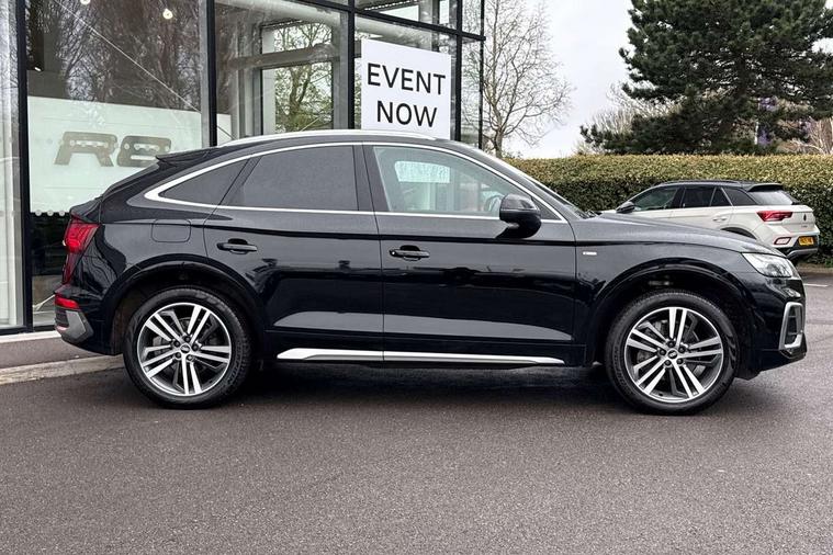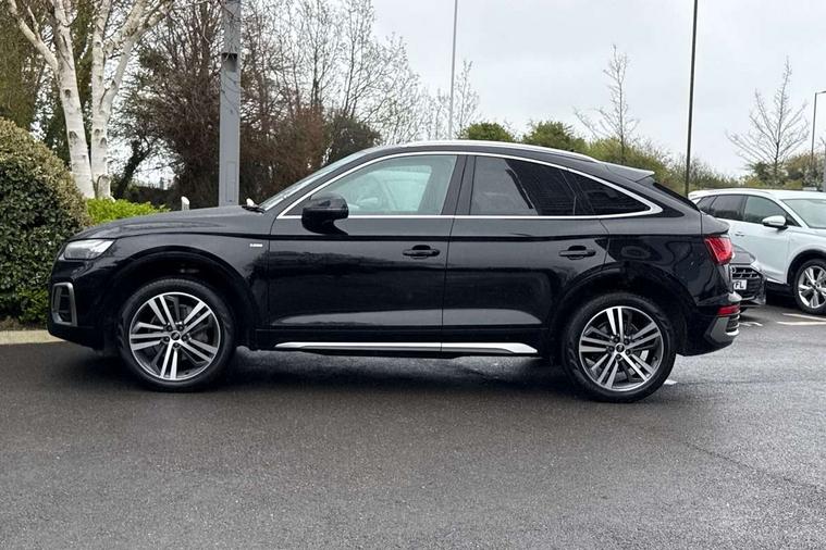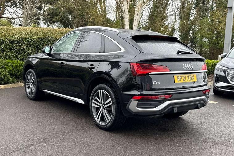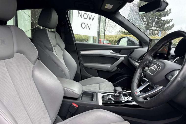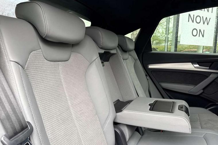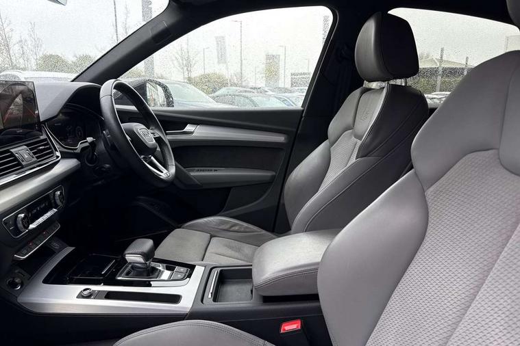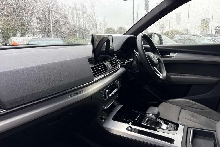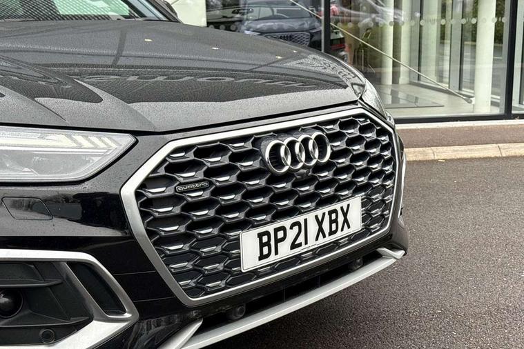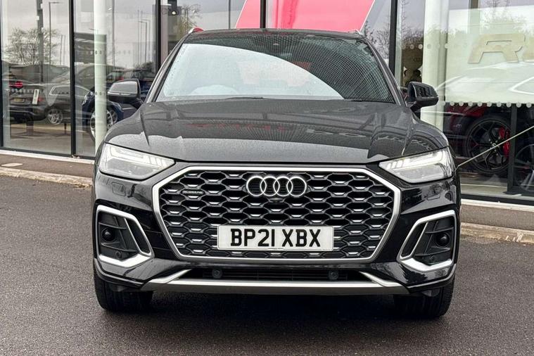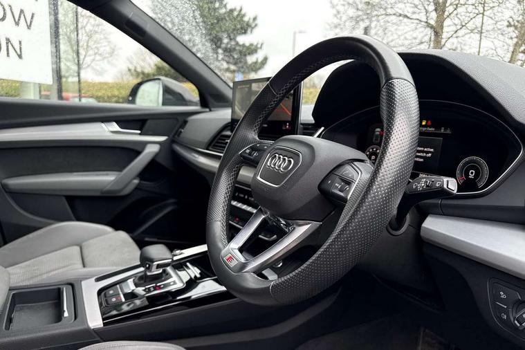 Audi connect safety and service (e-call), Audi connect with Amazon Alexa Integration, Audi drive select, Audi virtual cockpit plus with 12.3" screen and three different layout designs, Audi wireless smartphone interface, Automatic start-stop system with coasting functionality and efficiency programme, Bluetooth interface, Electro - mechanical power assisted steering, MMI navigation plus with 10.1" touch screen, Power tailgate, Reversing camera, Service interval indicator, Voice control system with Audi hotword activation "Hey Audi", Quattro on demand, S line sports suspension, 2 x USB charging port with aux input socket, DAB Digital radio, Acoustic windscreen, Aluminium roof rails, Audi matrix LED headlights with dynamic front and rear indicators, Auto dimming rear view mirror, Automatic headlights and windscreen wipers, Body colour door mirrors, Body colour rear diffuser with matt aluminium silver surrounds, Body colour underbody protection, Chrome plated exhaust trims, Door sills in Selenite silver, Electric adjustable/heated/folding door mirrors, Front air inlet surrounds in aluminium, Front and rear electric windows, Front radiator grille in honeycomb design, Headlight washers, Lower bumpers painted in contrast Manhattan grey, Rear chrome trim strip below lights, Rear privacy glass and rear side windows, Rear spoiler, Rear wiper, Roof bars, S Line badges on the front wings, S Line front and rear bumpers, S Line side skirts, 3 rear headrests, 40:20:40 split folding rear seat with rear centre armrest, Black cloth headlining, Comfort front centre armrest, Contrast stitching on seats, steering wheel and gear lever gaiter, Deluxe 3 zone electronic climate control, Front head restraints, Front/rear floor mats, Gear lever in black leather, Heated front seats, Height/reach adjustable steering column, Illuminated door sill trims with S logo, ISOFIX child seat mounting and top tether, Manual seat adjustment with 4-way electric lumbar support, Removable luggage compartment floor, Stainless steel pedals, Sunvisors with vanity mirrors, Trunk roller cover, High gloss pack - Q5, LED interior light pack - Q5, 3 point seatbelts on all seats, 6 airbags - Driver, front passenger, curtain and side airbags, Electrically operated child locks on rear doors, Electromechanical parking brake, Electronic stabilisation control including ABS, ASR and EDL, Front passenger airbag deactivation, Hill descent control, Hill hold assist, Multi collision brake assist, Pop-up bonnet for pedestrian protection, Pre sense city, Seat belt force limiter, Seatbelt monitoring, Tyre pressure warning, Warning triangle and first aid kit, Anti theft alarm, Anti-theft wheel bolts, Keyless Go access/ignition system, Matt brushed aluminium inlays,