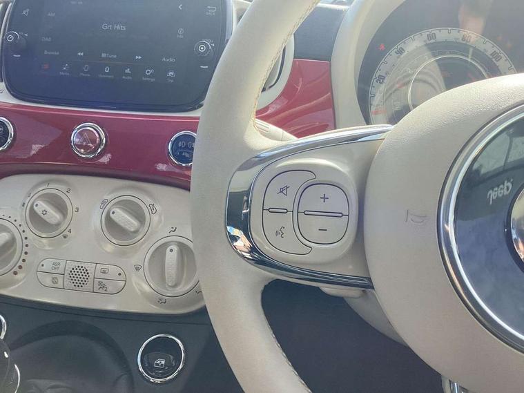 Apple car play/Android Auto, Cruise control, E-call, External temperature gauge, Power assist steering, Rear parking sensor, Speed limiter, Stop/start system, Trip computer, 4 speakers, 7" HD Touchscreen Radio, Bluetooth, USB and DAB, Rear speakers, 3rd brake light, Auto headlights, Body colour bumpers, Body coloured electrically adjustable door mirrors, Chrome plated exterior door handles, Dolcevita badge on fender, Dusk and rain sensors, Electric front windows, Fixed glass sunroof with sunblind, Front fog lights, Halogen headlamps, Heat insulated glass, Heated rear windows with wash wipe, LED daytime running lights, Rear side wing doors, Rear wiper, 1 passenger grab handle, 2 seat bench in second row, 50/50 split folding rear seats with height adjustable rear headrests, Air conditioning, Auxilliary 12V power socket, Chrome kit, Front headrests, Height adjustable drivers seat, Height adjustable steering wheel, Isofix child seat preparation, Single front passenger seat, Techno leather steering wheel with audio controls, 7 airbags - Driver, passenger, side, window and drivers knee airbags, ABS/EBD, ESC + ASR/MSR + HBA + Hill holder, Manual passenger airbag deactivation function, Traction control, Tyre pressure monitoring system, Automatic door locking, Immobiliser, Locking fuel filler cap, Remote central locking, 15" Alloy wheels,