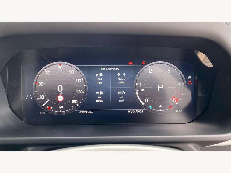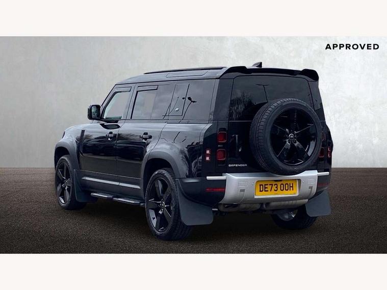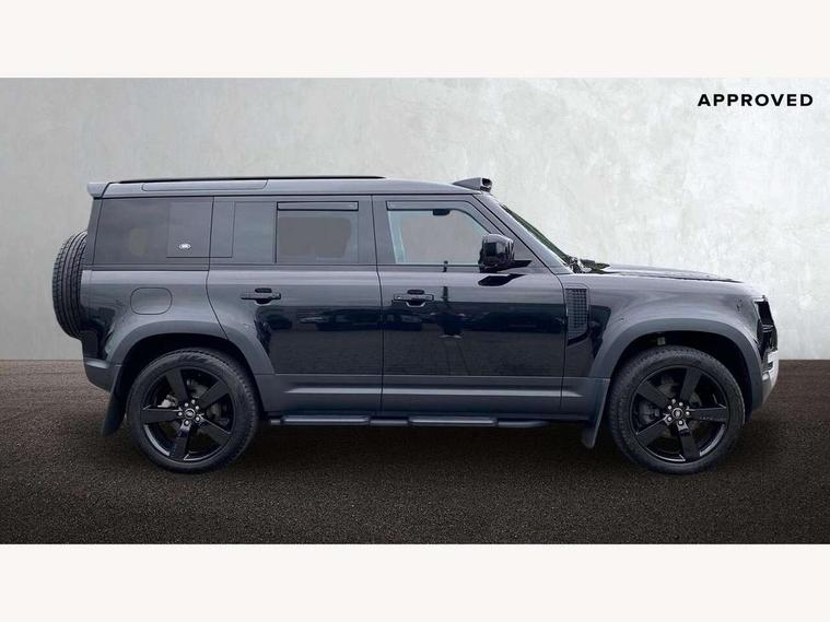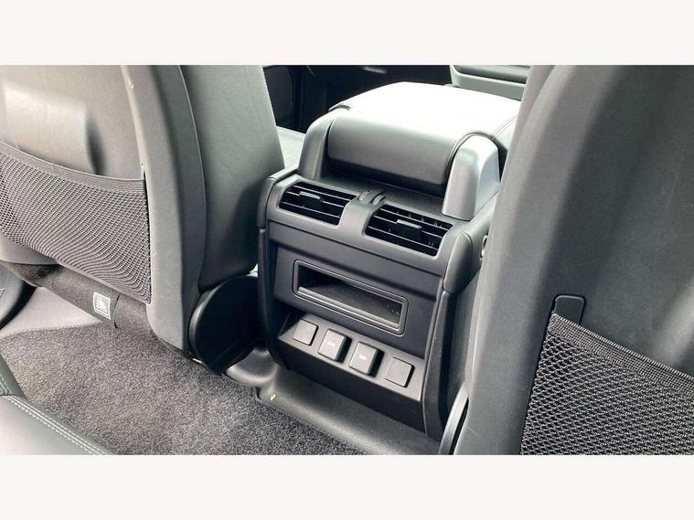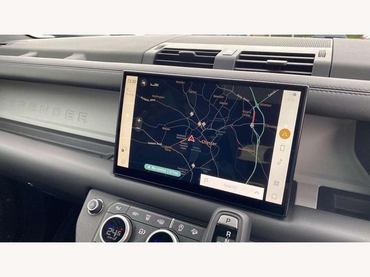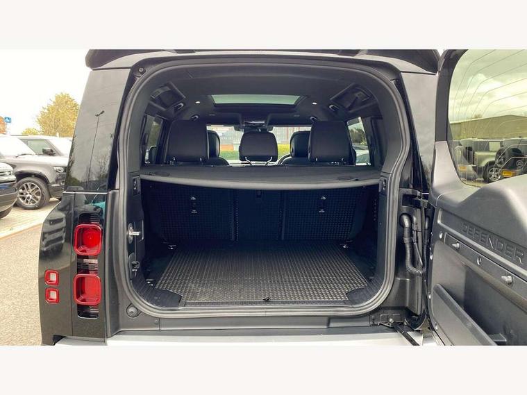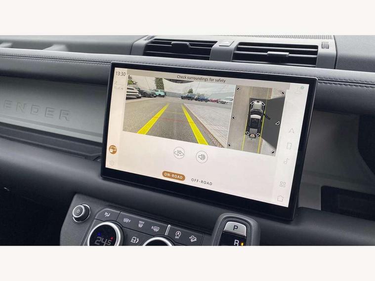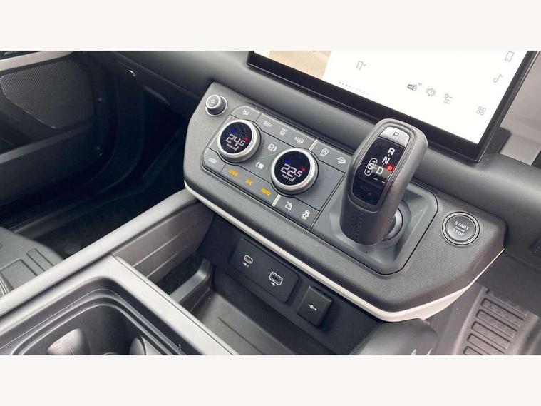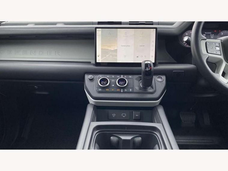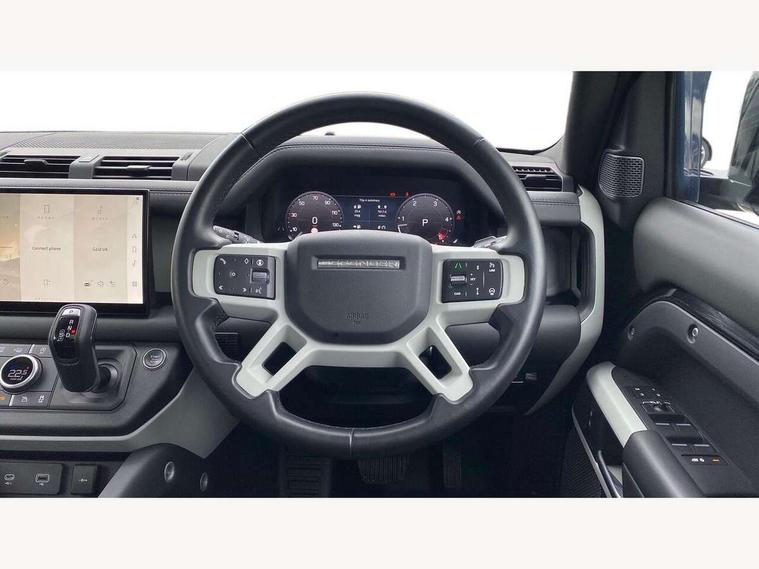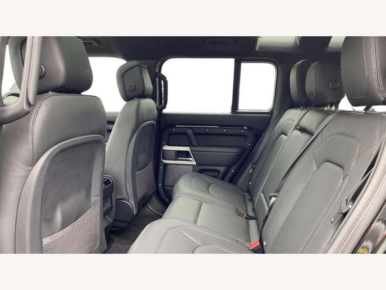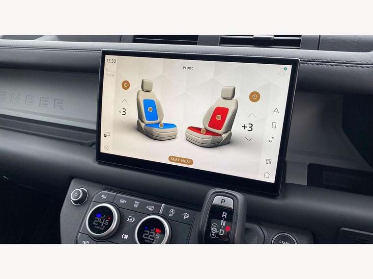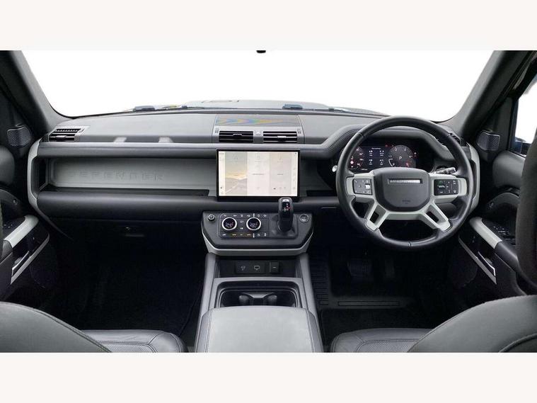11.4" touchscreen, 360 degree parking aid, 3D Surround Camera with 360 View, 180 Rear View, Front Traffic Detection, Forward Vehicle Guidance, Tow Hitch Assist and clear sight Ground View, Adaptive cruise control, Android Auto, Apple CarPlay, Assisted tailgate with soft close, Blind spot assist, Bluetooth system, Brake pad wear indicator, Clear exit monitor, Connected navigation pro, Driver condition monitor, Electric power assisted steering (EPAS), Interactive driver display, Lane keep assist, Push button start, Rear collision monitor, Rear traffic monitor, Traffic sign recognition with adaptive speed limiter, Trip computer, Wade Sensing, 8 speed automatic transmission, All wheel drive system, Twin speed transfer box, DAB Radio (Digital Audio Broadcasting), Meridian 400w sound audio system with 11 speakers and subwoofer, Pivi pro connected, Automatic headlight levelling, Automatic headlights, Centre high mounted stop light, ClearSight interior rear view mirror, Electric heated/power fold door mirrors with approach lights and auto dimming driver side, Electric windows with one touch open/close and anti-trap, Follow me home lighting, Front fog lights, Heated rear window with timer, Heated windscreen, LED tail lights, Puddle lights, Rain sensing windscreen wipers, Rear fog lights, Rear side wing doors, Rear wiper, Side hinged tailgate, Trailer stability assist, 12V power socket in loadspace, 14 way heated and cooled electric adjustable memory front seats with 4 way manual headrests, 3 seat bench in 2nd row, Alpine lights, Configurable cabin lighting, Durable rubber cabin flooring, Durable rubber loadspace flooring, Electric reach + rake adjustable steering column, Extended leather upgrade, Footwell lights, Front passenger isofix child seat attachment, Heated steering wheel, Loadspace cover, Loadspace Hook, Multifunction steering wheel, Overhead stowage for sunglasses, Premium cabin lighting, Rear headrests, Rear ISOFIX, Rear reading lights, Single front passenger seat, Standard seat configuration, Storage glovebox, Sunvisors with illuminated vanity mirrors, Online pack with data plan - Defender, 5 x 3 point seatbelts, ABS, Brake hold function, Cornering brake control (CBC), Customer configurable autolock, DSC - Dynamic Stability Control, EBD - Electronic brakeforce distribution, Electric parking brake (EPB), Emergency brake assist, Emergency braking, ESP + traction control, Front airbags with passenger seat occupant detector, HDC - Hill descent control, Hill launch assist, Low traction launch, Power operated child locks, Remote for (e-Call, Optimised assistance call, InControl app, Climate, beep and flash and door), RSC - Roll stability control, Seat belt reminder, TPMS (Tyre pressure monitoring system), Alarm, Immobiliser, Intrusion sensor, Keyless entry, Locking wheel nuts,