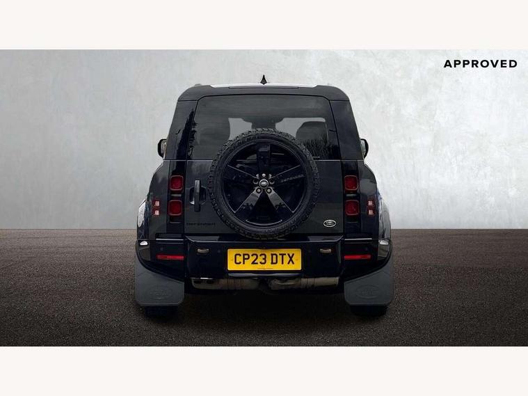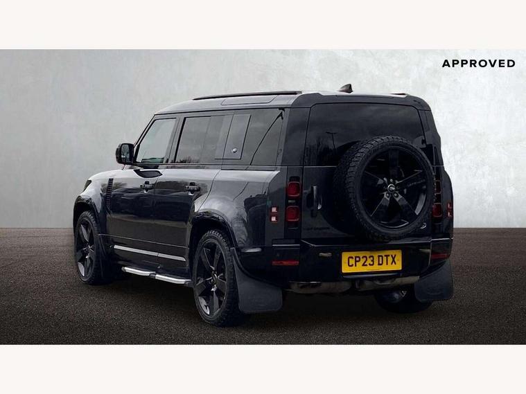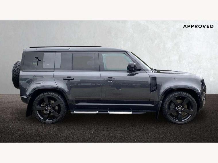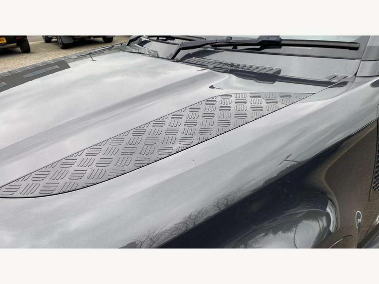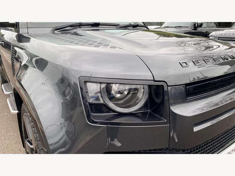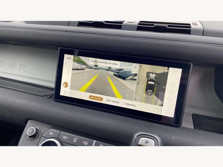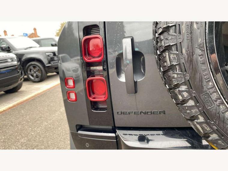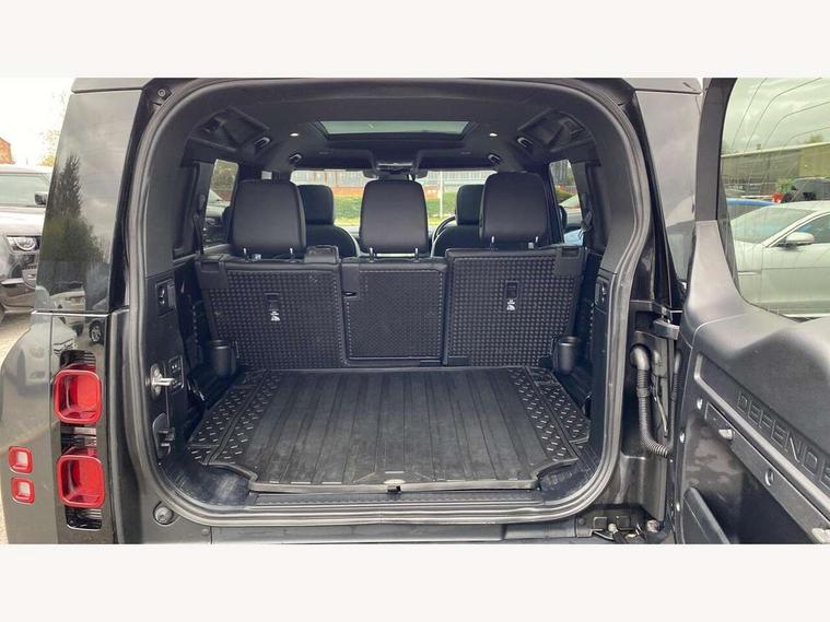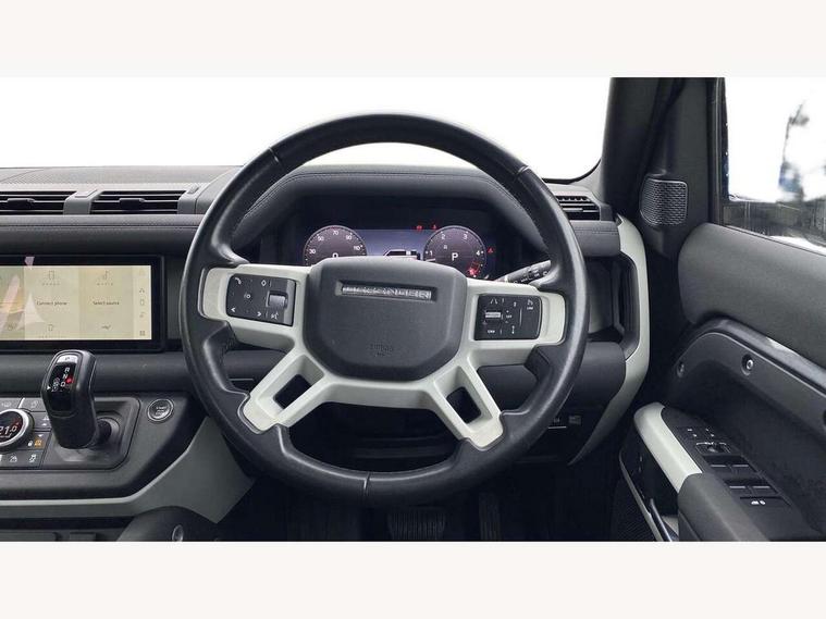 360 degree parking aid, 3D Surround Camera with 360 View, 180 Rear View, Front Traffic Detection, Forward Vehicle Guidance, Tow Hitch Assist and clear sight Ground View, Adaptive cruise control, Android Auto, Apple CarPlay, Assisted tailgate with soft close, Blind spot assist, Bluetooth system, Brake pad wear indicator, Clear exit monitor, Connected navigation pro, Driver condition monitor, Electric power assisted steering (EPAS), Interactive driver display, Lane keep assist, Push button start, Rear traffic monitor, Traffic sign recognition with adaptive speed limiter, Trip computer, Wade Sensing, 8 speed automatic transmission, Adaptive dynamics, All wheel drive system, Twin speed transfer box, DAB Radio (Digital Audio Broadcasting), Meridian 400w sound audio system with 11 speakers and subwoofer, Pivi pro connected, Automatic headlight levelling, Automatic headlights, Black exposed rear recovery eyes, Centre high mounted stop light, Electric heated/power fold door mirrors with approach lights and auto dimming driver side, Electric windows with one touch open/close and anti-trap, Follow me home lighting, Heated rear window with timer, Heated windscreen, LED tail lights, Privacy glass, Puddle lights, Rain sensing windscreen wipers, Rear fog lights, Rear side wing doors, Rear wiper, Side hinged tailgate, Trailer stability assist, X-Dynamic badge, 12V power socket in loadspace, 2 seat bench in 3rd row, 3 seat bench in 2nd row, Alpine lights, Configurable cabin lighting, Durable rubber cabin flooring, Durable rubber loadspace flooring, Footwell lights, Front passenger isofix child seat attachment, Loadspace cover, Loadspace Hook, Multifunction steering wheel, Overhead stowage for sunglasses, Premium cabin lighting, Rear headrests, Rear ISOFIX, Rear reading lights, Single front passenger seat, Storage glovebox, Sunvisors with illuminated vanity mirrors, Online pack with data plan - Defender, 7 three point seatbelts, ABS, Brake hold function, Cornering brake control (CBC), Customer configurable autolock, DSC - Dynamic Stability Control, EBD - Electronic brakeforce distribution, Electric parking brake (EPB), Emergency brake assist, Emergency braking, ESP + traction control, Front airbags with passenger seat occupant detector, HDC - Hill descent control, Hill launch assist, Low traction launch, Power operated child locks, Remote for (e-Call, Optimised assistance call, InControl app, Climate, beep and flash and door), RSC - Roll stability control, Seat belt reminder, TPMS (Tyre pressure monitoring system), Alarm, Immobiliser, Intrusion sensor, Keyless entry, Locking wheel nuts,