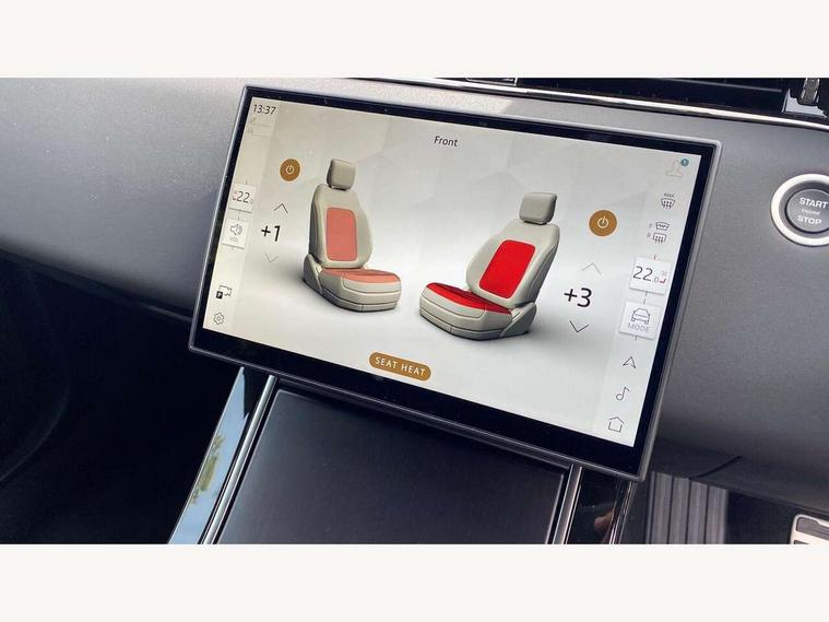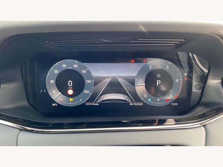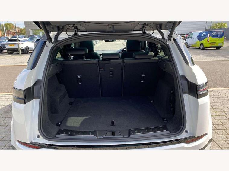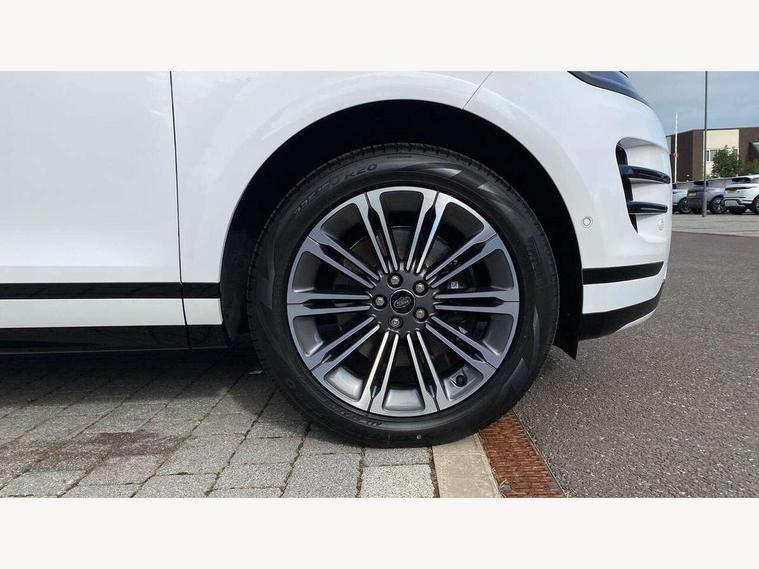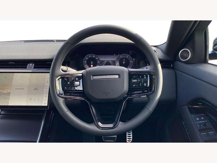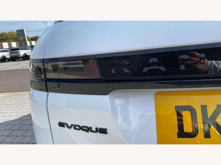11.4" touch screen, 3D 360 degree surround camera with wade sensing, Adaptive cruise control, Android Auto, Apple car play, Blind spot assist, Bluetooth connectivity, Brake pad wear indicator warning light, Driver condition monitor, eCall emergency system, Eco mode, Electronic power assisted steering (EPAS), Front and rear parking aid, InControl remote, Interactive driver display, Land Rover InControl apps, Lane keep assist, Pivi pro connected includes diamond pivi variant, smart settings, connected navigation pro, nuance speech licence, Powered tailgate/boot lid, Rear collision monitor, Rear traffic monitor, Tailgate, Traffic sign recognition with adaptive speed limiter, Voice control system, Wireless device charging, All terrain progress control, Diesel exhaust fluid (DEF) large tank, Efficient Driveline, Large fuel tank, Passive suspension, Terrain Response 2, Digital Audio Broadcast radio-DAB, Meridian sound system with 400W subwoofer and 11 speakers, Steering wheel mounted controls, Acoustic laminated windscreen, Auto dimming interior rear view mirror, Auto headlights, Auto high beam assist, Automatic headlight levelling, Black contrast roof, Electric windows with one touch open/close and anti trap, Fixed panoramic sunroof with powered sunblind, Flush deployable exterior door handles, Front and rear recovery eyes, Heated rear window with timer, Heated washer jets, Heated windscreen, LED headlights with signature DRL and LED tail Lights, Metallic paint, Power fold, auto-dimming, heated door mirrors with approach lights and auto dimming driver side, Privacy glass, Rain sensing windscreen wipers, Rear animated directional indicators, Rear fog lights, Rear side wing doors, Rear wiper, Side repeater indicators in mirror, Tailgate spoiler, Third brake light, Winter wiper park position, 12 way driver memory and 10 way passenger electric front seats with 2 way manual headrest + 4 way lumbar support, 40:20:40 split folding rear seats with centre headrest and armrest, Ambient interior lighting, Bright metal pedals, Cabin lighting, Carpet mats, Chrome tread plates with range rover branding Includes stainless steel loadspace scuff plate with etched graphic, Customer configurable single point entry, Front and rear cupholders, Grained Leather upholstery, Heated front seats, Heated steering wheel, Isofix system on outer rear seats, Manually adjustable steering column, Overhead lighting console, Overhead stowage for sunglasses, Passive front head restraints, Rear air vents, Rear head restraints, Satin chrome gearshift paddles, Single passenger seat, Standard steering wheel with Moonlight Bezel, Sunvisors with illuminated vanity mirrors, Twin sliding front centre armrest, Two zone climate control, Black exterior styling pack - Evoque, Power socket pack 2 - Evoque, 3 rear 3 point seatbelts, Anti-lock braking system (ABS), Black brake calipers, Brake hold function, Customer configurable autolock, DSC - Dynamic Stability Control, Electronic brake force distribution, Electronic parking brake, Electronic traction control, Emergency braking, Front and rear seatbelt reminder, Hill descent control, Hill launch assist, Low traction launch, Occupant protection assist, Passenger seat occupant detector, Power operated child locks, Roll stability control, Six airbags - Driver and passenger airbags/driver knee airbag/front side airbag and curtain airbags, Torque vectoring brake, Tyre pressure monitoring system, Alarm, Immobiliser, Intrusion sensor, Keyless entry, Locking wheel nuts, Secure tracker pro, Black brushed aluminium finisher, 19" gloss black alloy wheels - Style 5136, All season tyres, Tyre repair system,