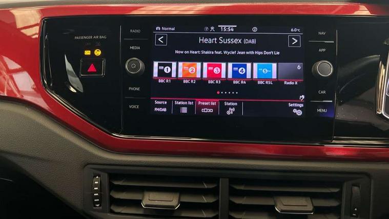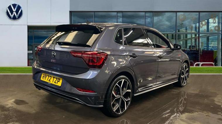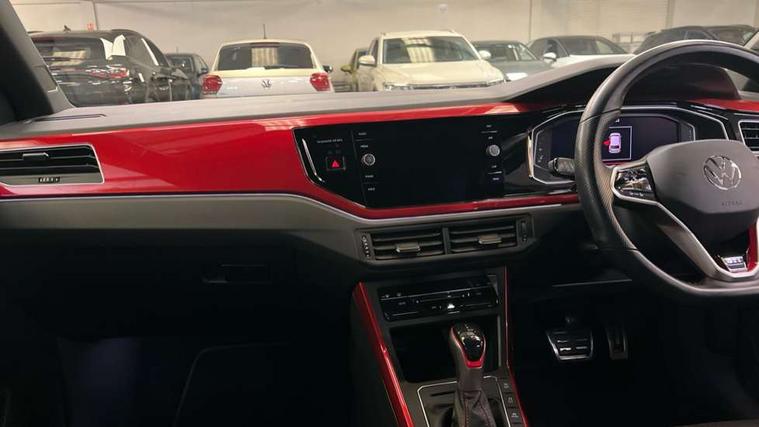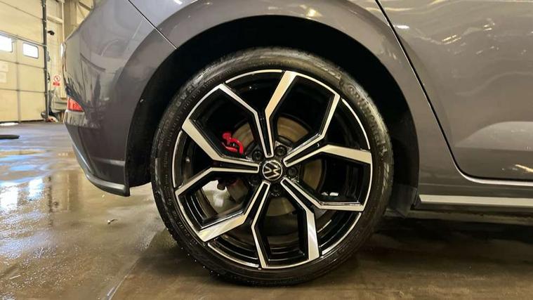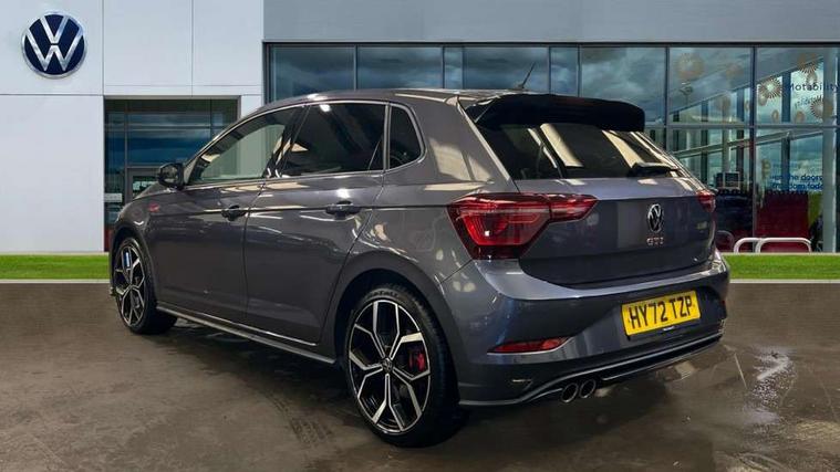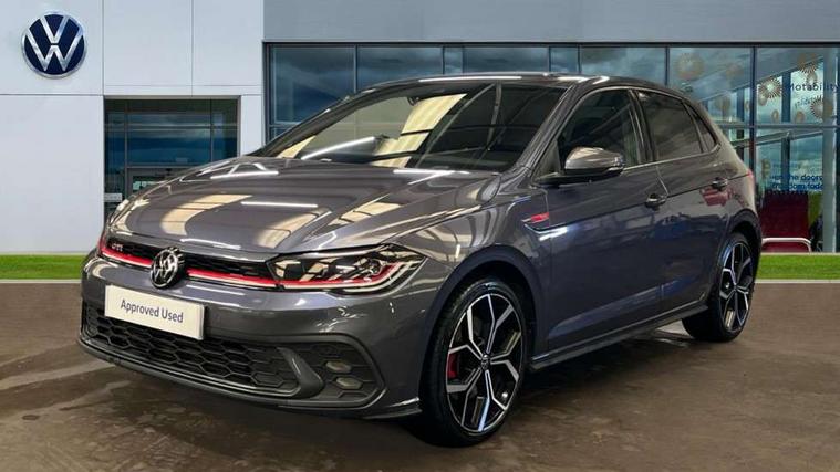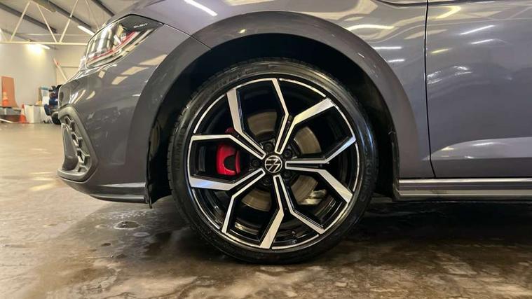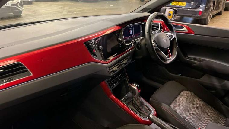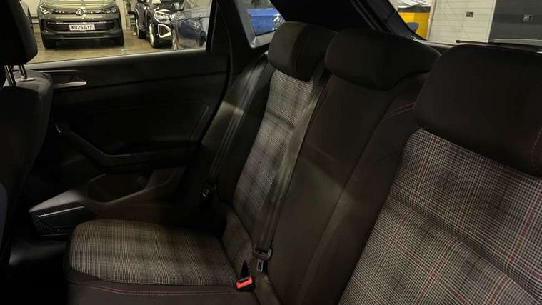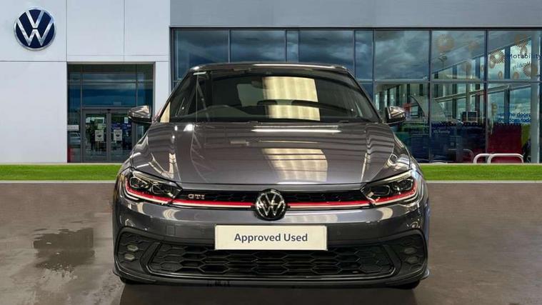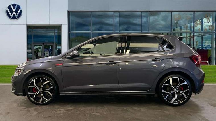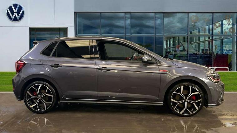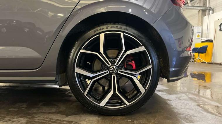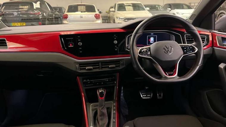 Adaptive cruise control with follow-to-stop and speed limiter, Bluetooth mobile phone interface, Digital Cockpit Pro with 10.25" Display, Driver alert system, Dynamic road sign display, Eco mode, Emergency call service, Power assisted speed sensitive steering, Preparation for We connect and We connect plus, Speedo and rev counter, electronic odometer, trip, service interval display and fuel gauge, Travel Assist - Lane keeping system and traffic jam assist, Travel assist including emergency assist, Trip computer, Warning signal and warning light for front and rear seatbelts not fastened, Washer fluid level indicator, Wireless app connect, Adaptive chassis control, Front wheel drive, Heavy duty rear axle, Rear shock absorpion sports version, Sports select suspension lowered by 15mm, Start-stop system with battery regeneration (recuperation - energy recovery during braking), DAB Digital radio, Diversity antenna for FM reception, Front and rear 6 speakers, Body colour bumpers, Body colour door handles, Electric front windows, Front scuff plates in aluminium with GTI logo, Heat insulating darkened glass in side and rear windows, Heat insulating glass windscreen, Power folding adjustable/heated exterior mirrors and front passenger exterior mirror lowering function, Rear electric windows, Rear fog light, Rear side wing doors, Rear windscreen washer and wiper with interval delay, Sport bumpers with air intakes with honeycomb structure, Third brake light, Twin chrome exhaust tailpipes, 12V power socket in centre console, 2 USB-C ports in the front, 2 USB-C charging sockets on the center console in the rear, 3 rear head restraints, 60/40 split folding rear seat and rear seat bench not split, Air care climatronic air conditoning system with active combination filter and 2-zone temperature control, Black roof lining, Ceramique headliner, Chrome plated radiator grille inserts, air vent surrounds and light switch surrounds, Door and side trim panel, Driver and front passenger seat height adjustment, Driver/passenger sunvisors with illuminated vanity mirrors, Front + rear carpet mats, Front centre armrest, Front footwell illumination, Front seat backrest storage pockets, GTI sports gearshift knob in aluminium leather, Handbrake lever handle in leather, Isofix child seat preparation easy-fit (for two outer rear seats, and front passenger seat) compatible with I-size, LED interior light with switch off delay and dimmer, 2 reading lights front and rear, Luggage compartment cover, Luggage compartment floor, Luggage compartment lighting, Single front passenger seat, Stainless steel pedals, Standard pedal cluster, Three spoke leather wrapped multifunction sports steering wheel with shifting paddles, IQ LED matrix headlights pack - Polo, Light and sight pack - Polo GTI, Sports suspension pack - Polo, 3 point height adj front seatbelts + pretensioners, 3x3 point rear seatbelts, ABS, Driver and front passenger airbag with front passenger airbag deactivation, Drivers and front passengers safety optimised head restraints, ESC (Electronic stability control) + EDL (Electronic Differntial lock) and ASR (Traction control), Extended and predictive pedestrian/ cyclist protection, Front and rear disc brakes with red brake calipers, Front curtain and side airbags with center airbag, Hill hold control, Manual child lock in rear doors, Two tone horn, Tyre pressure loss indicator, Alarm with interior protection, Anti-theft alarm system with interior monitoring, backup horn, and towing protection, Anti-theft wheel bolts, Electronic engine immobiliser, Chrome applications on rotary light, mirror adjustment, window regulator switches, outlet with frame in black, Low rolling resistance tyres,