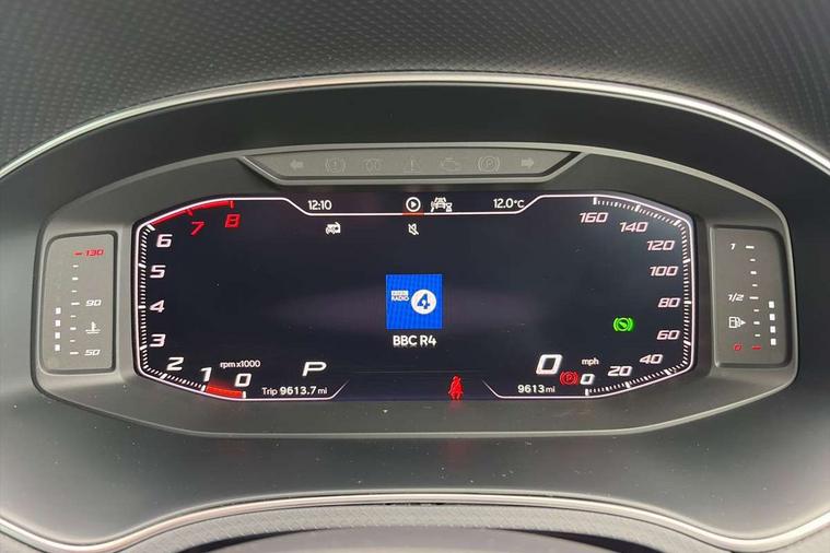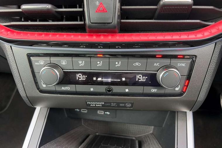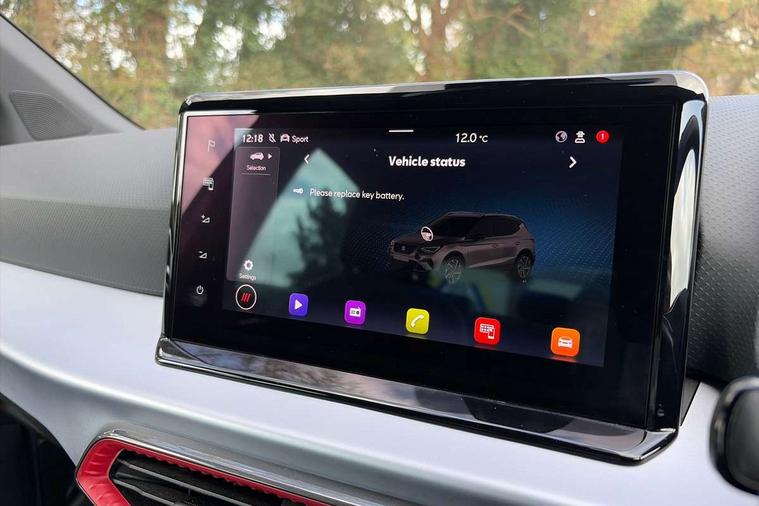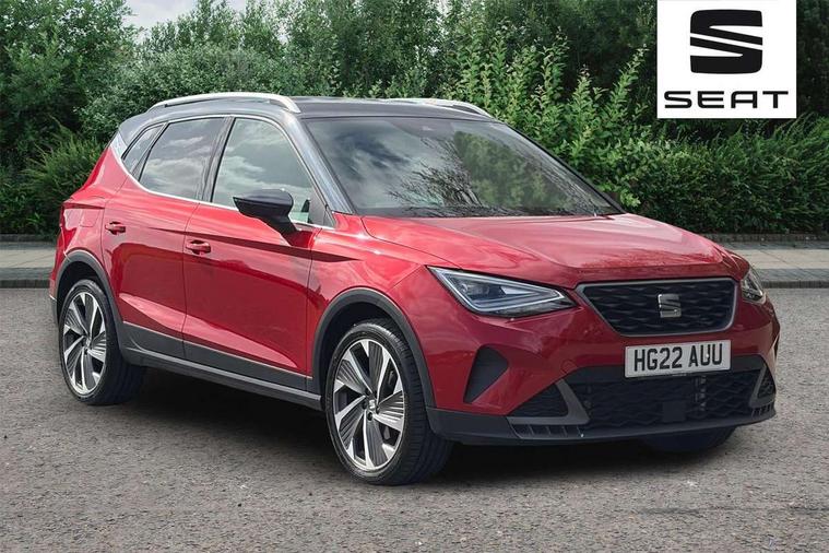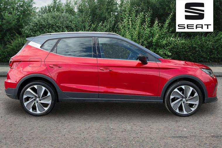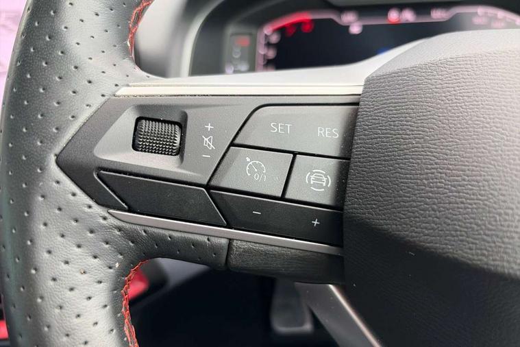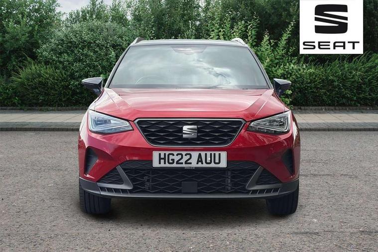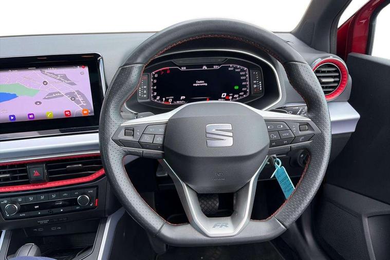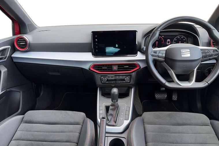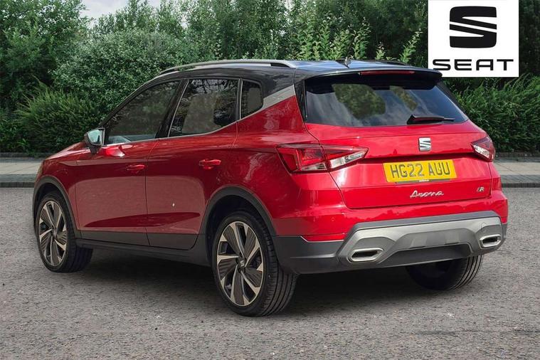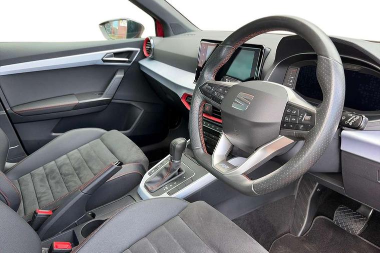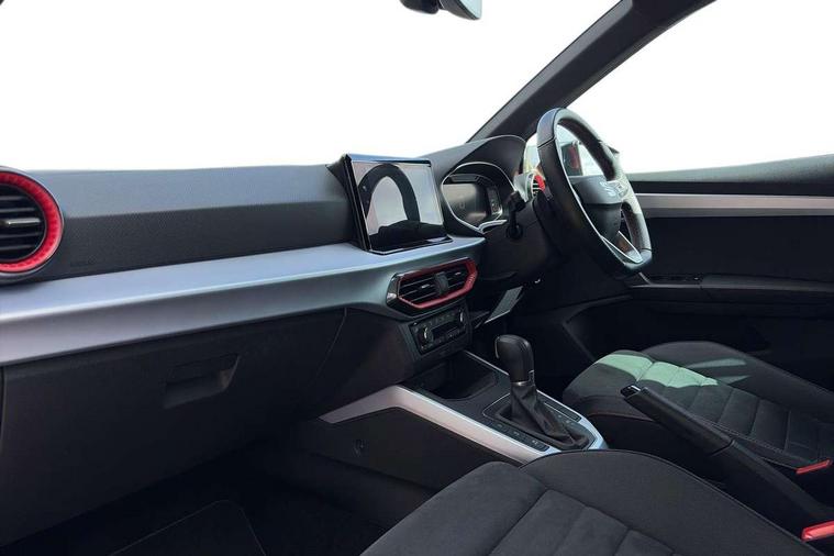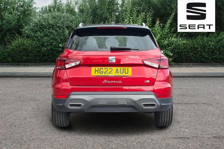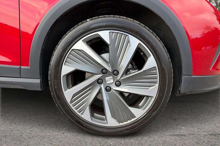 'Lights On' Reminder warning buzzer, 10" Digital cockpit, Digital clock, E-call, Electric speed sensitive power steering, Full Link Smartphone Integration with Mirror Link, Apple Car Play, Google Android Auto with USB Type C cable for Apple and Android compatibility, Low fuel warning light, Outside temperature display, Rear parking sensor, RPM counter, Seat connect with safety, service, remote and online, SEAT Drive profile - Four different models normal-sport-eco-individual, steering response, throttle response and gear shifts mode, Trip computer, Bluetooth interface for hands free and audio streaming, DAB digital radio and AM/FM radio, Steering wheel mounted audio controls, Anti theft roof antenna, Auto dimming interior rear view mirror, Automatic activation of hazard warning lights, Body coloured bumpers, Body coloured door handle inserts, Chrome roof rails and window surrounds, Dark tinted rear windows, Electric front/rear windows, Electrically adjustable, heated and folding door mirrors, Front fog lights with cornering function and rear fog light, FULL LED automatic headlights with dynamic headlight range control, coming and leaving home, LED daytime running lights, LED rear tail lights and licence plate lights, Protective side mouldings, Rain sensing wipers, Rear side wing doors, Rear spoiler, Rear window wash/wipe, Roof colour door mirrors, Third brake light, Twin exhaust pipe styling hidden exhaust pipe, Visible VIN plate, Windshield wiper with intermittent control and potentiometer, 2 cupholders, 3 seat bench in 2nd row, 60/40 split folding rear seat, Aircare filter, Black interior roof, Double boot floor, Driver sunvisor with covered mirror + card holder, Dual zone climate control, Front comfort seats, Front courtesy light with 2x front and 2x rear reading lights, Front seat back storage pockets, Gear shift indicator, Heated front seats, Height adjustable front seats, Height/reach adjustable steering column, Illuminated boot, Instrument lighting with brightness control, Interior ambient lighting, Interior light in footwell, central console and door panel, ISOFIX points in outer rear seats with top tether anchorage points, Microsuede cloth upholstery, Passenger sunvisor with vanity mirror, Perforated flat bottomed leather steering wheel/gear knob/handbrake with red stitching and FR logo, Single front passenger seat, Steering wheel mounted gearshift paddles, Two front and three rear height adjustable headrests, Connectivity pack plus - Arona, Interior chrome pack - Arona, 3 point seatbelts on all rear seats, ABS, Active front headrests, Child locks on rear doors, Driver and front passenger airbags with front passenger airbag de activation, front side and curtain airbags, Electronic stability control, Emergency Brake Assist (EBA) and front assist, Front and rear seatbelt reminder, Hill hold control, Multi-Collision braking, Tiredness recognition system, Traction control, Tyre pressure monitoring system, Alarm with back-up horn, Electronic engine immobiliser, Locking wheel bolts, Remote central locking + deadlocks, Tow away protection, Titan black dashboard, 18" Performance Cosmo grey matt alloy wheels,