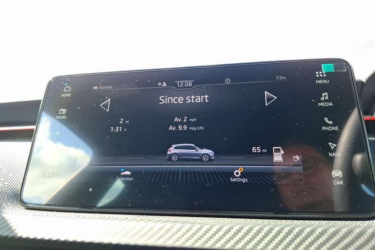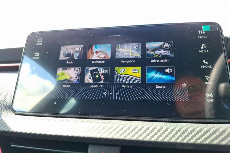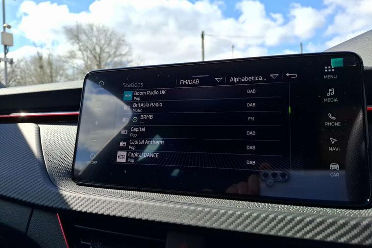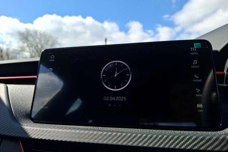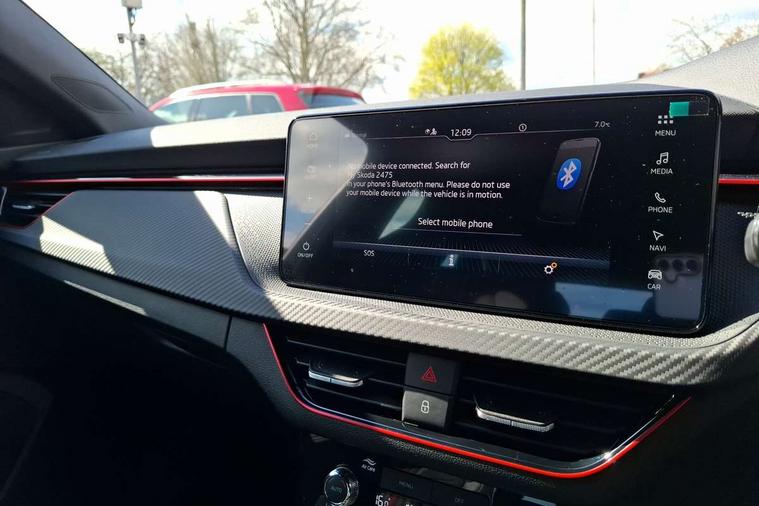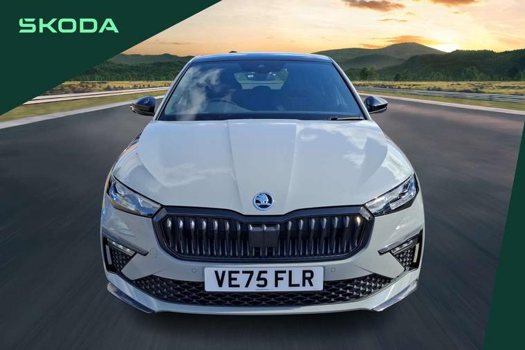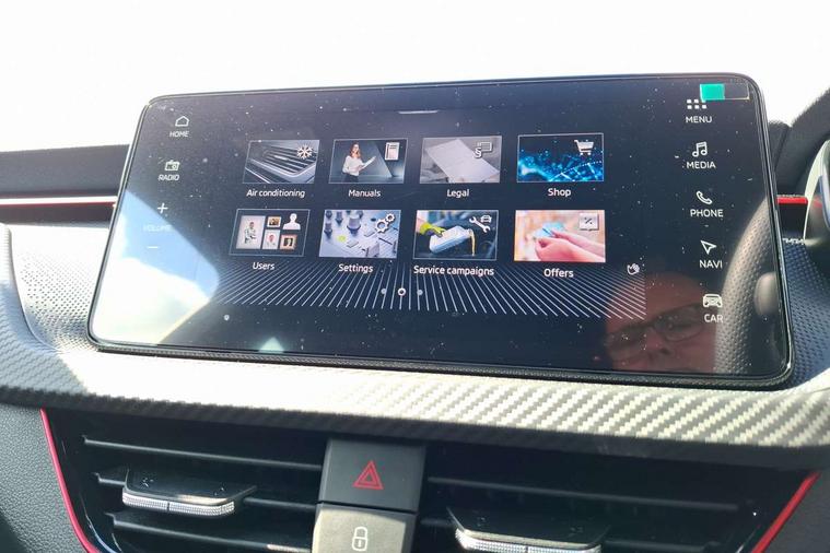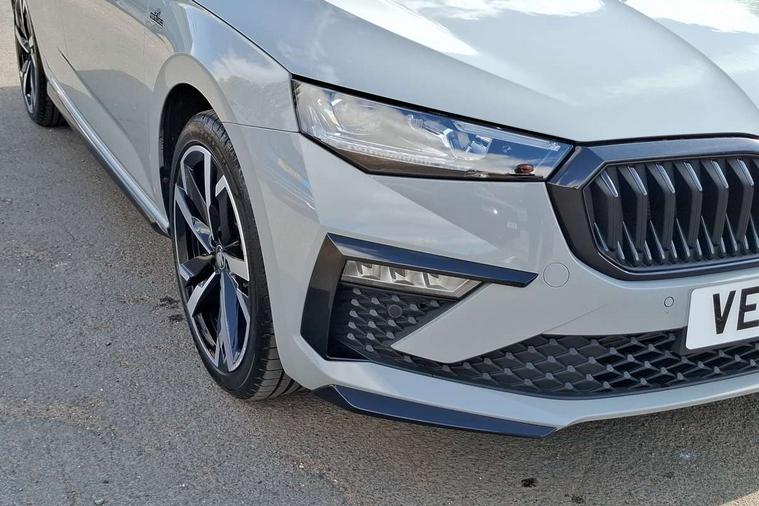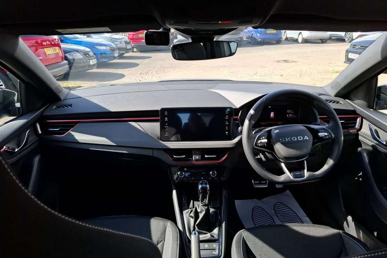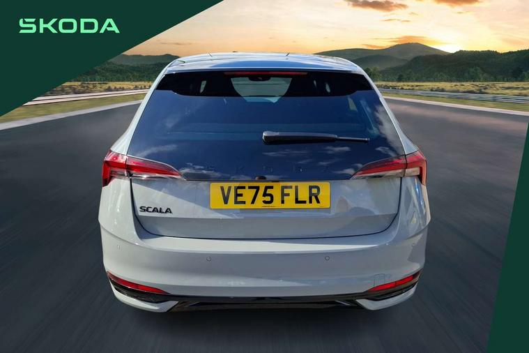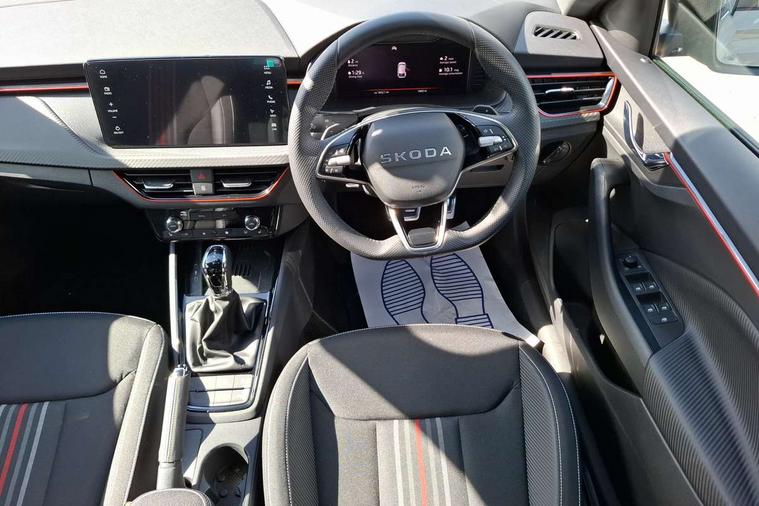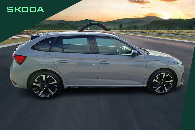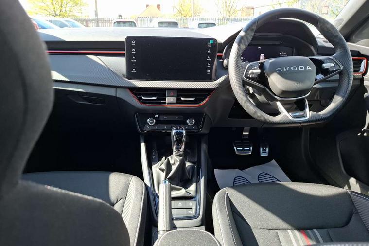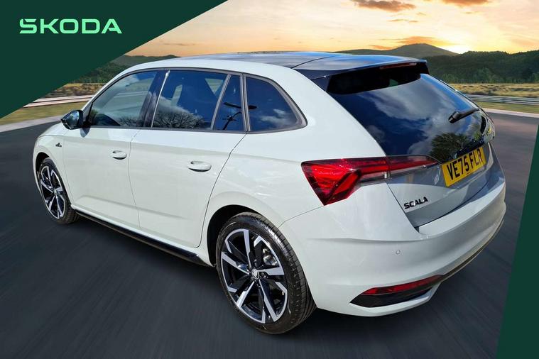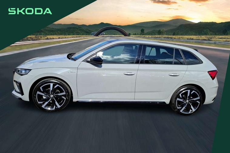 Advanced driver attention and drowsiness monitor, Bluetooth, e-Call (emergency call), Front assist system, PAS, Rear parking sensors, Rear view camera, Speed limiter, Tailgate, Traffic sign recognition, Virtual Cockpit - 10.25" digital display, Voice control system, Wireless smartlink, Drive mode select with Sport Chassis Control and ECO mode, 4 USB C ports, 8 Speakers, 9.2" Skoda navigation display, DAB radio, Auto dimming rear view mirror, Automatic headlight control with manual coming and leaving home feature, Automatic intermittent wipers, Black door mirrors, Black lettering on boot lid, Black radiator grille, Black rear diffuser, Black roof spoiler, Black window frames, Body colour bumpers, Body colour door handles, Extended tailgate glass, Front and rear electric windows, Heated rear window, LED 3rd brake light, LED daytime running lights, LED high beam, LED low beam, Light sensors, Monte carlo plaque, Panoramic glass roof, Privacy glass, Rear LED fog light, Rear side wing doors, Rear wiper, Tinted windows, Unique dark chrome design logo on alloy wheels, 12V socket in luggage compartment, 3 seat bench in 2nd row, Aluminium pedals, Ambient lighting in white/red, Black / White armrest stitching, Black roof headlining, Cargo elements, Chrome inner door handles, Door inserts in art.leather carbon, Driver and passenger sun visors with vanity mirror, Dual zone climate control, Front and rear roof lights, Front centre armrest, Front head restraints, Height adjustable driver seat, Height adjustable passenger seat, Ice scraper, Illuminated glove compartment, Inner circulation control with pollen filter, ISOFIX for front passenger seat, Isofix preparation for back seats, Leather gearknob and handbrake lever, Luggage net under rear parcel shelf, Manual lumbar support for front seats, Monte Carlo cloth upholstery, Net package and top tether hooks in boot space, Pocket on the back of both front seats, incl. mobile phone pockets, Rear centre armrest, Red hotstamping, Single front passenger seat, Skoda lettering on steering wheel, Sport seats, Textile floor mats, Third rear headrest, Ticket holder, Top tether for front passenger seat, Umbrella in driver's door, Light and view plus pack - Scala, 3x3 point rear seatbelts, ABS, Child locks, Curtain airbags and front side airbags, Disc brakes, Driver and front passenger airbags, ESP, Hill hold control, Manual leather parking brake, One tone horn, Passenger airbag switch off function, Seatbelt reminder for driver and front passenger, Tyre pressure monitoring system, Anti theft alarm system with interior monitoring, backup horn and towing protection, Anti-theft wheel bolts, Remote central locking with 2 remote folding keys, SAFE function for remote central locking, Carbon effect decorative inserts, 18" Ursa black diamond cut alloy wheels,