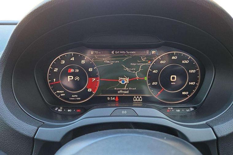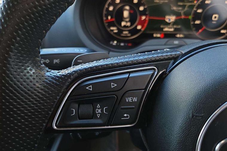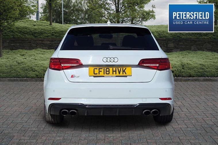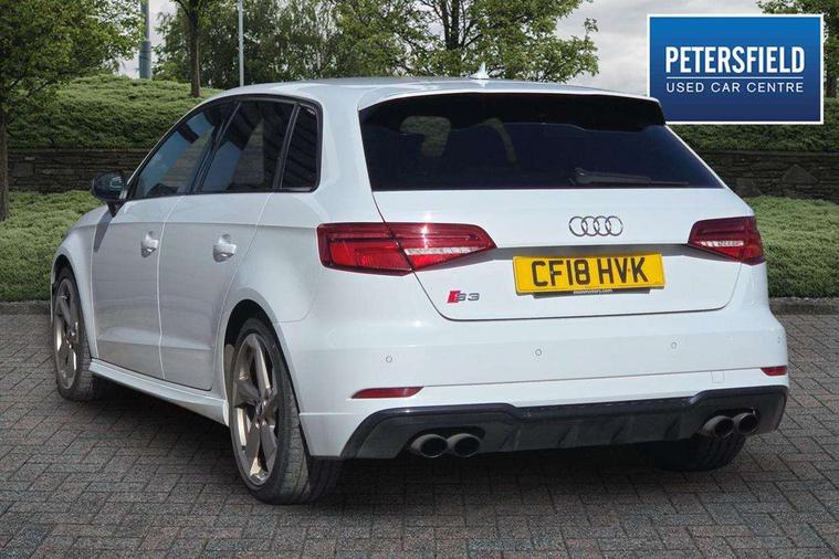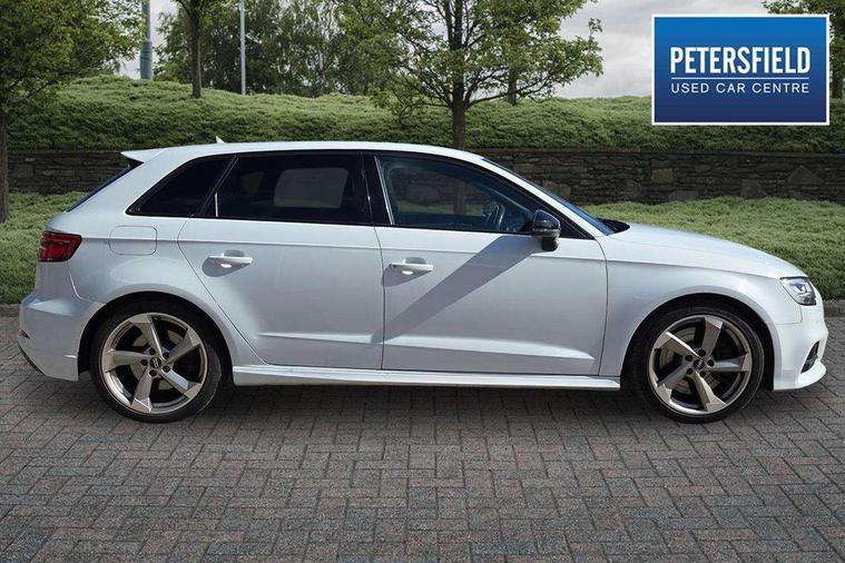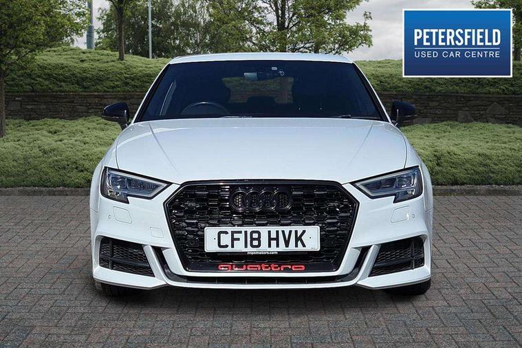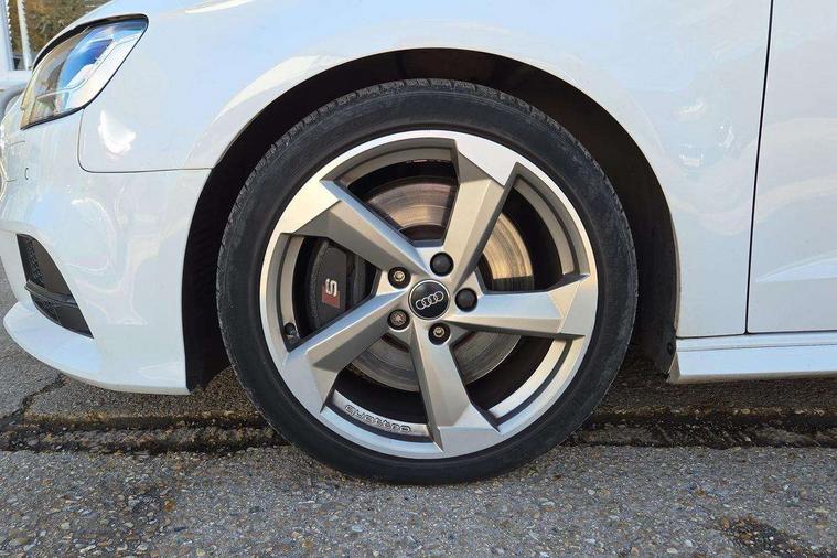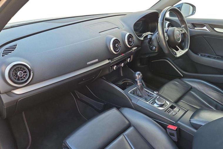 Audi connect, Audi drive select, Audi smartphone interface, Colour driver's information system display, HDD satellite navigation system radio single CD/DVD player MMI control system, Mobile telephone preparation - bluetooth interface, Progressive power assisted steering, Service interval indicator, Speed limit display, Voice control system, S sports suspension, 2 USB ports, Audi music interface, Auxiliary input socket, Bang + Olufsen advanced sound system, CD player, DAB Digital radio, MMI radio plus with 7" colour MMI screen and MMI controller, Auto dimming rear view mirror with light and rain sensors, Black door mirrors, Black window surrounds, Body colour bumpers with black insert, Body colour roof spoiler, Electric front windows, Electric operated/heated door mirrors, Electric rear windows, Headlight washers, Heated windscreen washer jets, LED daytime running lights, Matt black radiator grille, Platinum grey radiator grille with double chrome bars, Privacy glass, Rear wiper, S body styling, Twin oval chrome trimmed exhaust tailpipes, 3 adjustable rear headrests, 3 spoke flat bottomed multi-function leather steering wheel, 4 lashing points to secure luggage, Adjustable front armrest, Dual zone electronic climate control, Front and rear interior lights with delay, Front passenger seat isofix location point, Front/rear floor mats, Heated front seats, Height/depth adjustable steering column, Illuminated glovebox, ISOFIX child seat preparation+airbag deactivation, Jack and tool kit, Rock grey headlining, Stainless steel pedals, Steering wheel gearshift paddles, Storage compartment in centre console, Storage compartment under front seats, Storage compartments in doors, Black styling pack - A3/S3, LED interior light pack - A3/RS3, Non smoking pack - A3, Storage and luggage pack - A3/RS3, 3 point seatbelts on all seats, ABS/EBD, Active bonnet, Active front headrests, ASR, Curtain airbags, Driver and passenger side airbags, Driver/Front Passenger airbags, Drivers knee airbag, EDL, Electromechanical parking brake, ESC - Electronic Stability Control + traction control, Front passenger airbag deactivation, Hill hold assist, Manual rear child locks, Multi-Collision braking, Seatbelt warning, Tyre pressure warning, Warning triangle and first aid kit, Anti theft alarm, Anti-theft wheel bolts, Remote control central locking, Thatcham category 1 alarm + immobiliser, Aluminium air vent surrounds, Aluminium trim elements, Matt brushed aluminium inlays, Space saver spare wheel,