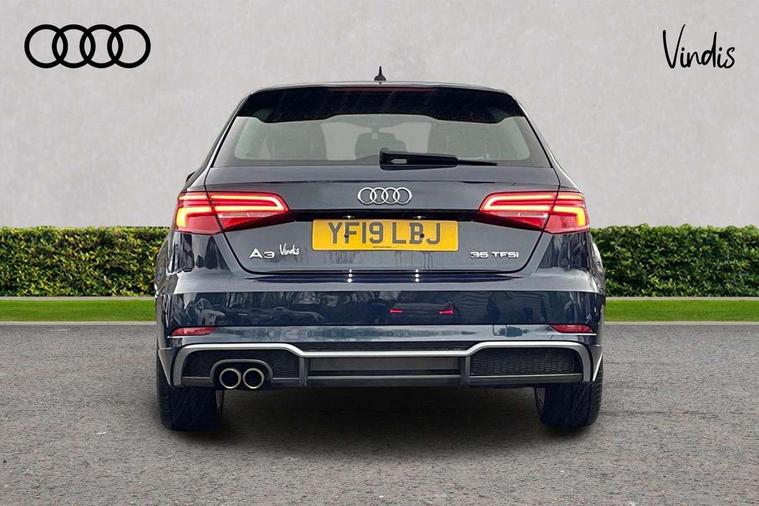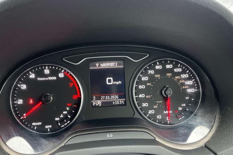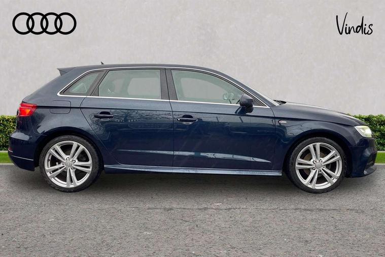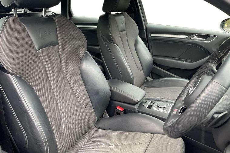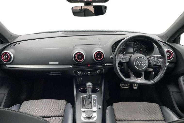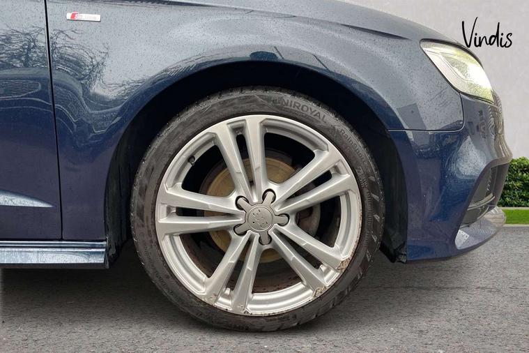Audi connect, Audi drive select, Audi smartphone interface, Automatic start/stop system, Colour driver's information system display, Electro - mechanical power assisted steering, Mobile telephone preparation - bluetooth interface, SD card based satellite navigation system, Service interval indicator, Speed limit display, Voice control system, Voice recognition for navigation system, 2 USB interfaces and Aux-In jack, Audi music interface, CD player, DAB Digital radio, MMI radio plus with 7" colour MMI screen and MMI controller, Aluminium window trim, Auto dimming rear view mirror with light and rain sensors, Body colour door mirrors, Chrome exhaust tailpipes, Electric front windows, Electric rear windows, Electrically adjustable and heated door mirrors with integrated LED side indicators, Heated windscreen washer jets, LED daytime running lights, Matt black radiator grille, Rear wiper, S line badges on front wings, S Line body styling with front & rear bumpers and side skirts, radiator grille and rear diffuser insert, roof spoiler, Sport specific side air inlet grille and diffuser insert, 3 adjustable rear headrests, 4 lashing points to secure luggage, Adjustable front centre armrest, Black cloth headlining, Dual zone electronic climate control, Front and rear interior lights with delay, Front/rear floor mats, Glovebox light, Height and reach adjustable steering wheel, Illuminated door sill trims with S logo, Isofix child seat preparation for front passenger/outer rear seats inc passenger airbag deactivation, Stainless steel pedals, Storage compartments in doors side trims, centre console and under front drivers seat, LED interior light pack - A3/RS3, Non smoking pack - A3, Storage and luggage pack - A3/RS3, 3 point seatbelts on all seats, ABS/EBD, Active bonnet, Active front headrests, Airbags - front driver/passenger, front & rear side, curtain, drivers knee, ASR, EDL, Electromechanical parking brake, ESC - Electronic Stability Control + traction control, Front passenger airbag deactivation, Hill hold assist, Manual rear child locks, Multi-Collision braking, Seatbelt warning, Tyre pressure warning, Warning triangle and first aid kit, Anti theft alarm, Anti-theft wheel bolts, Remote control central locking, Thatcham category 1 alarm + immobiliser, Aluminium air vent surrounds, Aluminium trim elements, Matt brushed aluminium inlays, Tool kit, Tyre repair kit,