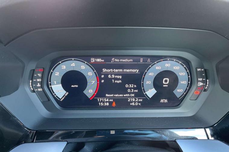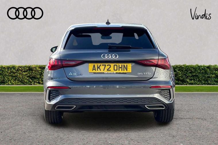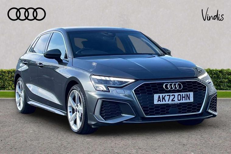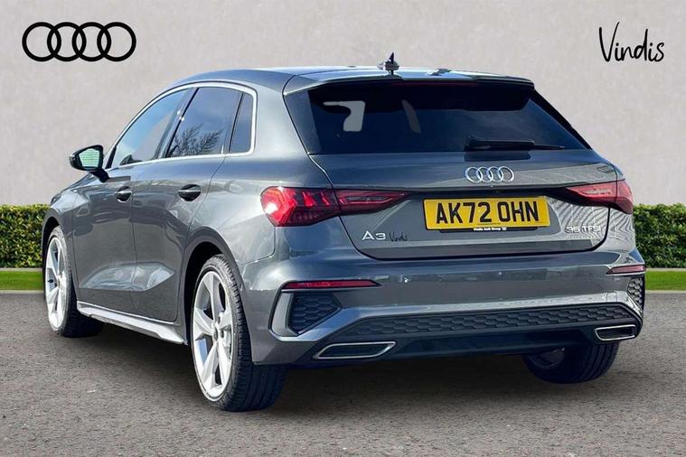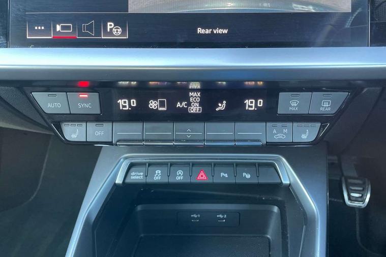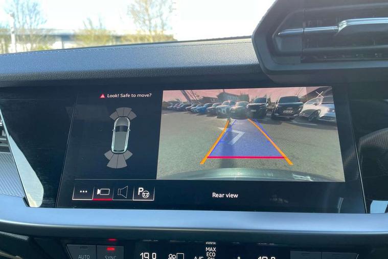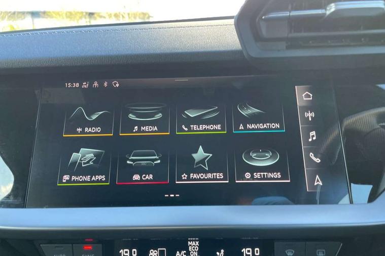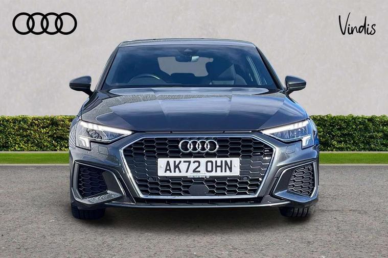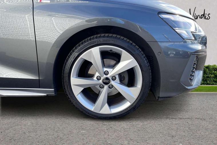 Audi drive select (Auto, Comfort, Dynamic, Efficiency and Individual), Audi smartphone interface, Audi Virtual Cockpit - 10.25" digital and colour instrument cluster, Automatic start/stop system with recuperation, Bluetooth interface, Collision avoidance assistant, Cruise control, e-Call (emergency call), Electromechanical power speed sensitive steering, Lane departure warning system, MMI Navigation Plus with high resolution 10.1" colour touch screen display, Rear parking sensors, Service indicator, Trip computer, Voice control system with natural language interaction, 2xUSB-C connection with data and charging functions, 6 passive loudspeakers, DAB Digital radio, 3rd brake light, Acoustic glass windscreen, Aluminium window trim, Auto dimming frameless rear view mirror, Electrically adjustable/heated/folding/auto dimming door mirrors with integrated LED indications + kerb view function for passenger side, Front electric windows, Illuminated aluminium inserts front door sills with S logo, LED daytime running lights, LED headlights with LED rear lights and dynamic rear indicators, Light and rain sensors, Privacy glass - dark tinted rear window, rear door and side windows, Rear electric windows, Rear side air outlets in grained matt black, Rear side wing doors, Rear wiper, S line bumpers, S roof spoiler, 12V socket and storage compartment in front centre console, 3 seat bench in 2nd row, 40/20/40 split folding rear seat bench with cupholder, Black cloth headlining, Dual zone electronic climate control, Front and rear centre armrest in leather, Front and rear headrests, Front/rear floor mats, Height and reach adjustable steering wheel, Illuminated vanity mirror, Interior lighting - glove compartment light and right hand side, Luggage compartment floor covering, Manual boot compartment lid, Manually adjustable front seats, Seat side bolsters, Single front passenger seat, Stainless steel pedals and front footrest in black, Twin leather upholstery with front sports seats S embossed logo, Aluminium interior elements pack - A3 Sportback, LED interior lighting pack - A3 Sportback, S line styling pack - A3 Sportback, 3x3 point rear seat belts, Audi pre sense front, Driver and front passenger airbag with passenger airbag deactivation, Electronic Stabilisation Control (ESC) including ABS, ASR and EDL, First aid kit with warning triangle and 2 safety vests, Front side airbags with head airbags and interaction airbag, Pre-sense front with pedestrian and cyclist detection, Seatbelt monitoring, Tyre pressure loss indicator, Anti theft alarm, Anti-theft wheel bolts, Electronically operated child lock, Immobiliser, Remote control central locking, Accent surfaces in the dashboard and centre console in platinum grey silk effect paint finish, Dark spectrum aluminium inlays,
