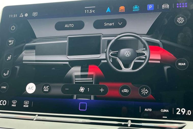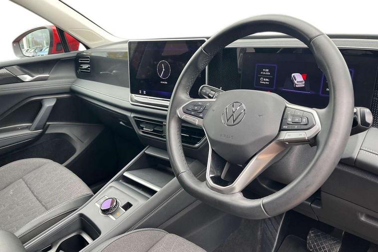 Adaptive cruise control (ACC), Advanced driver attention and drowsiness monitor, Bluetooth mobile phone interface, Car2X technology, Digital Cockpit Pro - 10.25" high resolution dash display screen with customisable menus and information, Dynamic road sign display, E-Sim card for online connectivity, eCall emergency call service, Front Assist - Autonomous emergency braking with pedestrian and cyclist monitoring, Lane change system, Side assist, Rear traffic alert and Exit warning system, Lane keeping system Lane Assist, Multifunction front facing camera, Oncoming vehicle braking when turning including swerve support, Park assistance plus with front and rear parking sensors, Power assisted steering with speed sensitive, Start/stop system with regenerative braking, Warning signal and warning light for front and rear seatbelts not fastened, Wireless App-Connect, Adaptive chassis control DCC pro includes driving mode selection, Charging cable Mode 3 Type 2 / 3 (16A), Front shock absorption, Front wheel drive, Rear shock absorption, Digital radio reception (DAB), Diversity antenna for FM reception, Ambient lighting with logo projection, Auto dimming interior rear view mirror, Automatic headlight control system, Body coloured bumpers and air intake with chrome trim, Body coloured door handles, Body-coloured exterior mirror housings, Coming/leaving home lighting function, Heat insulating glass in side and rear windows, Heat insulating windshield, Heated rear window, High level 3rd brake light, Illuminated door handle recesses, Illuminated lightline between headlamps, Rain sensor windscreen wipers, Rear fog light on one side, reversing light on both sides, Rear side wing doors, Rear wiper, 12V outlet in center console rear and in luggage compartment, 12V socket in centre console, 3 bench rear seats in 2nd row, Air care climatronic 3 zone air conditioning system with rear air conditioning control panel, Carpet mats, front and rear, Ceramique headlining, Door and side trim panel in foam film and woven fabric, Front centre armrest, ISOFIX anchors for child seats on outer rear seats and front passenger seat compatible with i-Size, Mechanical rear seat release, Power adjustable lumbar support in front, Rear bench seat, split folding, longitudinally movable and folding with load-through hatch and centre armrest, Safety optimised front head restraints, Single front passenger seat, Sun visors with illuminated vanity mirrors, Three rear head restraints, Variable luggage compartment floor, Comfort package incl. Memory feature for Park assist and Safelock - Tiguan, Design package - Tiguan, 3 point seat belt for centre rear seats, 3 Point seat belts in front with pretensioners, 3 point seatbelts in outer rear with ECE label, Driver and front passenger airbag with front passenger airbag deactivation, Electronic parking brake with auto hold, Front and rear curtain airbags, Front and rear side airbags, Front centre airbag, Front disc brakes, Hill start assist, Manual child proof rear door locks, Rear disc brakes, Two tone horn, Warning triangle, Anti theft wheel bolts, Soul instrument panel, Tool kit for tyre mobility set, Tyre mobility kit including compressor and sealing foam,