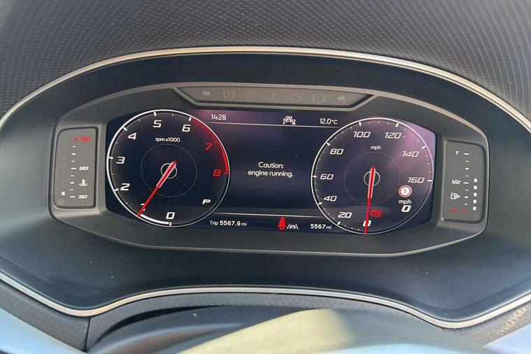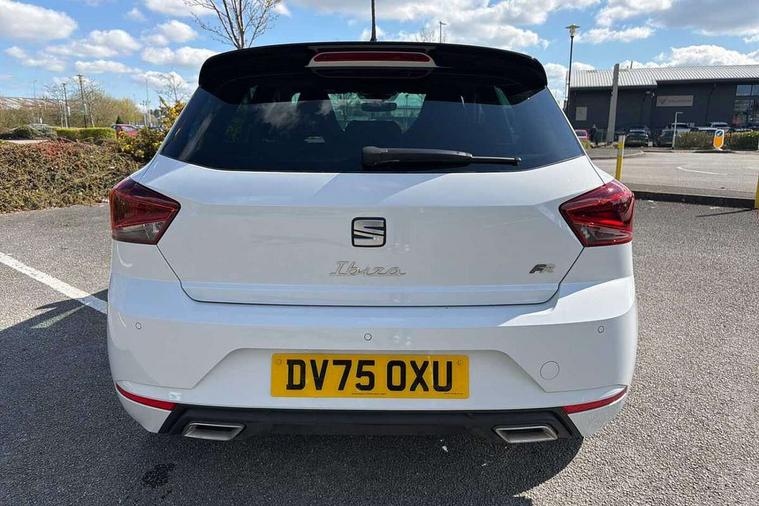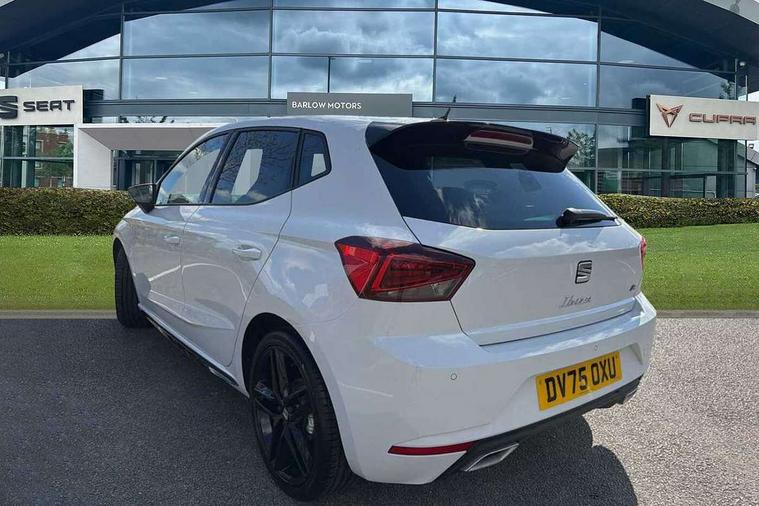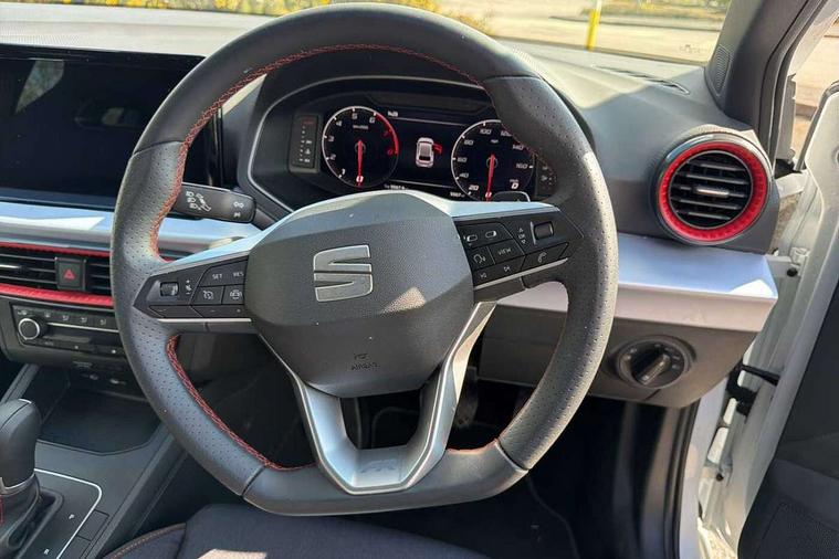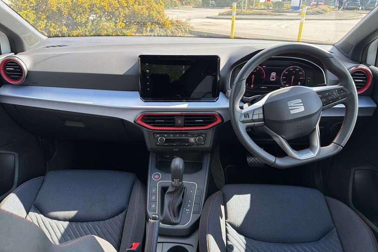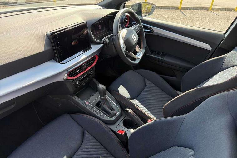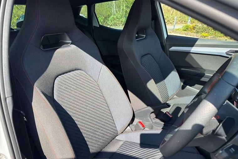 'Lights On' Reminder warning buzzer, 10" Digital cockpit, 9.2" touchscreen navigation system with type C USB socket, Voice control and DAB/AM/FM radio, Auto start and stop system, Bluetooth audio streaming with handsfree system, Digital clock, E-call, Full link smartphone integration with mirror link, wireless apple carplay, Google android auto + USB Type C cable for apple and android devices, Lane assist, Low fuel warning light, Outside temperature gauge, Power Steering, Rear parking sensor, Seat connect plus with safety, service, remote and online, SEAT drive profiles and ECO function, SEAT logo boot release, Speed limiter, Traffic sign recognition, Trip computer, Sports suspension, Auxiliary input socket, Radio/MP3 player, SD card slot, Steering wheel mounted controls, Anti theft roof antenna, Auto dimming rear view mirror, Automatic rain sensing wipers, Black door mirror caps, Black roof spoiler, Black side skirts, Body colour bumpers, Body colour door handles, Brilliant black window surrounds, Dark tinted rear windows, Electric adjustable/heated/folding door mirrors, Electric front windows, Electric headlight adjustment, Electric panoramic sunroof, Electric rear windows, Front/rear fog lights, FULL LED automatic headlights with dynamic headlight range control, coming and leaving home, LED daytime running lights, LED 3rd brake light, LED tail lights, Rear roof spoiler with FR twin exhausts, Rear side wing doors, Rear wiper, 3 seat bench in 2nd row, 60/40 split folding rear seat, Ambient interior lighting, Chrome detailing and black headlining, Dual zone climate control with combination filter, Front courtesy lights, Front cupholders x 2, Front reading lights, Front sport bucket seats, Gear shift indicator, Glovebox, Heated front seats, Height adjustable front and rear headrests (five), Height adjustable front seats, Height/reach adjust steering wheel, Illuminated air vent surrounds, Illuminated boot, Instrument lighting with brightness control, Isofix, Leather multifunction flat bottomed sports steering wheel with gearshift paddles, Microsuede cloth upholstery, Passenger sunvisor, Single front passenger seat, Storage pockets on back of front seats, Sunvisors with mirror and driver side card holder, Safety and driving pack (S) - Ibiza, ABS, Active front headrests, Child locks on rear doors, Electronic stability control, Energy recovery system, Front driver and passenger side airbags with curtain airbag and front passenger airbag deactivation, Hill hold control, Multi-Collision braking, Seat belt reminder for front and rear seats, Tiredness recognition system, Tyre pressure monitoring system, KESSY Keyless entry and go, Locking wheel bolts, Perimeter alarm and interior monitoring with backup horn and tow away protection, Remote central locking + deadlocks, 18" Performance alloy wheels in glossy black,