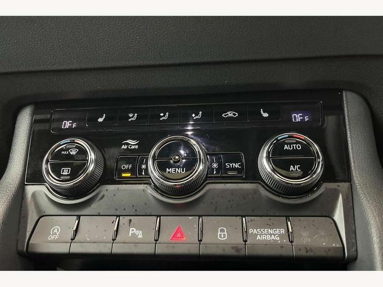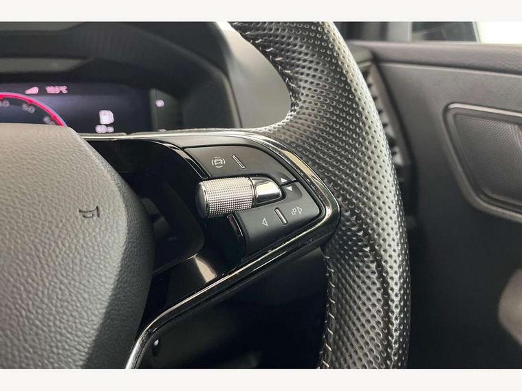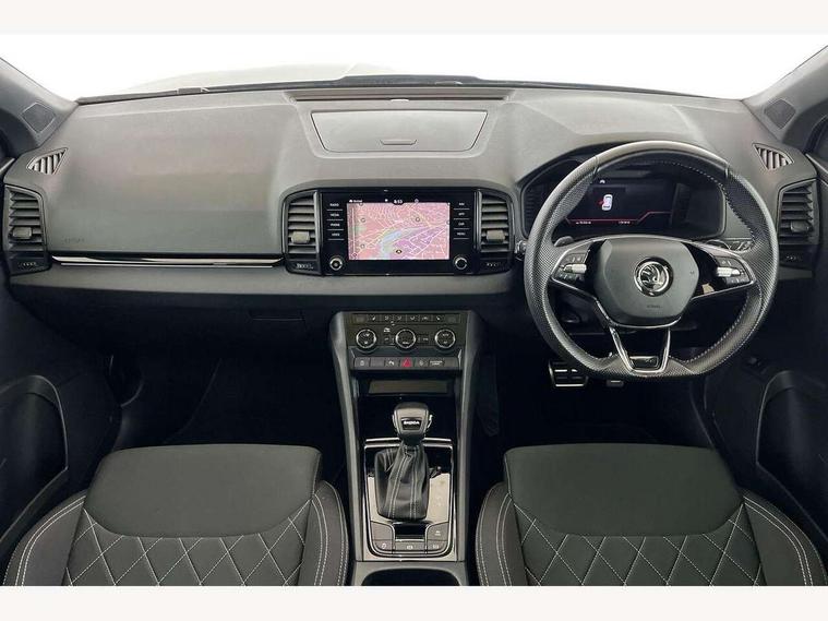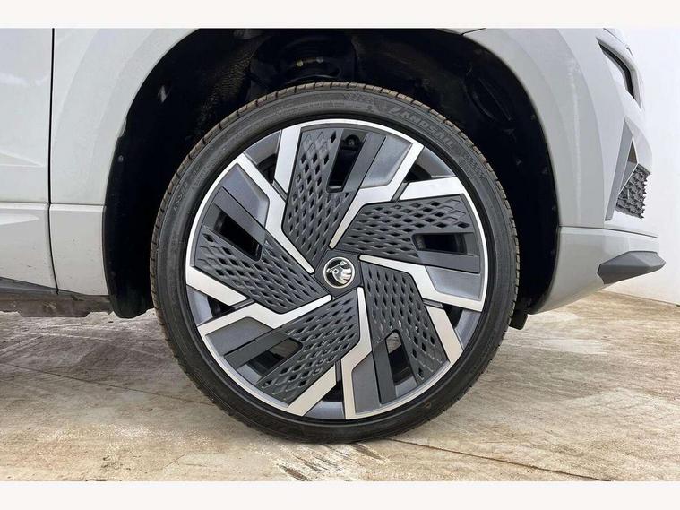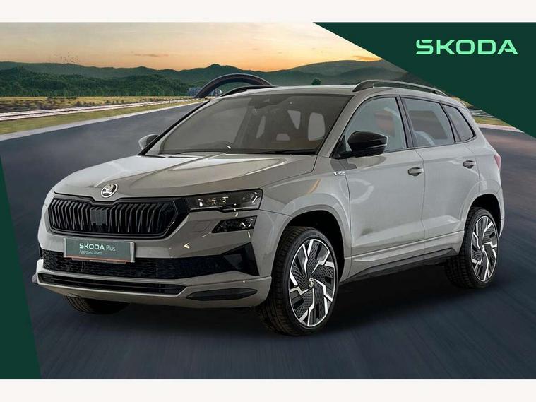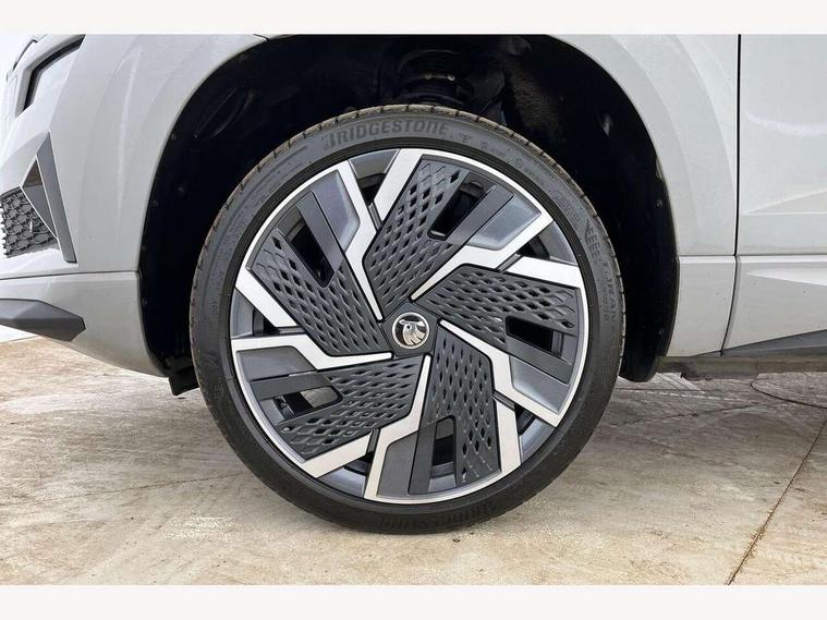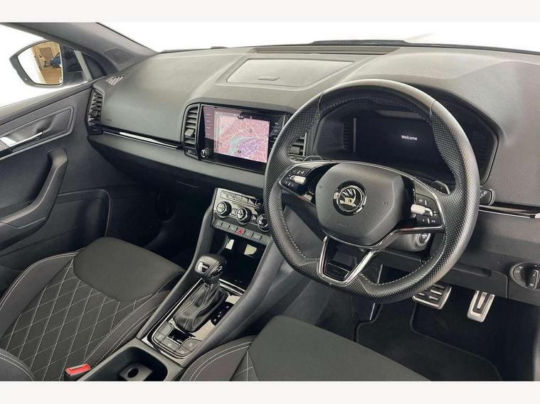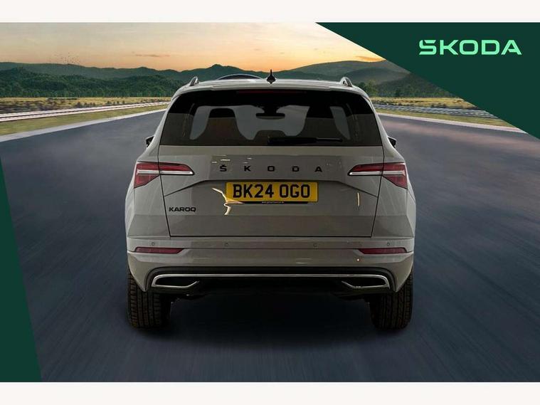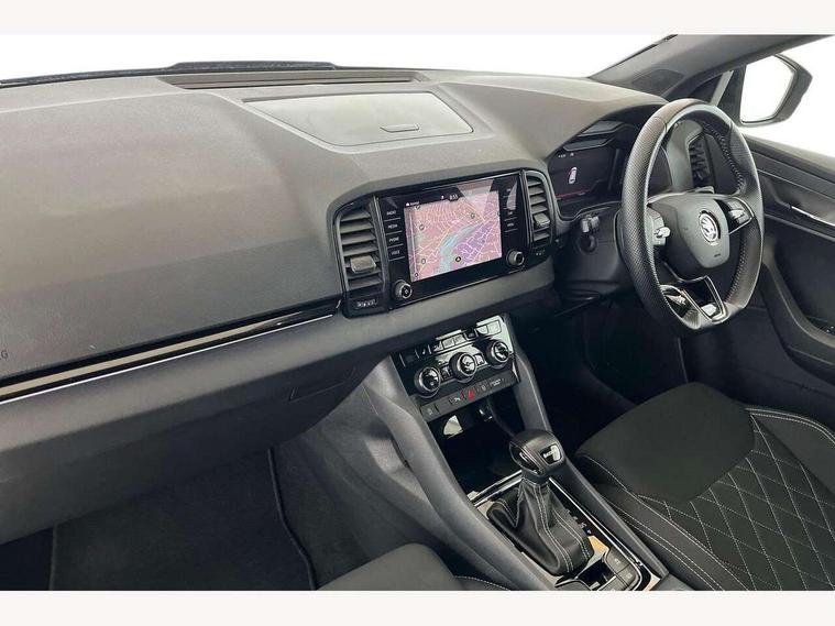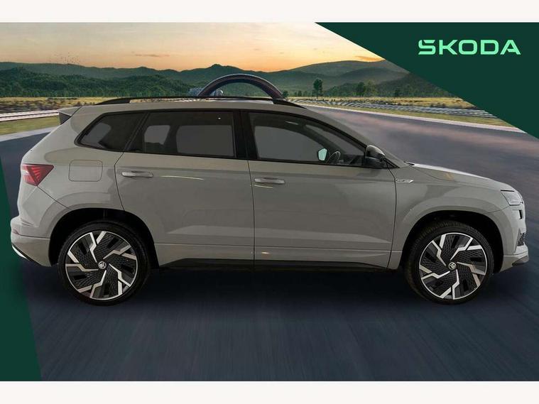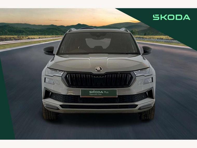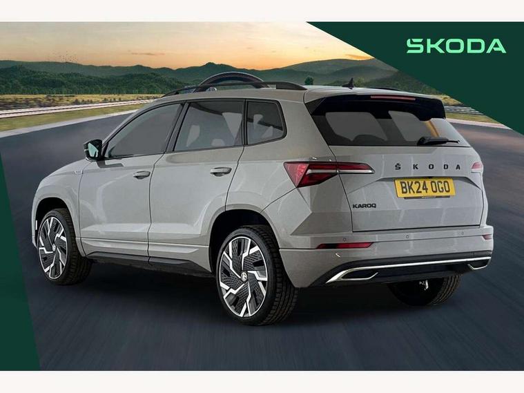 8" Digital display, Advanced driver attention and drowsiness monitor, Emergency services call system, Outside temperature gauge, Sensor for driver assistance systems, Service interval indicator, SmartLink wireless for Apple and wired for Android, Start/stop system with regenerative braking, USB C Port x 2 in front centre console, Virtual Cockpit - 10.25" digital display, Virtual pedal with electrically operated boot door, Wireless smartphone charging, Canton sound system, DAB radio with Bluetooth, USB connection, Acoustic glass, Aero front windscreen wipers with intermittent function, Auto dimming rear view mirror with light and rain sensors, Black door mirrors, Black electric window control buttons, Black radiator grille, Black roof rails, Body colour door handles, Electric front and rear windows with child proof lock, Front door steps with SportLine logo, Heated rear windscreen, LED 3rd brake light, LED daytime running lights, LED rear lights with high functionality welcome effect and dynamic indicators, Light assistant (coming/leaving home/tunnel light), Panoramic sliding sunroof, Plastic scuff plates in door apertures, Privacy glass, Protective door side sills in body colour, Rear diffuser, Rear side wing doors, Rear spoiler, Rear window wiper with washer system and intermittent control, Safety reflectors on front doors, Skoda lettering on tailgate in black, Sportline badge on front fender, Sportline decorative inserts with badging, Sports front and rear bumpers, 1.5 litre bottle holders in driver and front passenger door panels, 12V socket in boot, 12v socket in front centre armrest with storage compartment and rear air vents, 2 x Tablet holder, 3 rear height adjustable headrests, 3 seat bench in 2nd row, 3 spoke leather sports multifunction steering wheel and silver stitching with gear shift paddles, 4 foldable roof handles with rear coat hooks, Black floor carpet, Chrome inner door handles, Double sided boot floor, Foldable hooks in the boot, Front head restraints, Height adjustable front three point seats belts with tensioners, Height/reach adjust steering wheel, Ice scraper, Illuminated glovebox, Illuminated luggage compartment, Isofix child seat preparation for front passenger seat, Isofix child seat preparation outer rear, Manual lumbar support for front seats, Pen holder, Pollen filter, Rear boot cover, Rear reading lights, Rear seats fixed folding and divided 60:40, Rubbish bin door, Safety vest holder, Single front passenger seat, Storage box in upper central dashboard closed, Sunvisors with illuminated vanity mirrors, Textile floor mats, Ticket holder, Titan black interior ceiling, Umbrella under passenger seat, Under passenger seat storage compartment, Welcome animation with sportline logo, Light Pack - Karoq, Non Smokers pack, Automatic door unlocking in case of crash, Automatic fuel cut off in case of crash, Driver airbag, Electronic parking brake with auto hold function, Emergency rear braking signal, ESC including ABS, MSR, ASR, EDS, HBA, DSR, RBS, MKB and traction control, Front side airbags, Head airbags, Hill hold control, Knee airbags, Passenger airbag with switch-off function, Pedestrian monitor, Seatbelt reminder signalisation and pretensioner for all seats, Three point seatbelts rear, Two tone horn, Tyre pressure monitor, Alarm with interior monitoring, back up horn and tilt sensor with safe function, Electronic engine immobiliser, Keyless entry and start/stop, Remote central locking with 2 remote folding keys, Black air vent surround, Black centre console, carbon door decor, Satin black dashboard, Satin black door trim, 19" Sagittarius anthracite alloy wheels, Anti-theft wheel bolts protection, Breakdown and tool kit,