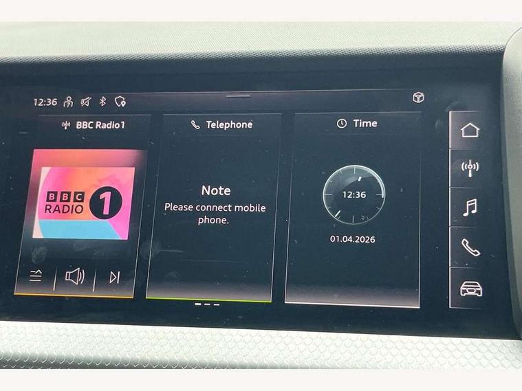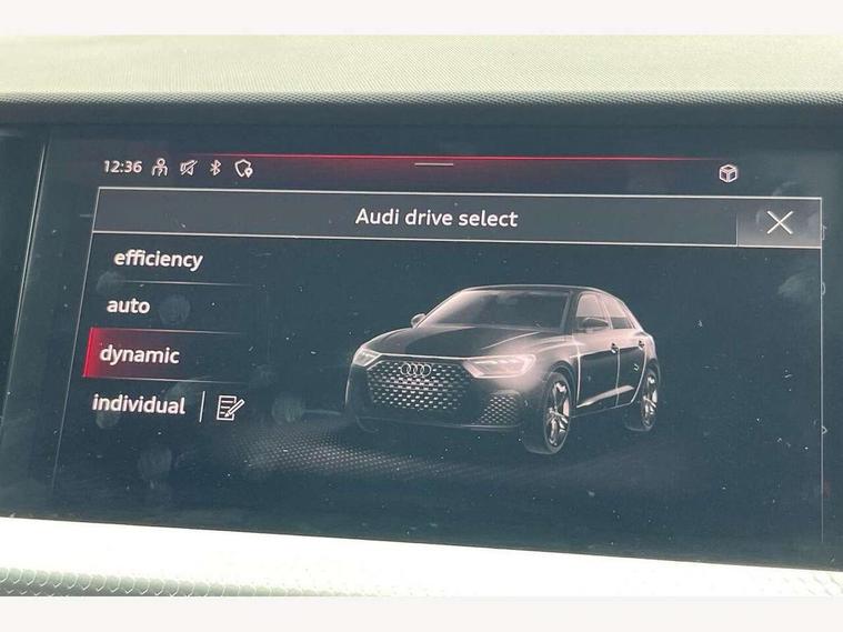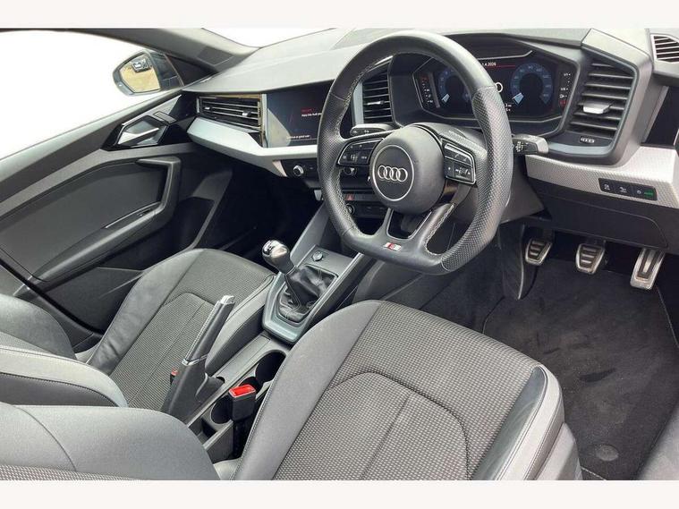 10.25" Digital instrument cluster display classis style instrument dials + speed, odometer, time, outside temperature, telephone menu + fuel level warning, Audi drive select - power steering assistance + engine, Audi smartphone interface with connect compatible smartphone via USB directly MMI display + Nav, music, third party apps controlled via MMI controller, Automatic start/stop system, Bluetooth interface, Cruise control, Driver's information system, Electromechanical power steering, Emergency e-call, Emergency services call system, Lane departure warning system, Service interval indicator, Speed limiter, Voice control system, Washer fluid level indicator, Sports suspension, 1 x SDXC card reader, 2 x USB type C connection points, DAB Digital radio, MMI radio plus with 8.8" colour MMI display screen and MMI touch, Auto dimming rear view mirror, Black door mirrors, Black side skirts, Body coloured bumpers, Door sill trims with aluminium inlays and logo, Electric front and rear windows, Electrically adjustable, heated, folding door mirrors with integrated LED side indicator, Front side air inlets in grained matt black and C frame in titanium black, Front wing badges, Heat insulating glass windscreen and side windows, Heated rear windscreen, High level LED brake light, LED headlights with LED rear lights + dynamic rear indicators + headlight adjustment and high beam, turning light + LED daytime running lights, Radiator protective grille frame in matt aluminium silver, Rain and light sensors, Rear diffuser strip in matt titanium black, Rear fog lights, Rear side wing doors, Rear wing door, Rear wiper, Side front spoiler lips in grained matt black, 12V socket in centre console with two cup holders, 3 rear seats with headrests, 3 seat bench in 2nd row, 3 spoke flat bottomed multi-function plus leather steering wheel with S badging, grips in preforated leather and contrast stitching, 40:60 Split folding rear seat or folded fully, Black cloth headlining, Driver and passenger seat with manual height adjust with forward and backwards adjustment, Front and rear black floor mats with contrast stitching in fine silver, Front head restraints, Front passenger seat, Height and reach adjustable steering wheel, ISOFIX child seat mounting for front passenger and outer rear seats including top tether attachment point of outer rear seats, Leather gear knob with aluminium trim, Luggage compartment light with front and rear reading lights, Manually adjustable lumbar support in front seats, Stainless steel pedals, Black styling pack - A1 Sportback Black Edition, LED interior lighting pack - A1, Luggage compartment pack - A1, 3x3 point rear seatbelts, Brake assist function, Driver and front passenger airbag with front side and head airbags, Electronic Stability Control including ABS, EBD, ASR and EDL, Front passenger airbag deactivation switch, Hill hold assist, Manual rear child locks, Seatbelt height adjustment for front seats, Seatbelt monitoring, Tyre pressure warning light, Warning triangle and first aid kit, Anti theft alarm, Anti theft wheel bolts and loose wheel warning, Audi pre-sense front with pedestrain and cyclist recognition, Immobiliser, Remote central locking with 2 foldaway keys, Aluminium trim for control switches, air vents and digital instrument cluster, Silver grey inlays polygon structure in diamond paint finish, Structured grey accent areas including air vents, door handle recesses and centre console in quartz paint finish, 18" 7 spoke rotor design alloy wheels in gloss anthracite black, diamond cut finish,
