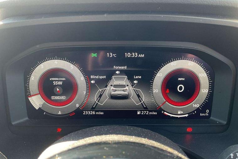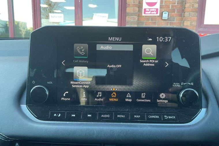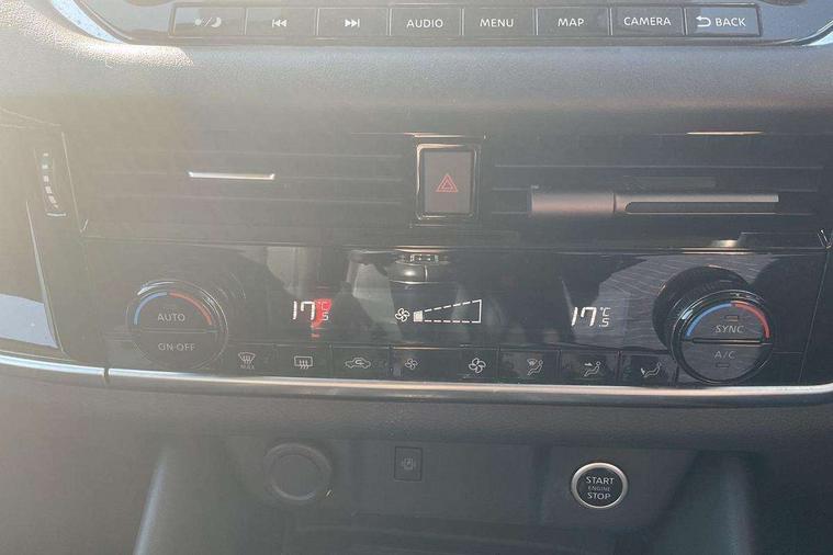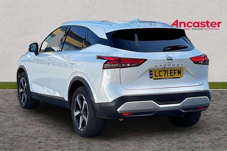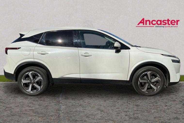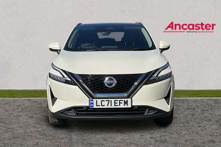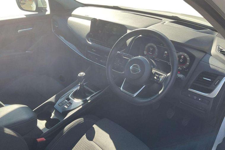 Blind spot warning, Drive modes (sport, normal, eco), Electric speed sensitive power steering, Emergency and breakdown call, Front and rear parking sensors, Full Digital 12.3" TFT Digital Combimeter, Idle stop/start system, Intelligent Cruise control (ICC), Intelligent driver alert system, Intelligent forward collision warning, Intelligent lane intervention, Lane departure prevention, Lane departure warning system, Moving object detection, Push button starter, Rear cross traffic alert, Traffic sign recognition with legal speed adjustment, Trip computer, 6 speakers, AM/FM audio system with DAB, Bluetooth audio streaming, Front USB connections (Type-A and Type-C), Rear USB charging only ports (Type-A and Type-C), 3rd brake light, Auto dimming rear view mirror, Auto rear wiper when reversing, Body colour mirror caps, Body coloured door handles, Bodyside mouldings, Chrome side window finisher, Electric auto folding door mirrors, Electrically adjustable and heated door mirrors with LED turn indicator, Fixed panoramic glass roof with electric sunshade, Follow me home headlights, High beam assist, Intelligent auto headlights, LED daytime running lights, LED rear lights, One touch front and rear electric windows with remote opening and closing, Partially body coloured bumpers, Privacy glass, Rain sensor, Rear roof spoiler, Rear side wing doors, Rear styling plate, Roof rails, Shark fin antenna, Splash free rain sensing wipers, Super UV and infrared cut glass, Three blink turn signal, 12v power socket in dashboard and luggage, 2 way electrical driver lumbar adjustment, 2x Rear coat hooks, 3 bench rear seats in 2nd row, 3 rear headrests, 4 grab handles, 6 Luggage hooks - 4 on floor, 2 on side, 60/40 split folding rear seat bench, Ambient lighting around centre console, Centre console storage tray, Chrome interior door handles, Cloth monoform upholstery, Driver and front passenger sunvisors with illuminated vanity mirrors, Driver seat back pocket, Dual zone automatic climate control with pollen filter, Front centre console and armrest, Front cupholder, Front door with bottle holders, Glovebox with light, Hard trunk cover, Height adjustable driver's seat, Height adjustable front headrests, Leather shift knob, Leather steering wheel, Luggage board system, Luggage space lighting, Manually adjustable passenger (slide recline + lifter), Multifunction steering wheel, Passenger seat back pocket, Rear armrest with 2 cupholders, Rear door bottle holders, Single front passenger seat, Soft PVC kneepad, Steering wheel switches, Tilt/telescopic adjustable steering wheel, Two rear isofix child seat anchorage points with top tether, Welcome light and console tray ambient lighting, Connectivity Pack - Qashqai, Tech Pack (Drive Assist + HUD), 3x3 point rear seatbelt pretensioners + load limiters, ABS, ESP, EBD and brake assist, Active brake limited slip, Auto hold function, Child locks on rear doors, Curtain and front side, far side airbags, Driver and passenger airbags, Driver, passenger and 2nd row rear seat belt reminder, Electronic parking brake, Front seatbelt pretensioners + load limiters, Height adjustable front seatbelts, Hill start assist, Intelligent blind spot intervention, Intelligent front emergency braking with pedestrian, cyclist recognition and junction assist, Intelligent rear automatic braking, Tyre pressure monitoring system, Vehicle dynamic control, Capless fuel filler, Engine immobiliser, Nissan i-key, Remote central door locking with deadlocking, Thatcham Cat.1 alarm, 18" Diamond cut alloy wheels,