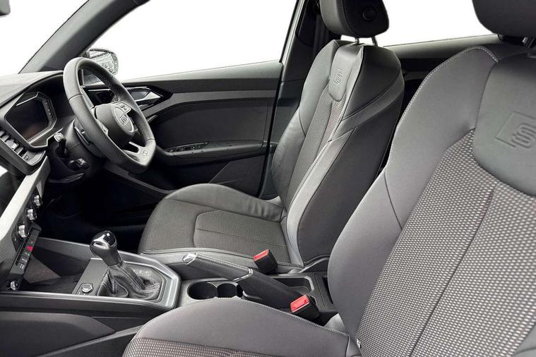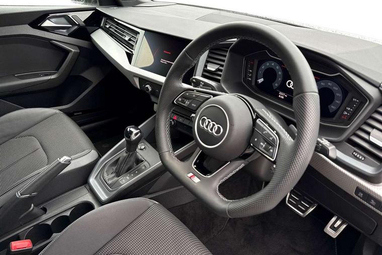 10.25" Digital instrument cluster display classis style instrument dials + speed, odometer, time, outside temperature, telephone menu + fuel level warning, Advanced driver attention and drowsiness monitor, Audi connect emergency call and service, Audi drive select, Audi remote connect and control, Audi smartphone interface, Bluetooth interface, Camera based traffic sign recognition, Cruise control, Driver's information system, Electromechanical power steering, Lane departure warning system, Rear parking sensor, Service interval indicator, Speed limiter, Start stop system with recuperation, Voice control system, Washer fluid level indicator, Sports suspension, 2 x USB type C connection points, 6 loudspeakers, DAB Digital radio, MMI radio plus with 10.1" colour MMI display screen and MMI touch, Auto dimming rear view mirror, Black side skirts, Body coloured bumpers, Door sill trims with aluminium inlays and logo, Electric front and rear windows, Electrically adjustable, heated, folding door mirrors with integrated LED side indicator, Front side air inlets in grained matt black and C frame in anthracite black, Front wing badges, Headlight cleaning system, Heat insulating glass windscreen and side windows, Heated rear windscreen, High level LED brake light, LED daytime running lights, LED headlights with range control LED rear lights + dynamic rear indicators, Privacy glass, Radiator grille and rear diffuser in matt anthracite black, Radiator protective grille frame in matt aluminium silver, Rain and light sensors, Rear fog lights, Rear side wing doors, Rear wiper, Side front spoiler lips in grained matt black, 12V socket in centre console with two cup holders, 3 rear seats with headrests, 3 seat bench in 2nd row, 3 spoke flat bottomed multi-function plus leather steering wheel with S badging, grips in preforated leather, contrast stitching and paddle shift, 40:60 Split folding rear seat or fully collapsed, Black cloth headlining, Front and rear velour black floor mats with contrast stitching in fine silver, Front head restraints, Front passenger seat, Height and reach adjustable steering wheel, Interior lighting includes roof module, front and rear reading lights and right luggage compartment lighting, ISOFIX child seat mounting for front passenger and outer rear seats including top tether attachment point of outer rear seats, Leather gear knob with aluminium trim, Leather handbrake grip, Manual air conditioning, Manual height adjustable for driver and front passenger seat, Manually adjustable lumbar support in front seats, Stainless steel pedals, Ambient lighting package - A1, Black styling pack - A1 Sportback Black Edition, Luggage compartment pack - A1, 3x3 point rear seatbelts, Audi pre-sense front with pedestrain and cyclist recognition, Brake assist function, Driver and front passenger airbag with front side and head airbags, Electronic Stability Control including ABS, EBD, ASR and EDL, Front passenger airbag deactivation switch, Hill hold assist, Manual rear child locks, Seatbelt height adjustment for front seats, Seatbelt monitoring, Tyre pressure loss indicator, Warning triangle and first aid kit, Anti theft alarm, Anti theft wheel bolts, Immobiliser, Remote control key with safelock, Aluminium trim for control switches, air vents and digital instrument cluster, Black dashboard, Silver grey inlays polygon structure in diamond paint finish, Structured grey accent surfaces insert of air vents, interior door handle recesses and centre console in quartz paint finish,
