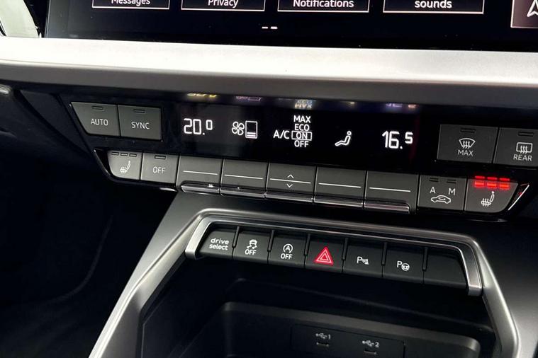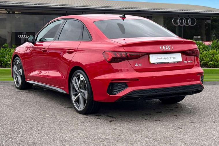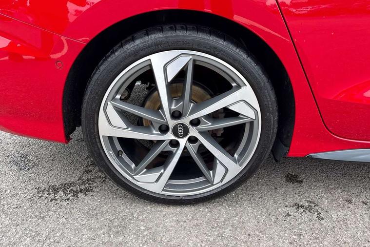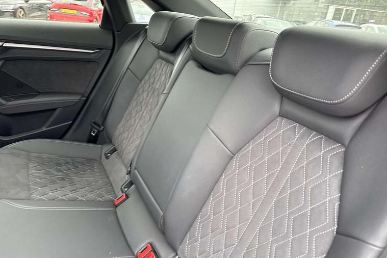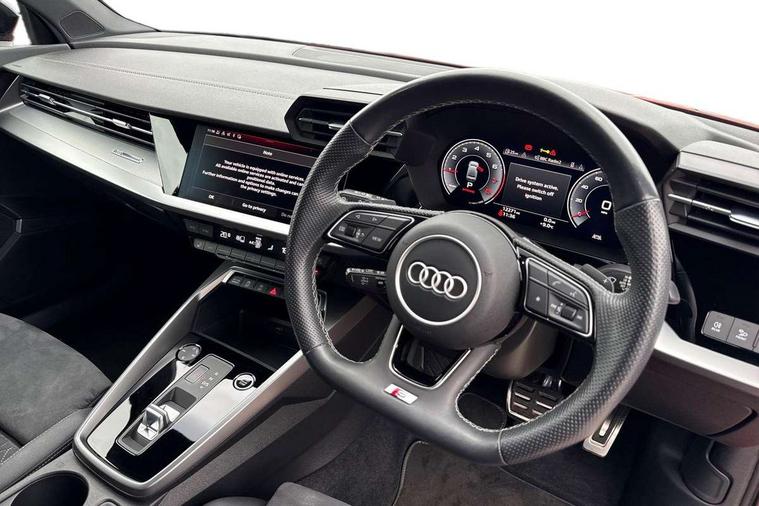 Audi connect emergency call and service, Audi drive select (Auto, Comfort, Dynamic, Efficiency and Individual), Audi smartphone interface, Audi virtual cockpit plus - 12.3" dynamic digital instrument cluster, Automatic start/stop system with recuperation, Bluetooth interface, Collision avoidance assistant, Electromechanical power speed sensitive steering, Lane departure warning system, MMI Navigation Plus with high resolution 10.1" colour touch screen display, Service indicator, Voice control system with natural language interaction, Sports suspension, 2x USB Type C ports (for charging and data transfer), 6 passive loudspeakers, CD player, DAB Digital radio, 3rd brake light, Acoustic glass windscreen, Audi matrix LED headlights, LED rear lights, dynamic front and rear indicators and headlight cleaning system, Auto dimming frameless rear view mirror, Electrically adj heated/folding + automatically dimming exterior mirrors + automatic kerb side function for passenger side exterior mirror, Front electric windows, Illuminated door sills with aluminium inserts at the front with S logo, Integrated LED indicators in door mirrors, LED daytime running lights, Light and rain sensors, Model and engine designation badges at rear, Privacy glass - dark tinted rear window, rear door and side windows, Rear boot, Rear electric windows, Rear side wing doors, S roof spoiler, 12V socket and storage compartment in front centre console, 3 seat bench in 2nd row, 4 way electrically adjustable lumbar support for driver and front passenger, 40/20/40 split folding rear seat bench with cupholder, Black cloth headlining, Dual zone electronic climate control, Electrically adjustable front seats, Front and rear centre armrest in leather, Front and rear headrests, Front/rear floor mats, Heated front seats, Height and reach adjustable steering wheel, Illuminated vanity mirror, Interior lighting - glove compartment light and right hand side, Luggage compartment floor covering, Manual boot compartment lid, Single front passenger seat, Stainless steel pedals and front footrest in black, Aluminium interior elements pack - A3, Black styling pack - A3/S3, Dinamica microfibre/mono.pur 550 artificial leather pack - A3 Saloon, Extended ambient lighting pack - A3/S3 Saloon, LED interior lighting pack - A3 Saloon, 3x3 point rear seat belts, Driver and front passenger airbag with passenger airbag deactivation, Electronic Stabilisation Control (ESC) including ABS, ASR and EDL, First aid kit with warning triangle and 2 safety vests, Front side airbags with head airbags and interaction airbag, Hill hold assist, Pre-sense front with pedestrian and cyclist detection, Seatbelt monitoring, Tyre pressure loss indicator, Anti theft alarm, Anti-theft wheel bolts, Electronically operated child locks, Immobiliser, Remote control central locking, Aluminium air vent surrounds, Aluminium trim elements, Dark spectrum aluminium inlays, accent surfaces in the dashboard and centre console in platinum grey silk effect paint finish, 19" 5 arm trapezoid design alloy wheels in matt grey with diamond cut finish,