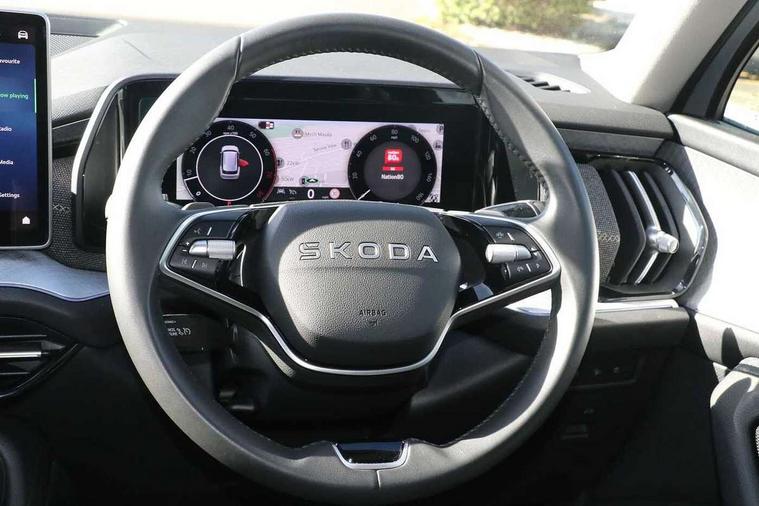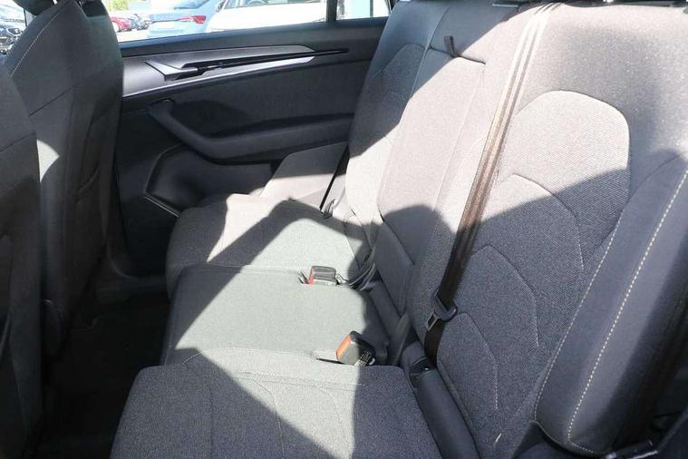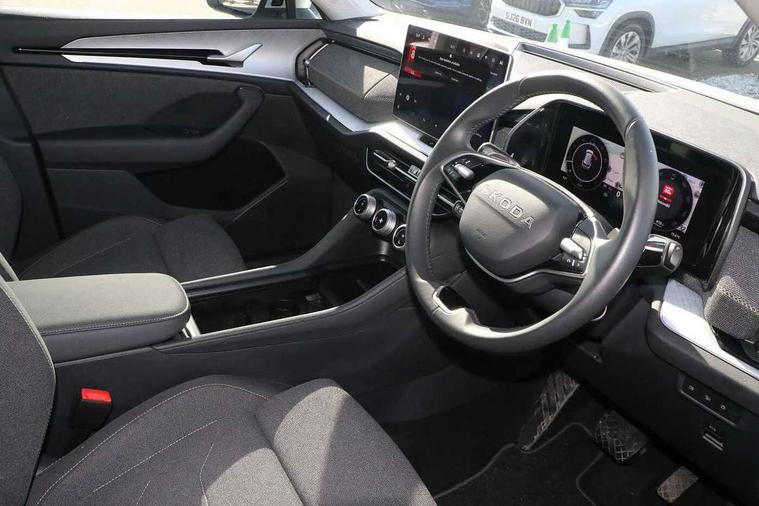 13" satellite navigation touchscreen display, Blind spot detection with door exit warning, Bluetooth system, ChatGPT functionality, Driver alert - Fatigue and drowsiness monitor, Dry display cleaner, Emergency call, Front and rear parking sensors, Front cross traffic assist, Lane assist, PAS, Rear traffic assist, Rear view camera, Tailgate unlocking from outside, Traffic sign recognition, USB C Port x 2 in front centre console, Virtual Cockpit - 10.25" digital display, Voice control system, Wireless charging for two smartphones (15W) with cooling function, Wireless SmartLink for Apple CarPlay and Android Auto, Stop/start function, 2x USB-C in the rear, 8 Speakers, DAB Digital radio, Aero front windscreen wipers with intermittent function, All weather light, Auto dimming rear view mirror, Black wheel arch surrounds, Body colour bumpers, Body colour door mirrors and handles, Cornering light and poor weather light, Electric folding /adjustable/separted heated/folding door mirrors, auto dimming with boarding sports and memory function, Electric front and rear windows, Exterior black decorative trims, Heat insulating glass in windshield, Heated rear window, Ice scraper in fuel tank cap, Invisible tailpipe, LED daytime running lights, LED front fog lamps, LED Headlights, LED rear fog light, LED rear lights, LED third brake light in rear spoiler, Light assistant with automatic headlight control and coming home feature, Logo projection in door mirrors, Rear roof spoiler, Rear side wing doors, Rear window wiper, Safety reflectors on front and rear doors, Unique dark chrome design logo on alloy wheels, Window control switches with black trim, Windscreen wipers with rain sensor, Without engine designation, 1.5l bottle holder points in all door, 1x centre rear reading light, 2 seat bench in 3rd row, 3 configurable smart dials with 32mm coloured display, 3 seat bench in 2nd row, 4 foldable roof handles with rear coat hooks, Ambient interior lighting - Dashboard, front-door stowage compartments, front and rear door panels and footwell lighting, Automatic gear selector on steering column, Chrome interior door handles, Driver/front passenger reading lights, Fabric headlining, Fixed bench 40:60:40 split folding backrests, Front and rear floor mats, Front centre armrest with jumbo box storage compartment, cup holder and 12V socket, Height adjustable front headrests, Isofix child seat fittings in outer middle row rear seats and front passenger with top tether, Manual height adjustment for front passenger seats and thigh support extender, Manual lumbar support for front passenger seat, Manually adjustable steering column, Pollen filter, Rear centre armrest with cupholders, Rear seat boot backrest release, Single front passenger seat, Skoda lettering on steering wheel, Storage pocket including mobile phone pockets on the backs of the front seats, Sunvisors with illuminated vanity mirrors, Three rear height adjustable headrests, Ticket holder on A Pillar, Tri zone climate control, Umbrella in door panel x1 made from sustainable materials, Upper and lower glovebox with card holder and coin compartment, USB C port by rear view mirror for charging only (15W), Variable boot floor, Auto door release and activation of warning lights in the event of an accident, Driver and front passenger airbag with knee airbag and front passenger airbag deactivation, Electric child locks, Electronic parking brake, ESC (incl. ABS+EMD+MSR+ASR+EDL+HBA+DSR+RBS+ESBS+MCB+TSA+XDS), Front assist with braking reaction to vehicles, pedestrians and cyclists, Front disc brakes, Fuel cut off safety device, Height adjustable front 3 point seatbelts + pretensioners, Hill hold assist, Junction assist with automatic emergency braking, Rear disc brakes, Safety vest holder in door, Seat belt reminder for all seats, Three point rear seat belts, Two tone horn, Tyre pressure monitor, Alarm with interior monitoring and tilt sensor with safe function, Anti-theft wheel bolts, Immobiliser, Remote central locking with 2 keys, Breakdown kit, Tool kit,