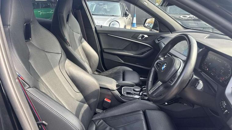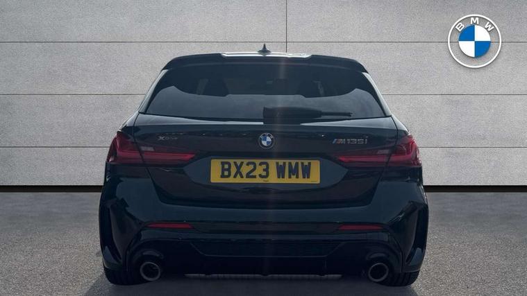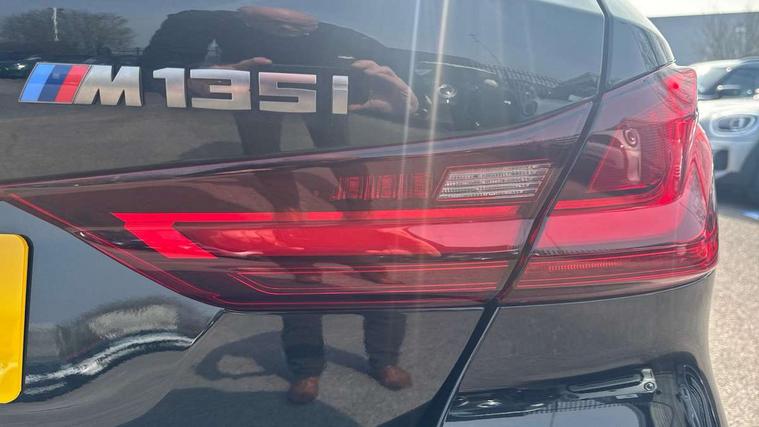 Active guard plus, Attentiveness assist, BMW ConnectedDrive online services, BMW Teleservices, Check Control warning system for monitoring of lights and door/luggage compartment open warning, Cruise control with speed limiter, Eco pro mode, Electric power steering, Electro hydraulically controlled multi-plate clutch transfers drive to rear axle and with power take-off device located on the front differential., Energy efficient operating strategy, Front axle single joint with specific axle kinematics to minimise drive influences on steering + provide increased rigidity agile driving behaviour, Gearshift time display in manual mode, Integrated owners handbook, Lane departure warning system, M Sports steering with M135i xDrive specific settings, Oil sensor for level and grade, On board computer, Optimum shift indicator, Personal Profile, Pull away assistant, Rigidly mounted rear subframe - Multi link construction with separate spring / damper configuration and excellent driving characteristics, Speed limit Info including no-overtaking indicator, Sporty fast gear shifting in sport mode, Aluminium lightweight construction, Anti roll bar front and rear, Balancer shaft, Double VANOS, Drive Performance Control, Eight speed sport automatic transmission with gearshift paddle switches, Electronic differential lock, Electronic selector lever, Engine cover with M performance designation, High precision injection, Larger fuel tank capacity (50 litres), Launch control, M135i specific heavily de-throttled engine intake air guide, M135i specific high-performance cooling package, M135i specific larger turbocharger with integrated divert-air valve, Petrol Particulate Filter, Twin tube gas filled shock absorbers with degressive characteristic curve, VALVETRONIC engine management, Variable, stepless and infinitely adjustable distribution of drive torque between the front and rear axles, xDrive intelligent all wheel drive with M135i specific reinforced components, DAB Digital radio, Auto dimming rear view mirror, Automatic headlight beam throw control, Automatic windscreen wipers and automatic headlight, Body colour door handles, Body colour roof trims, Cerium grey exterior mirror caps, Direction indicator side lights in exterior mirrors, Electrically adjustable exterior mirror with mirror adjustment switch on drivers armrest and aspheric on driver side, convex on passenger side, Exhaust tailpipe, Cerium Grey with bevelled finish - twin, round 100mm, left and right split, Fading support, Folding side mirrors with auto dimming/folding wing mirrors with auto dimming, Follow me home headlights, Front and rear bumper system with replaceable deformation elements, Front and rear electric windows with open and close fingertip control, anti trap facility and comfort closing, Front door sill finishers with M135i designation, Green tinted heat protection glazing, High gloss shadowline window frame, Recess cover mirror frames and B/C pillar embelisher trim, High level third brake light, Integrated front windscreen with washer jets, Kidney grille frame in Cerium Grey with Mesh design, LED daytime running lights, LED eyebrow turn indicators, Lightweight engineering, M logo designation side in cerium grey, M Performance exhaust system with valve control and minimised exhaust back pressure, M Performance specific setup, M Sport spoiler, Matt black air guide grilles, Matt black wheel arch trim, Model designation on electric bootlid includes xDrive designation for M135i xDrive, Nearside reverse light in rear light cluster, Preparation for high beam assistant, Rear fog lights, Rear side wing doors, Rear window wiper, Reinforced crank drive, new pistons and adapted con rods, Shark fin antenna, Trailer stabilisation logic, Visible VIN plate, Welcome lighting, 12V power socket in front centre console with blanking plug, 3 rear seat head restraints, 3 seat bench in 2nd row, 3 spoke sports leather steering wheel with black leather and stitching, pearl chrome decorative finish, specific M Badge, Anthracite headlining, Black boot net with lashing eyes, Cargo function on 2nd seat row, Child seat ISOFIX attachment for two outer rear seats and front passenger seat with anchorage points, Conditioned based service, Driver and front passenger backrest net on rear, Driver and front passenger seat heating, Driver side folding compartment in instrument panel, Folding rear clothes hook, Four grab handles integrated in roof lining, Front and rear door pockets with bottle holders, Front and rear side armrest integrated into door trim, Front armrest, Front M sports seats, Glove compartment, Height adjustable front head restraints, Luggage compartment for bag hooks on left and right, foldable luggage compartment liner and four lashing eyelets, Manual adjust steering wheel, Multi-function controls for steering wheel, Single front passenger seat, Storage compartment in centre console, Storage compartment in luggage compartment, Stowage of the parcel shelf in luggage compartment trim, Sun visors with vanity mirrors and insert tab, Two front centre console cupholders, Two zone automatic air conditioning, Type C two USB ports in rear centre console, Velour floor mats, Additional interior lighting pack - 1 Series M135i, BMW live cockpit professional pack- 1 Series, Connected pack professional - 1 Series, Interior lights pack - 1 Series, M Sport exterior styling aerodynamics pack - 1 Series 135i, 2 tone horn, 3 point seatbelts on all seats, front pyrotechnic belt tensioners, stopper and belt force limiters, rear coded belt buckles, Airbags - Front driver/passenger, front and rear curtain head protection, front side, manual deactivation of front passenger airbag, Anti lock braking system (ABS) with brake assist, BMW emergency call, Brake drying, Braking readiness, Child proof locking system in rear door, City braking function, Comfort modes, Cornering brake control, Crash sensor activating of airbags, Unlocking doors, hazard warning lights, interior light